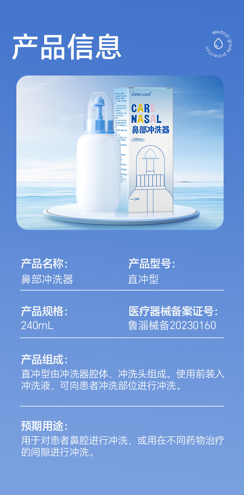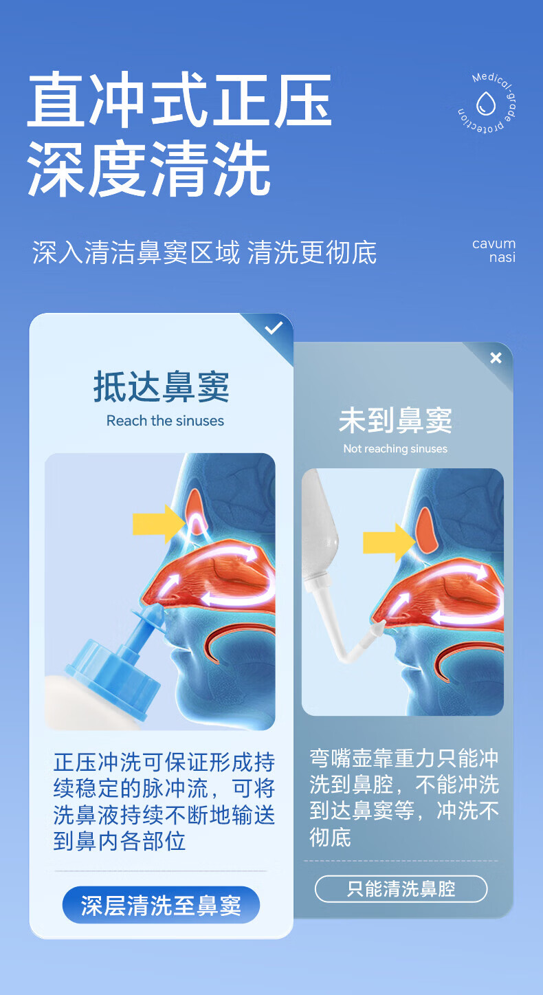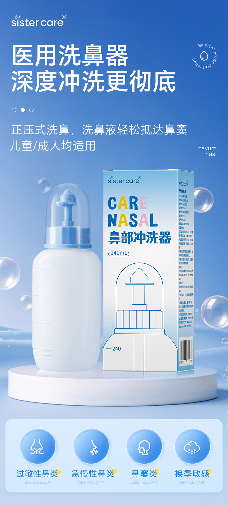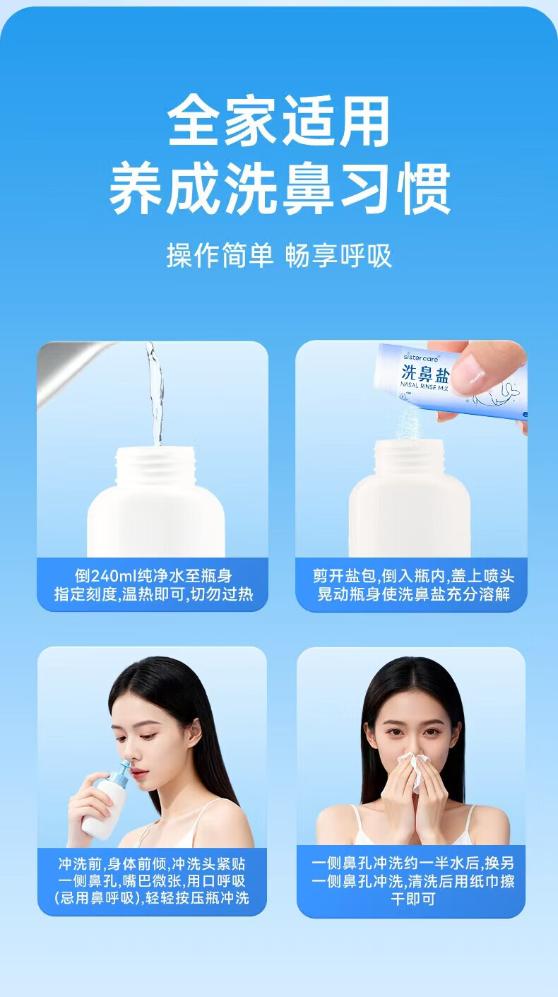 sister care洗鼻器儿童手动洗鼻壶成人生理海盐水鼻腔清洗器鼻炎冲洗器240mL