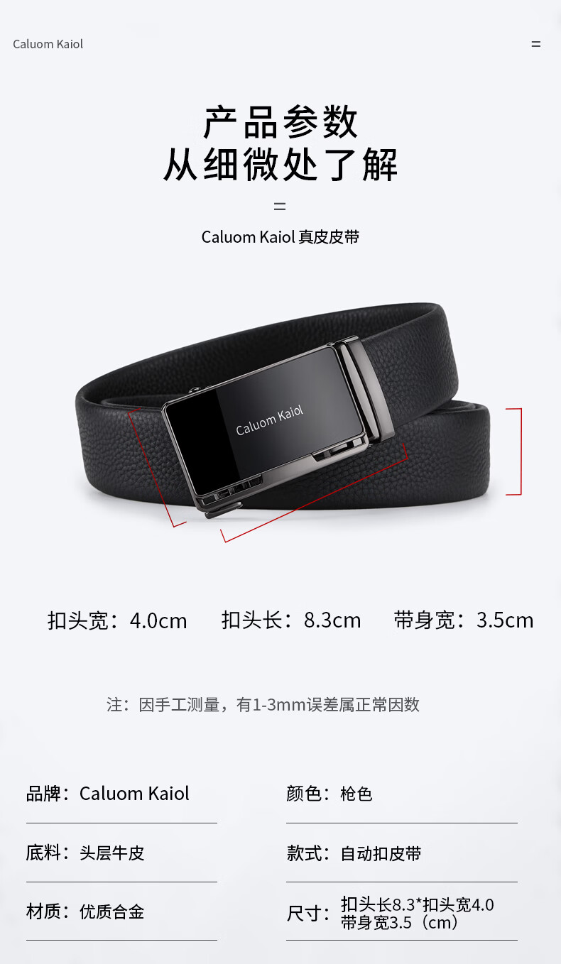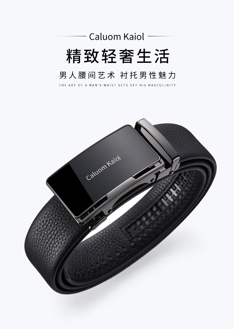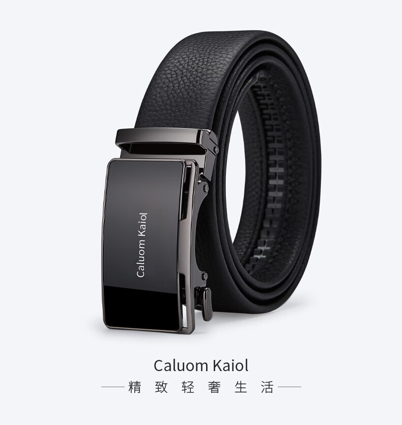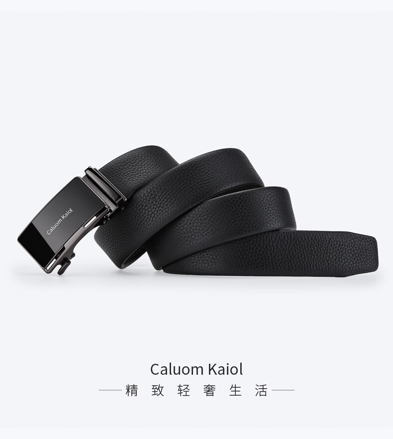 Caluom Kaiol品牌皮带男真皮男士腰带牛皮自动扣商务裤带生日礼物送男友老公 81301A/外穿式/镜面枪色 110cm -130cm默认随机(可修剪)需要其他尺码联系客服