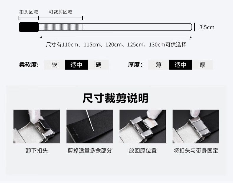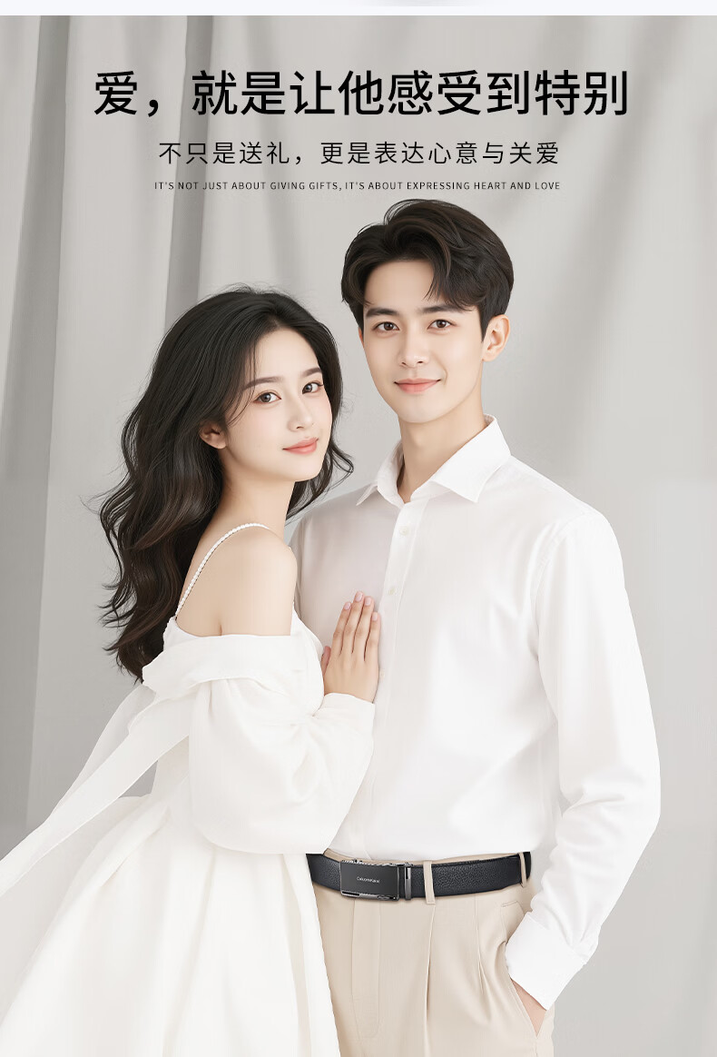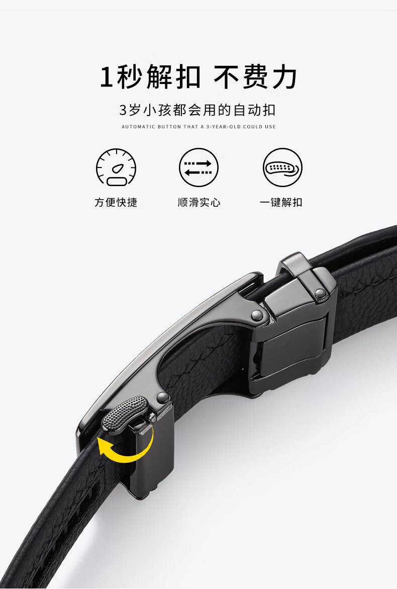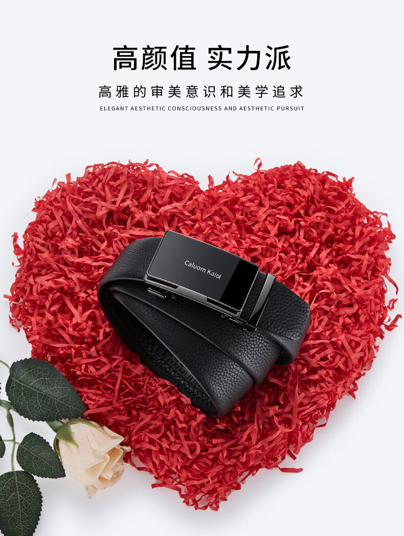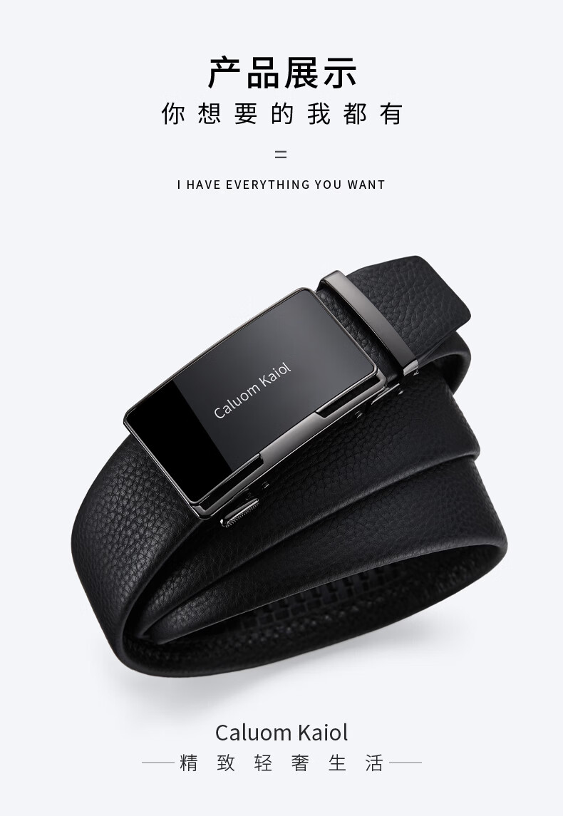 Caluom Kaiol品牌皮带男真皮男士腰带牛皮自动扣商务裤带生日礼物送男友老公 81301A/外穿式/镜面枪色 110cm -130cm默认随机(可修剪)需要其他尺码联系客服