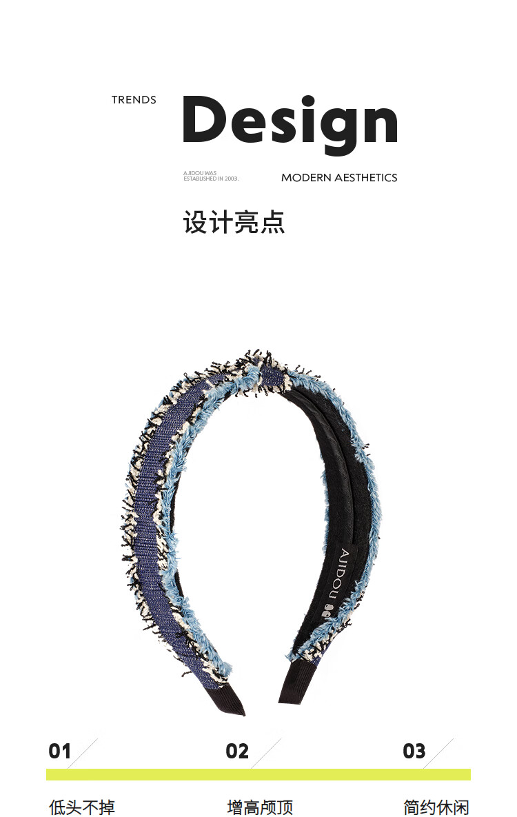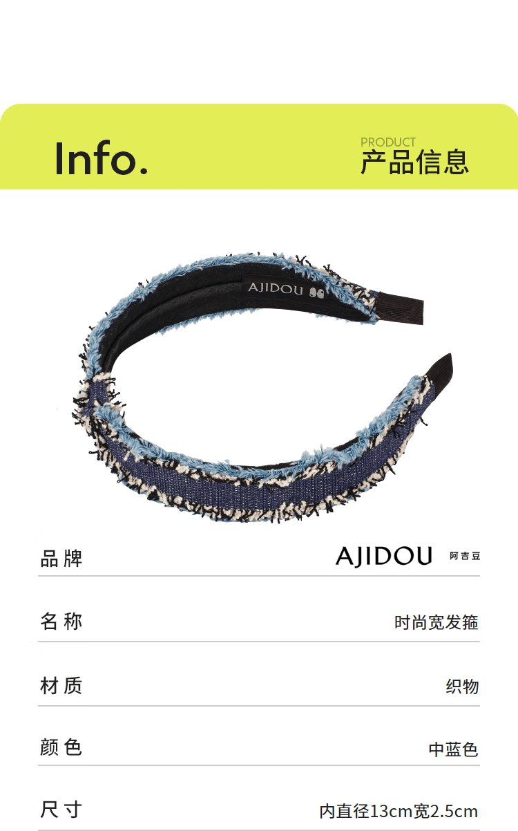 AJIDOU阿吉豆发箍女高颅顶头饰增专柜同款宽发箍发饰生日礼物 中蓝色 1个