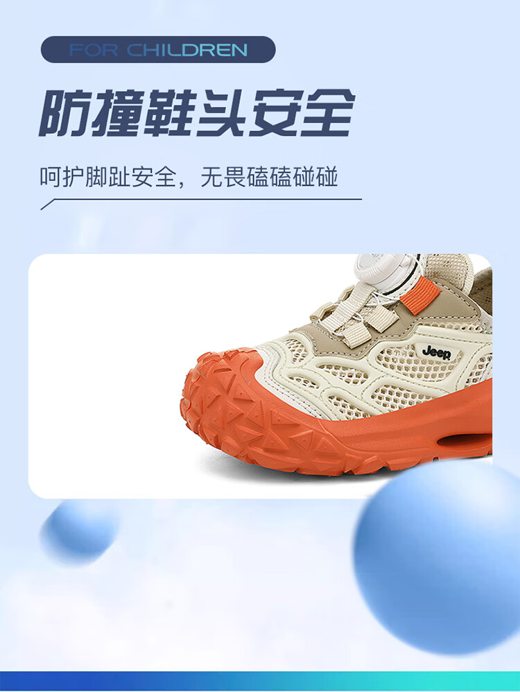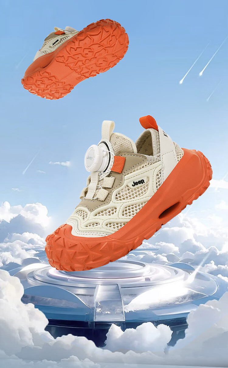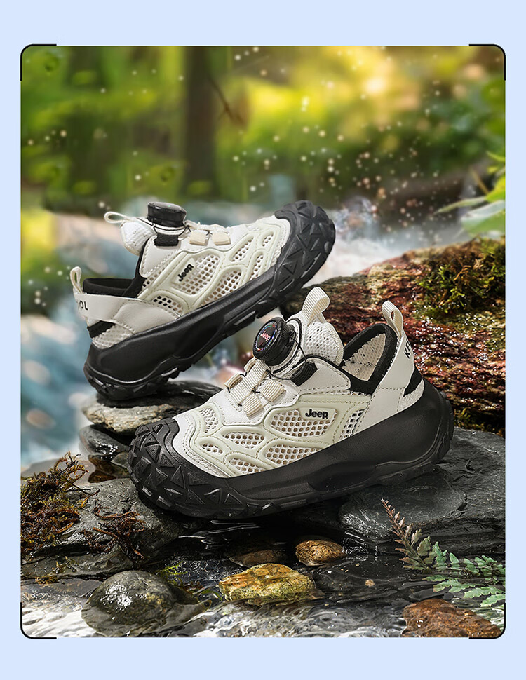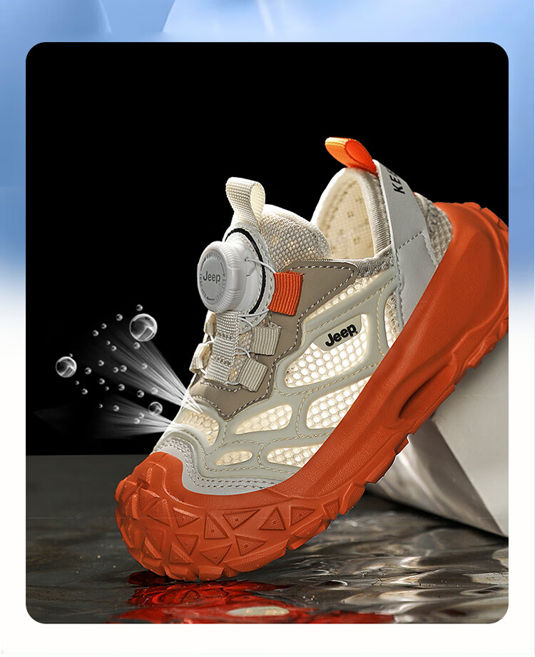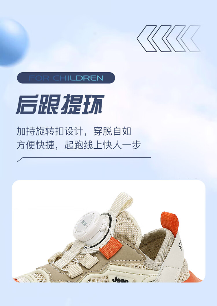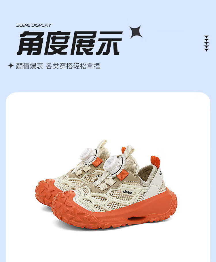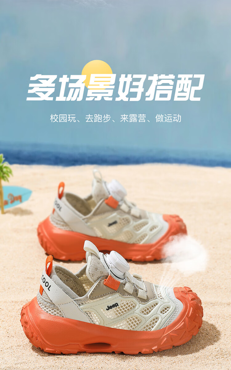 JEEP2025夏季新款网面儿童鞋男女童透气软底防滑学生运动鞋户外跑步鞋 米桔 33