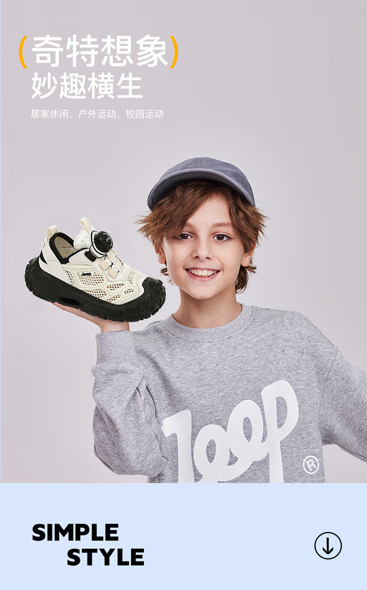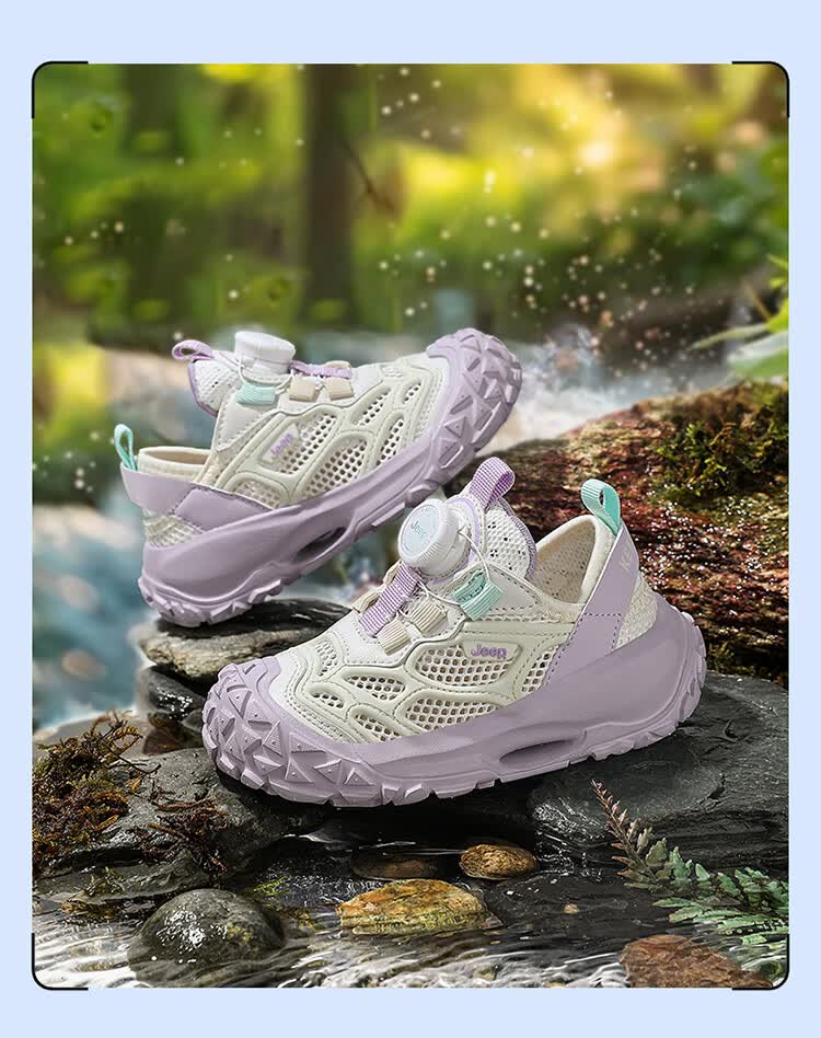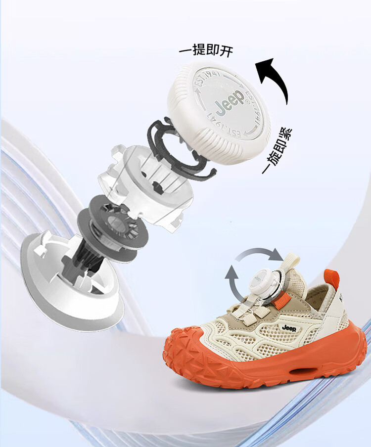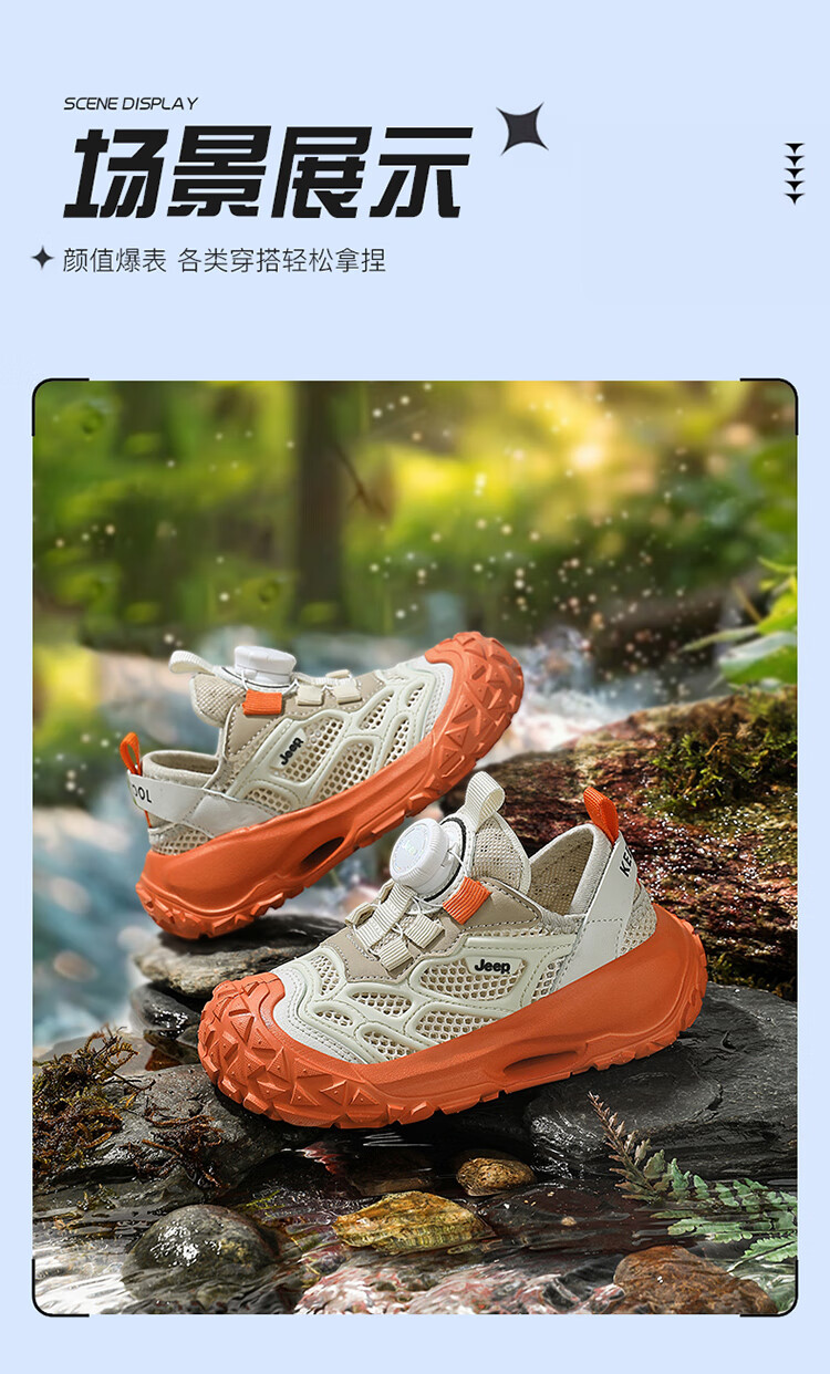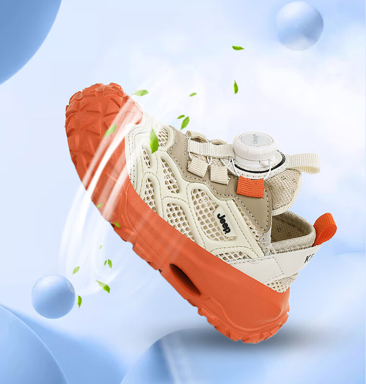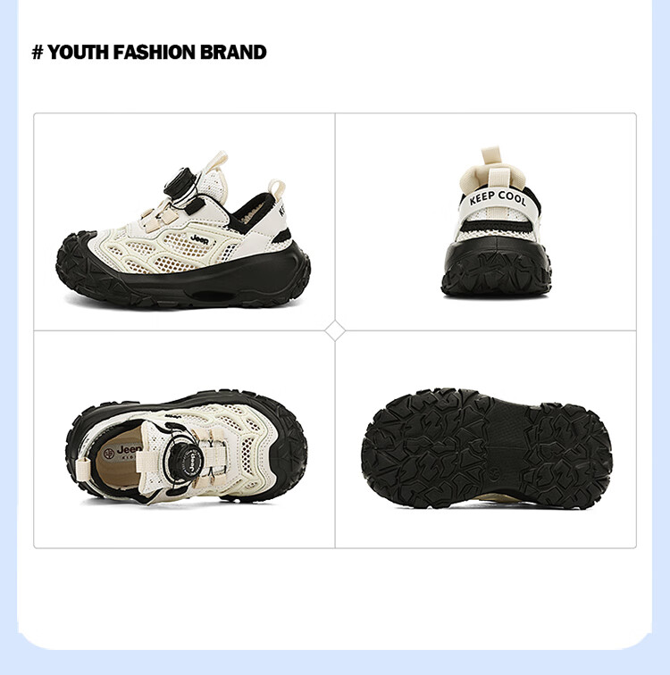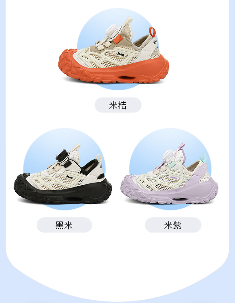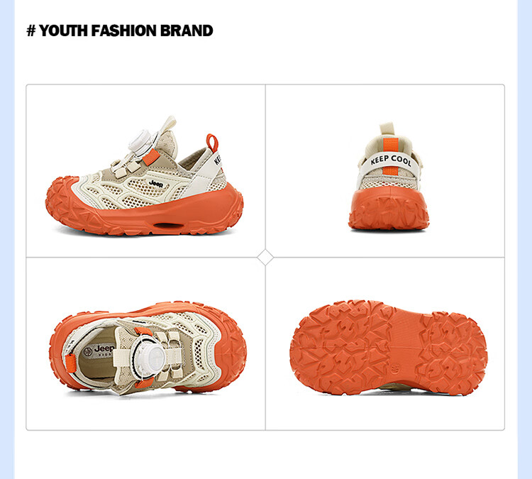 JEEP2025夏季新款网面儿童鞋男女童透气软底防滑学生运动鞋户外跑步鞋 米桔 33
