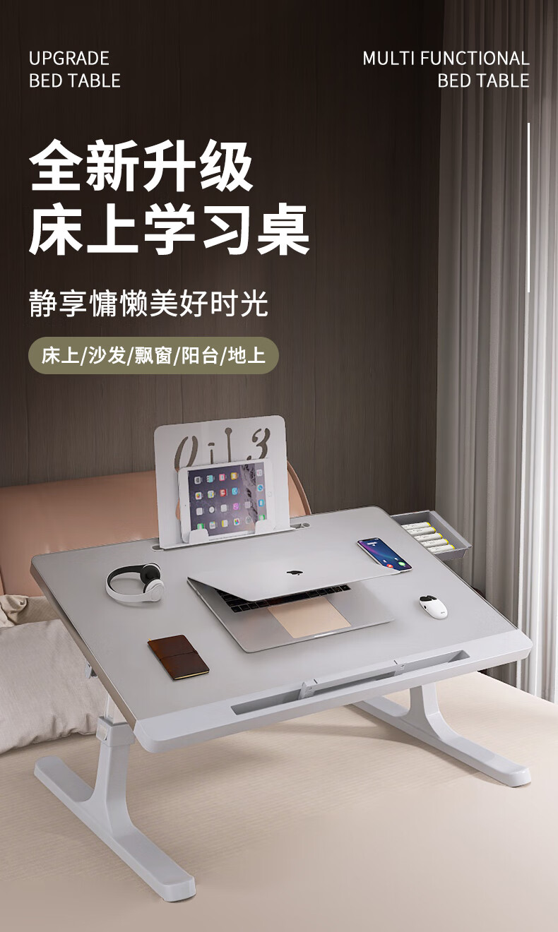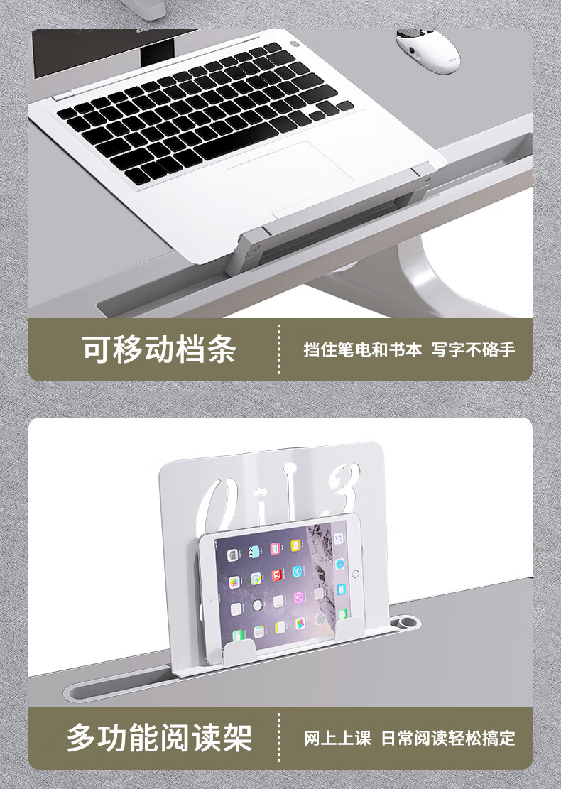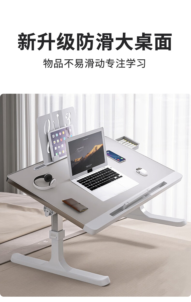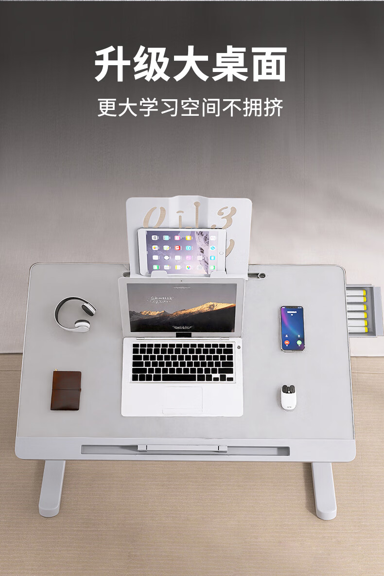 升降学习桌折叠简约宿舍学生写字书桌学习调节高度支架 皓月灰加强款-卡槽-防滑托-阅读架 60*40cm