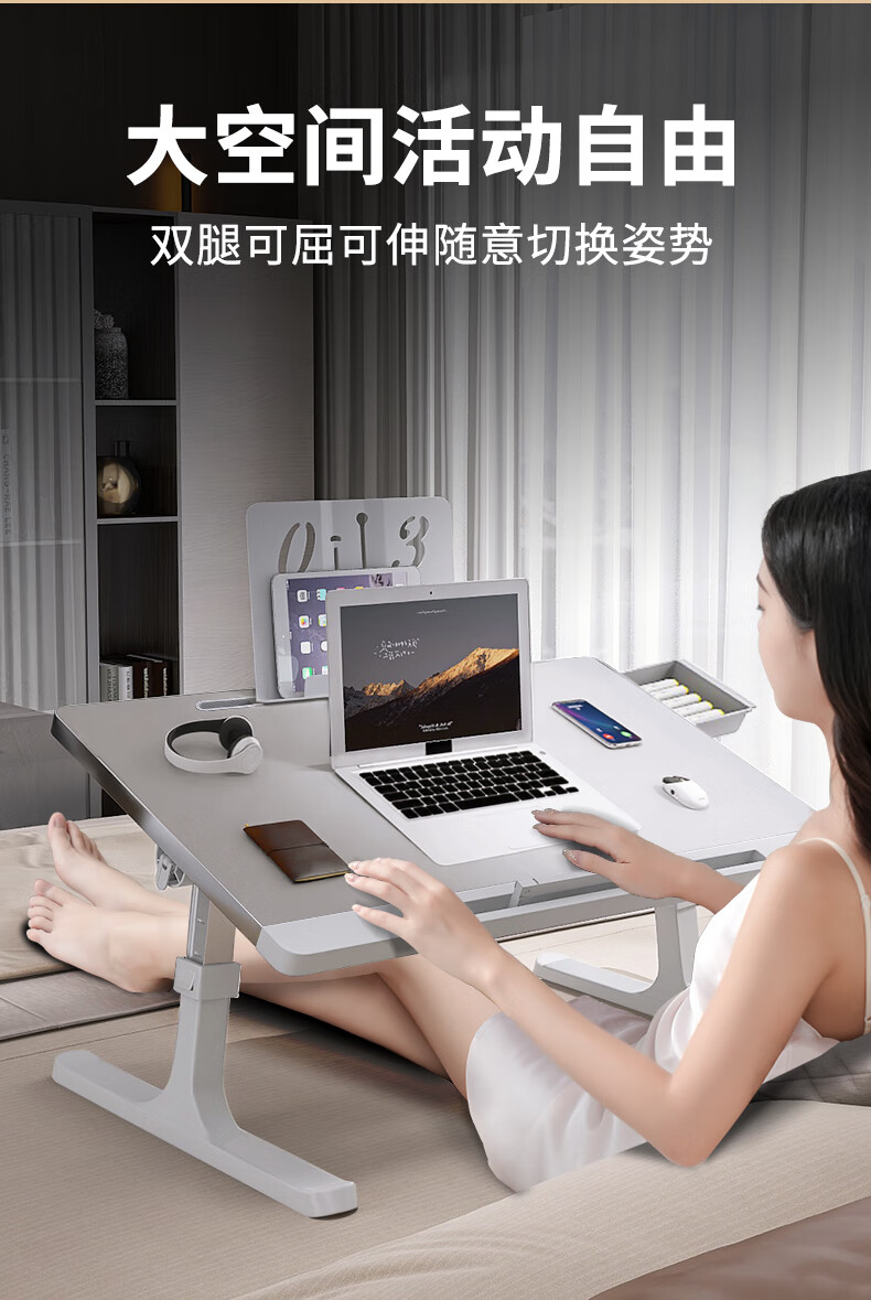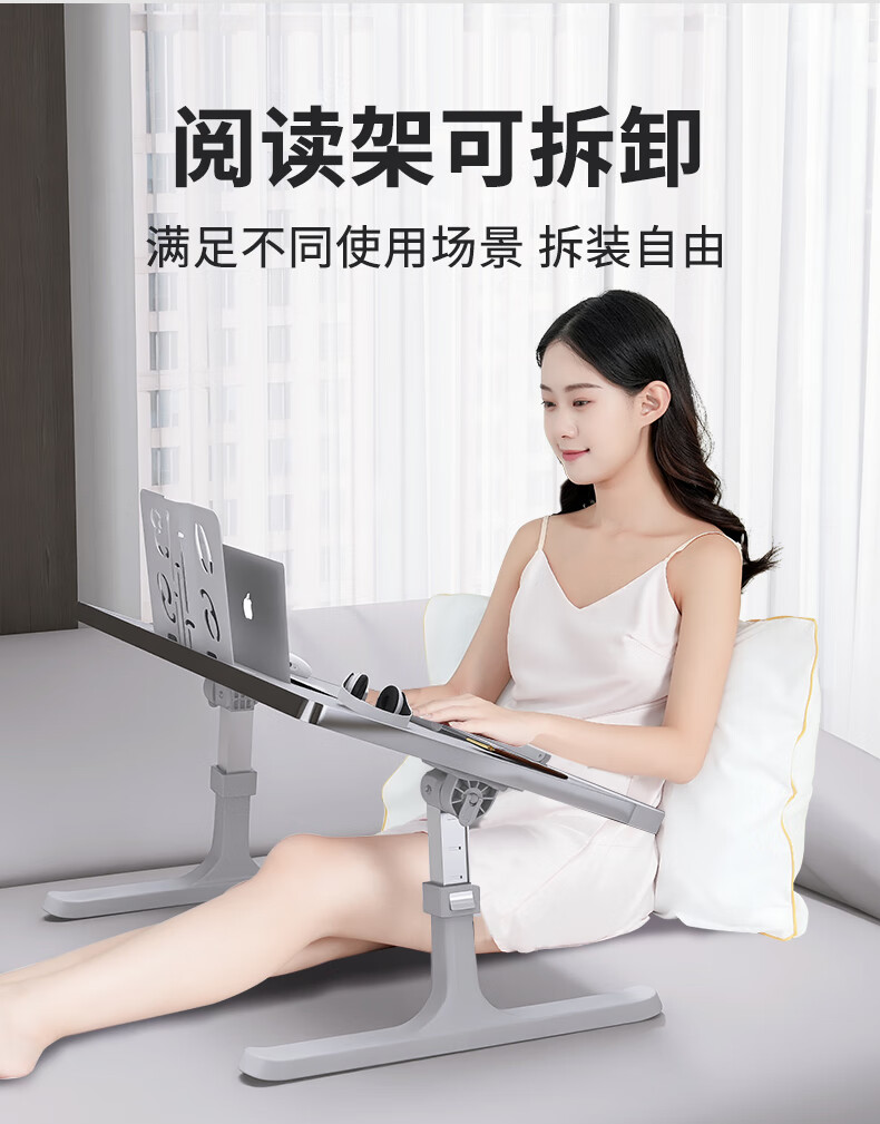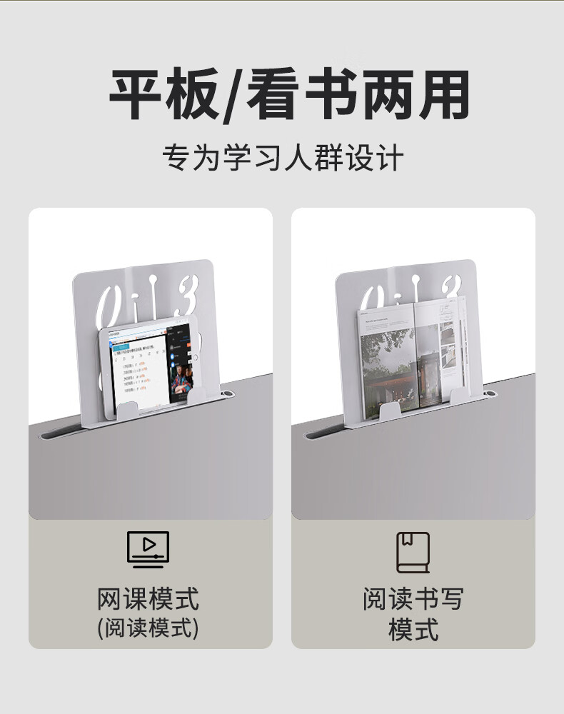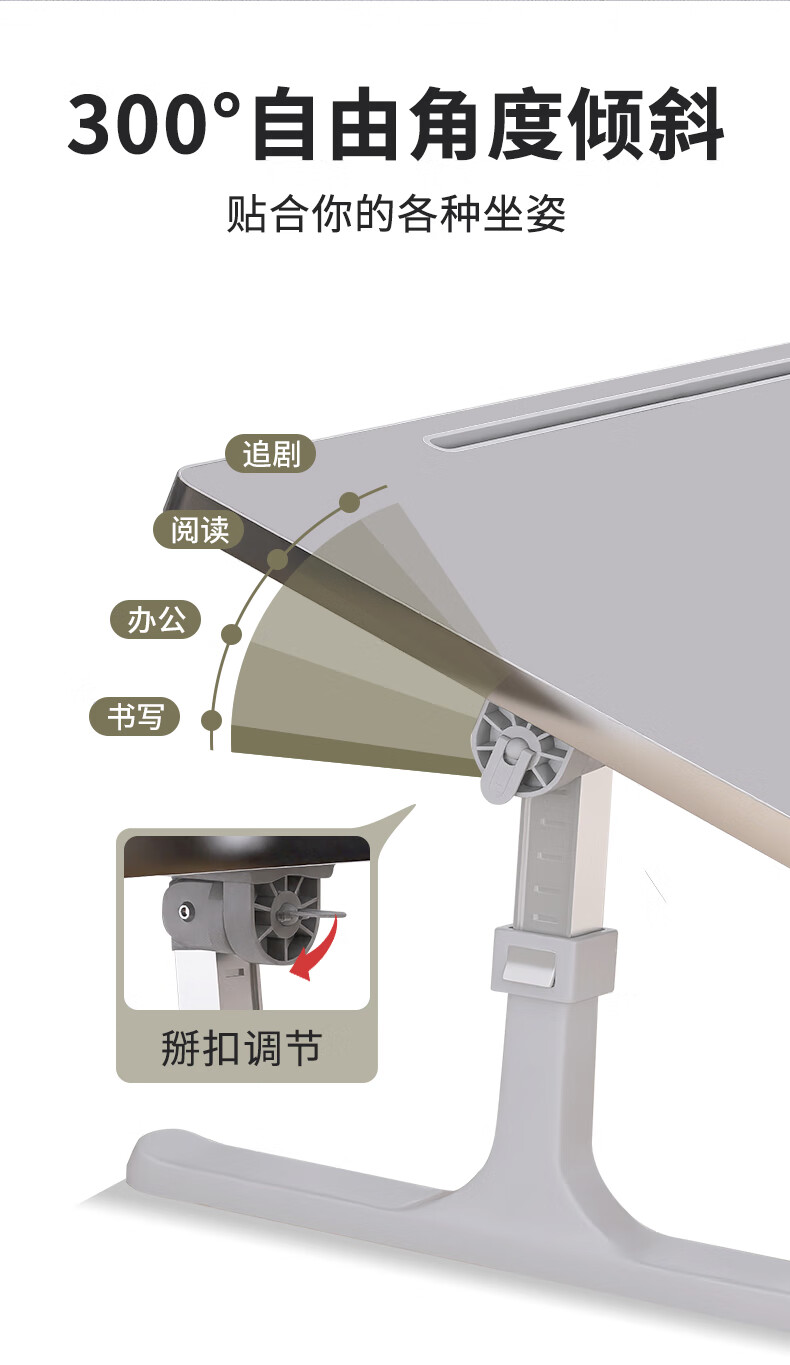 升降学习桌折叠简约宿舍学生写字书桌学习调节高度支架 皓月灰加强款-卡槽-防滑托-阅读架 60*40cm