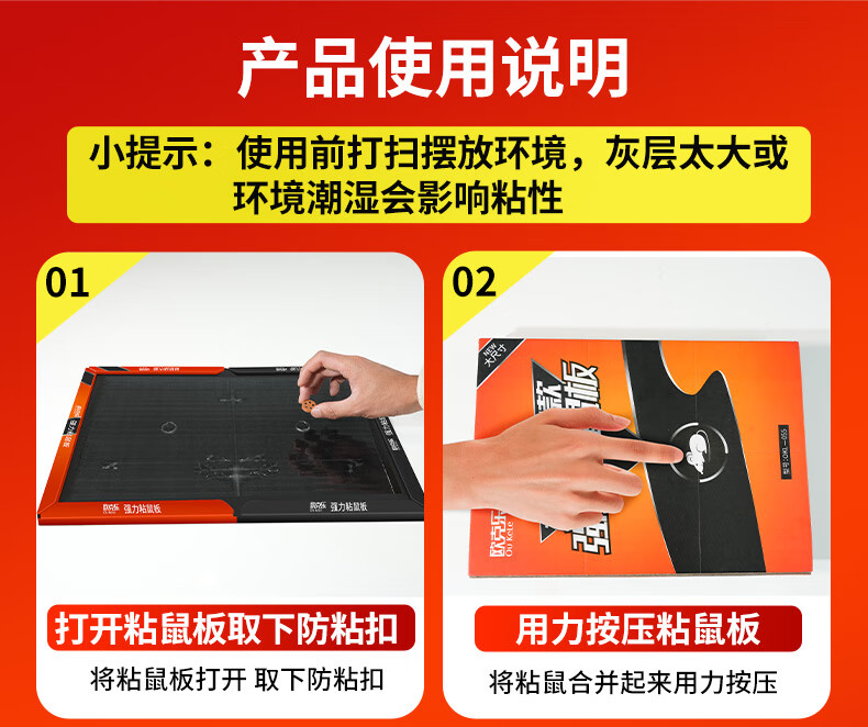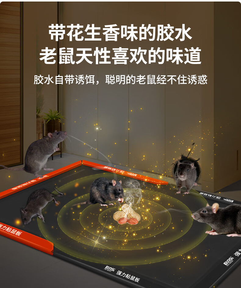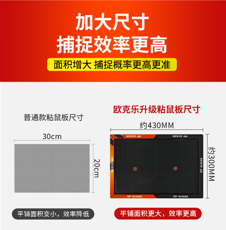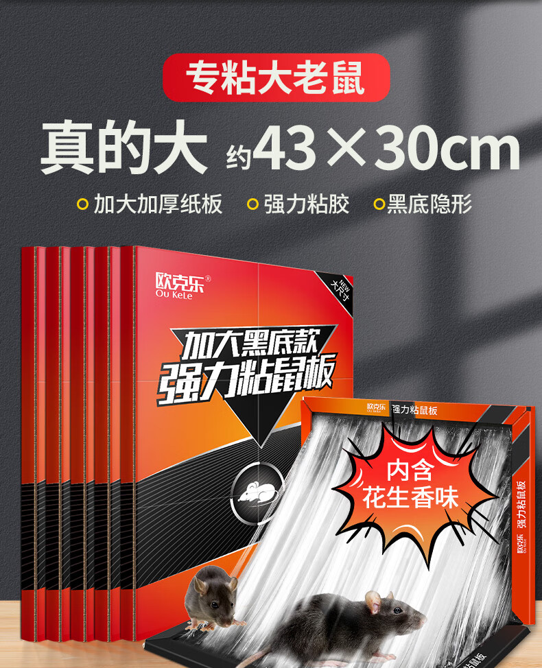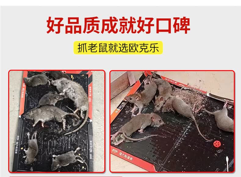 欧克乐(Ou Ke le)超强力粘鼠板老鼠笼老鼠贴加大加厚商用家用灭鼠器抓捕老鼠神器 5张装 升级加大尺寸43*30厘米