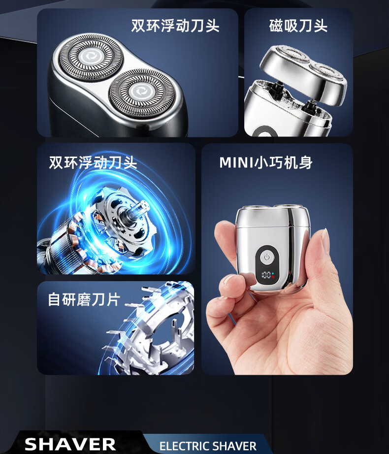 GROOUZ德国品牌2026新款剃须刀男士电动刮胡刀胡须刀全身水洗迷你旅行便携送男友父亲520情人节生日礼物 耀石黑【NEW FLAGSHIP MODEL】