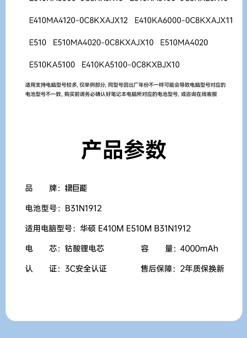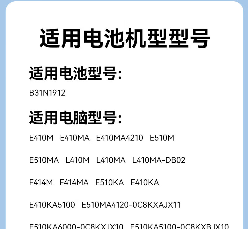 绿巨能(llano)适用华硕E410M E510M B31N1912笔记本电池 E410K E510K E410MA E510MA C31N1912电脑电池 华硕顽石E410M【B31N1912】