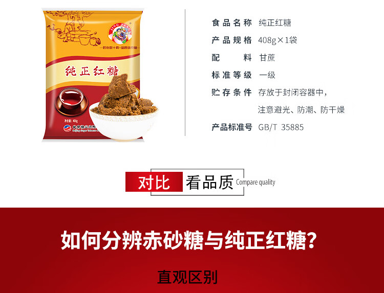 JING TANG京糖 纯正红糖408g【一级】中华老字号 女士伴侣 烘焙冲饮烹饪