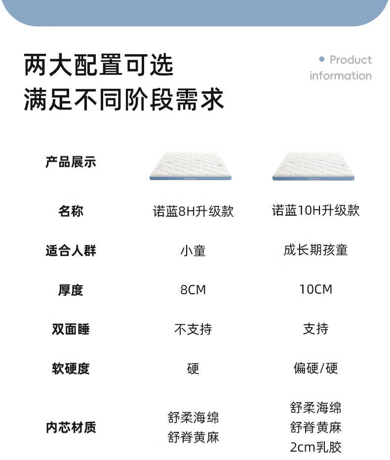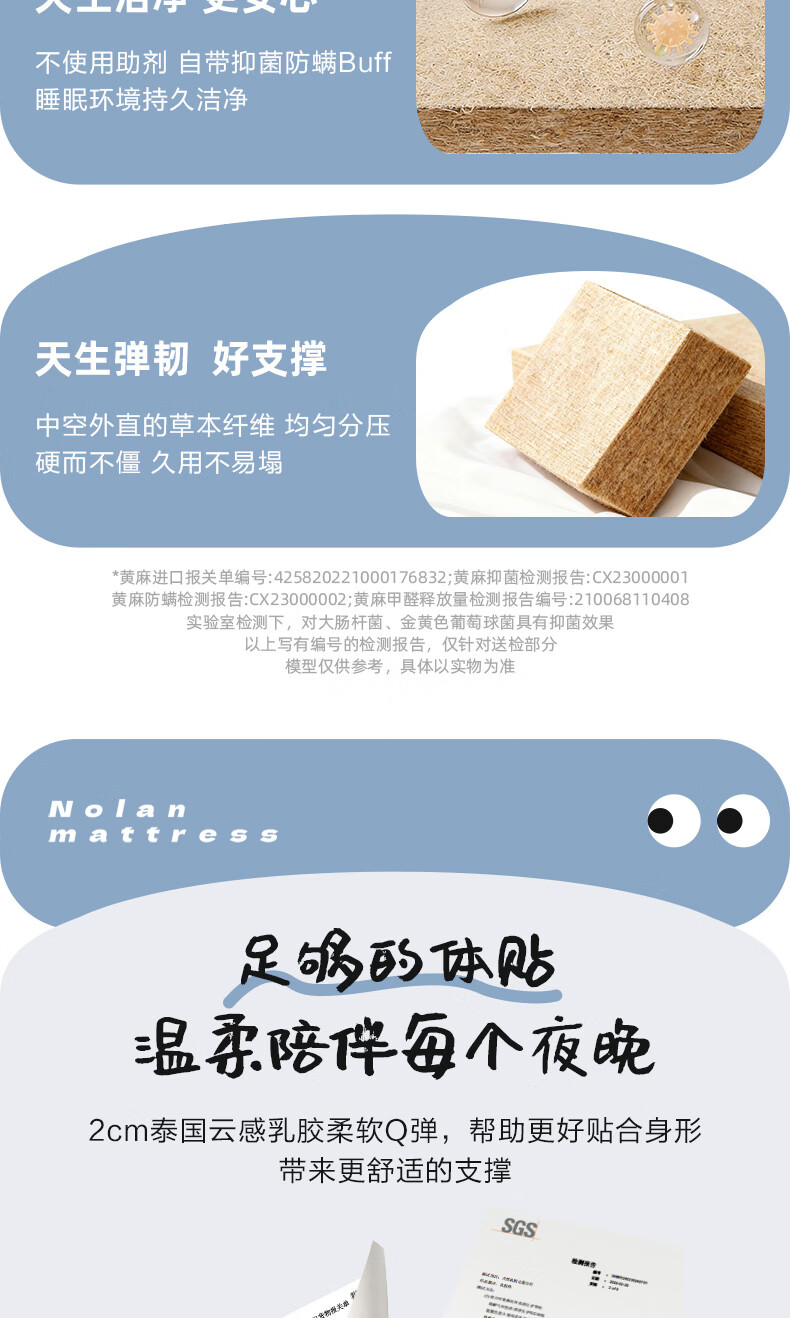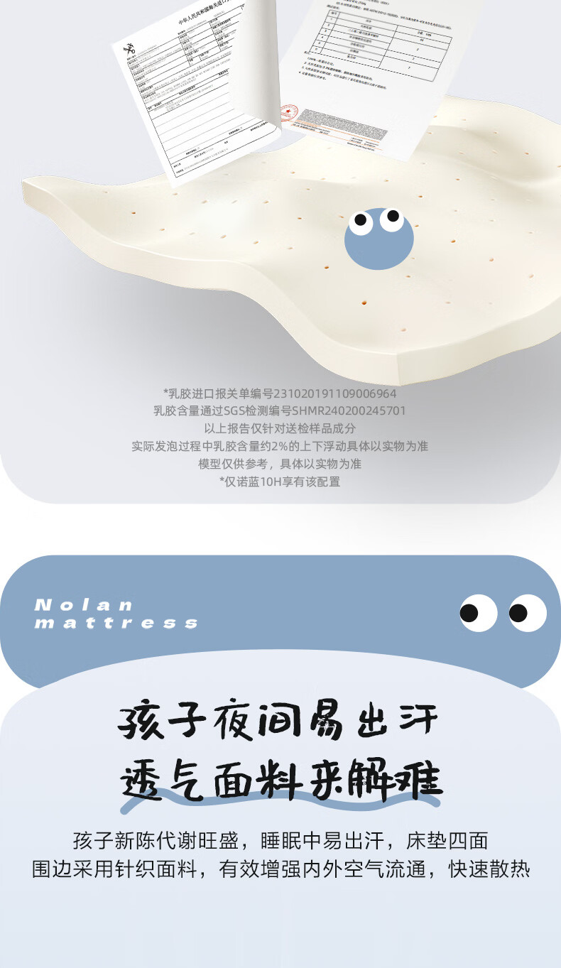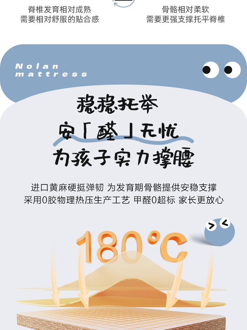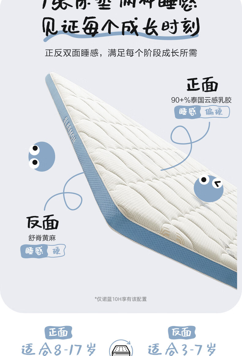 喜临门母婴适用 诺蓝国补偏硬支撑脊椎黄麻 A类亲肤面料 双核抗菌防螨床 诺蓝10H【0胶升级/ A类面料可拆晒】-厚10cm 1.8*2米