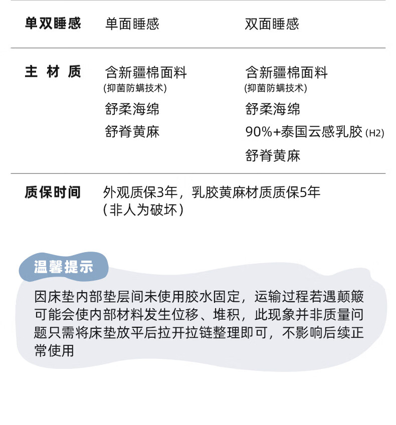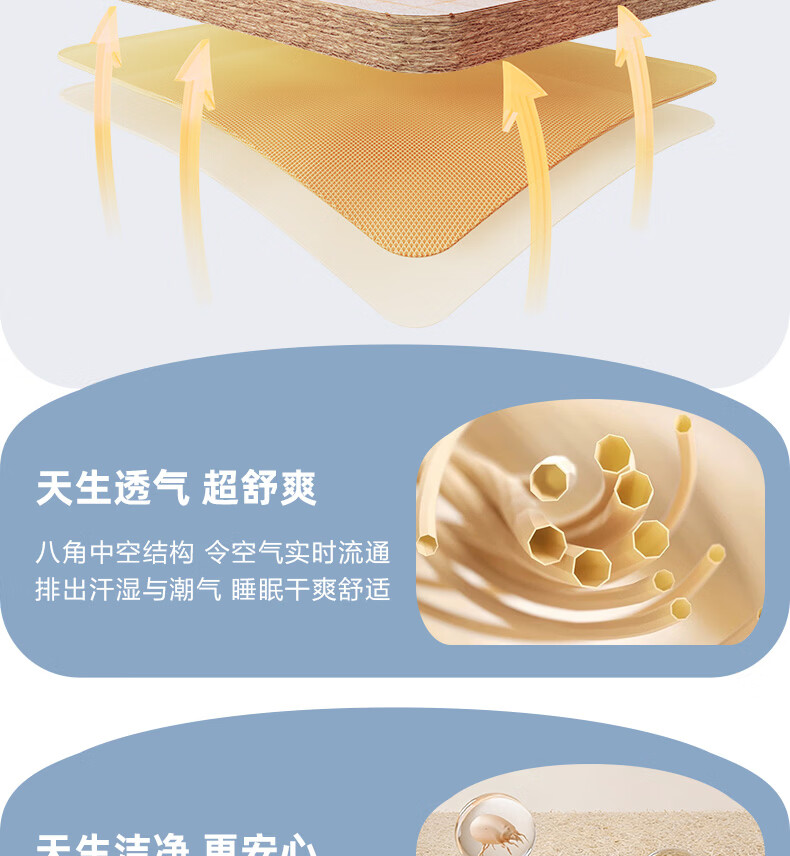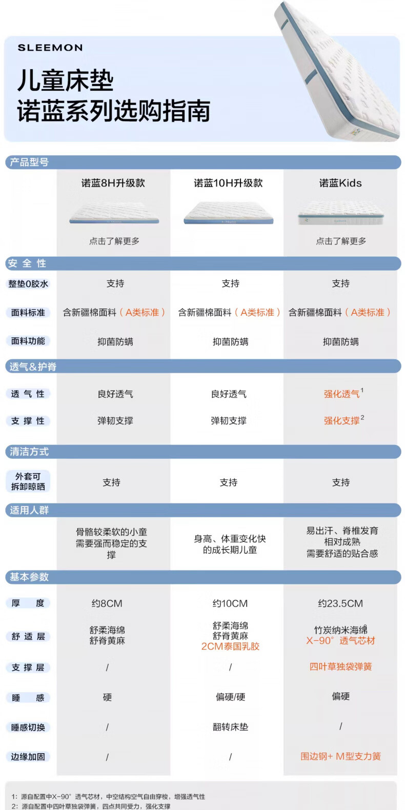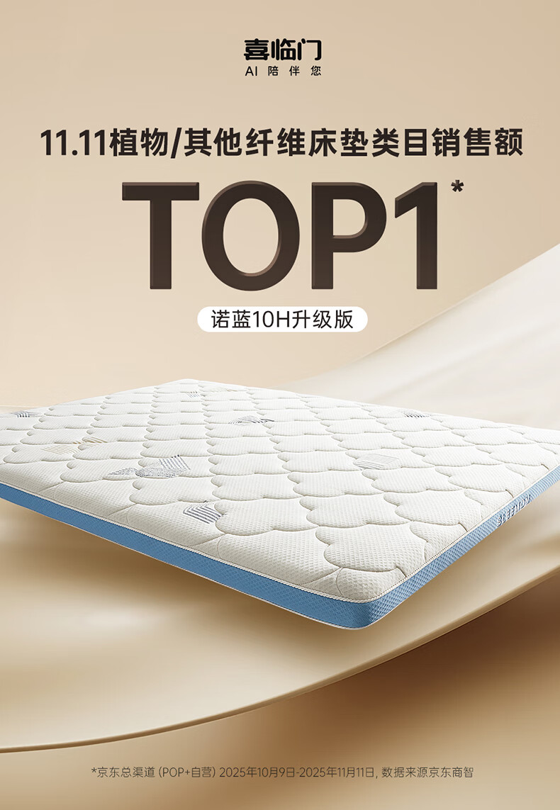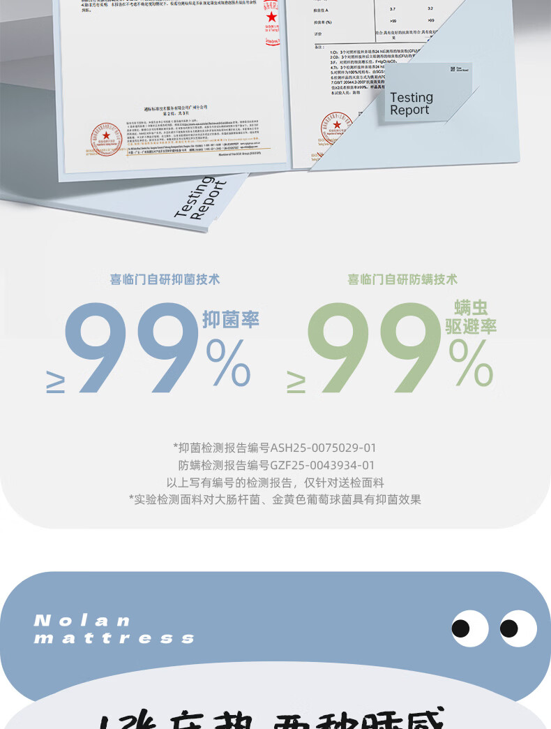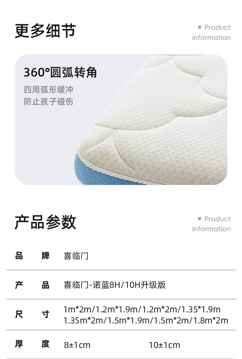喜临门母婴适用 诺蓝国补偏硬支撑脊椎黄麻 A类亲肤面料 双核抗菌防螨床 诺蓝10H【0胶升级/ A类面料可拆晒】-厚10cm 1.8*2米
