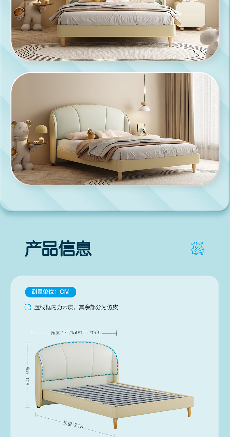 喜临门云图pro皮床+白骑士plus床垫 头层牛皮双人大婚床云雾米1.8x2米