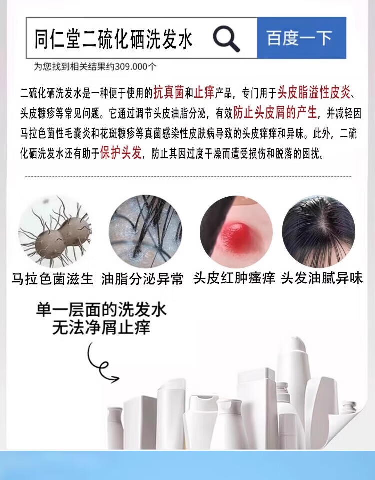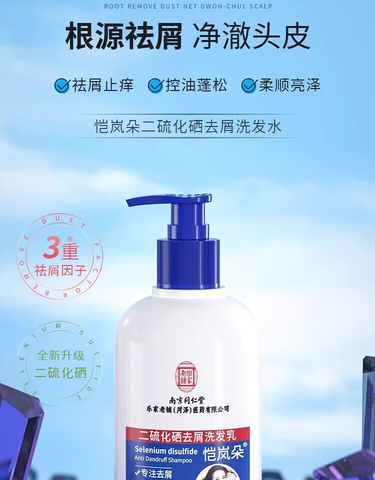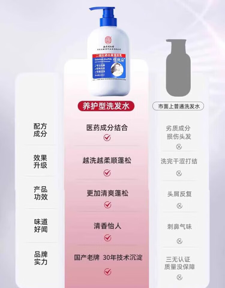 南京同仁堂二硫化硒洗发水去屑止痒控油持久蓬松毛洗发水金榜第1 二硫化硒洗发水3瓶特惠装