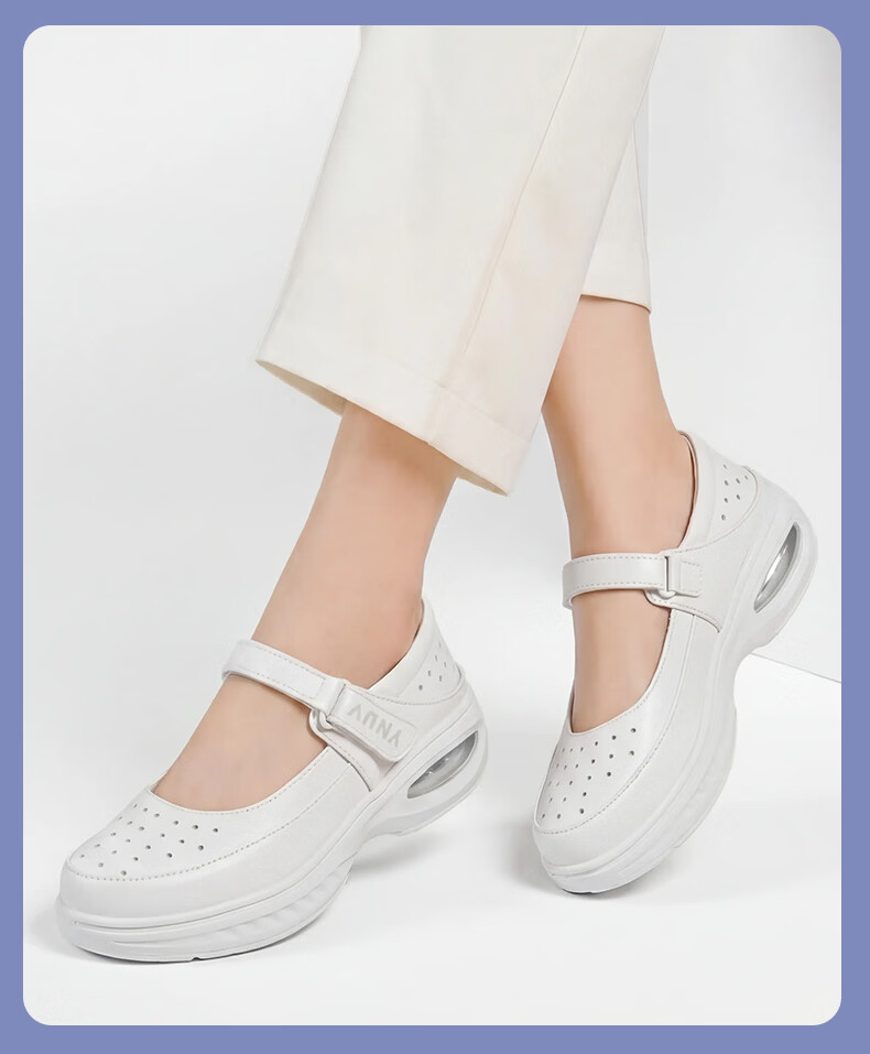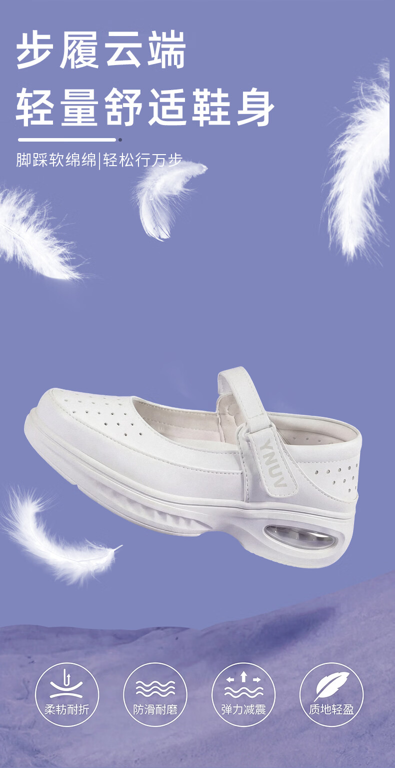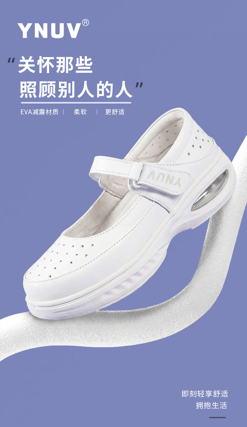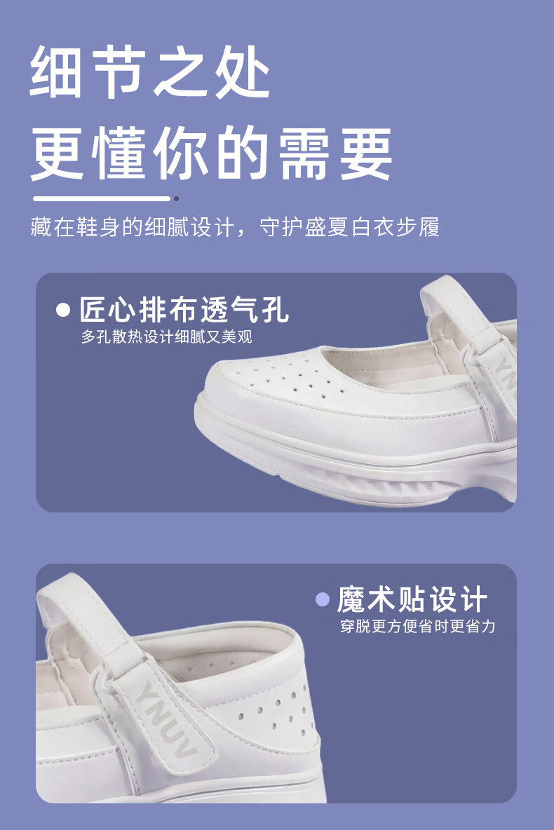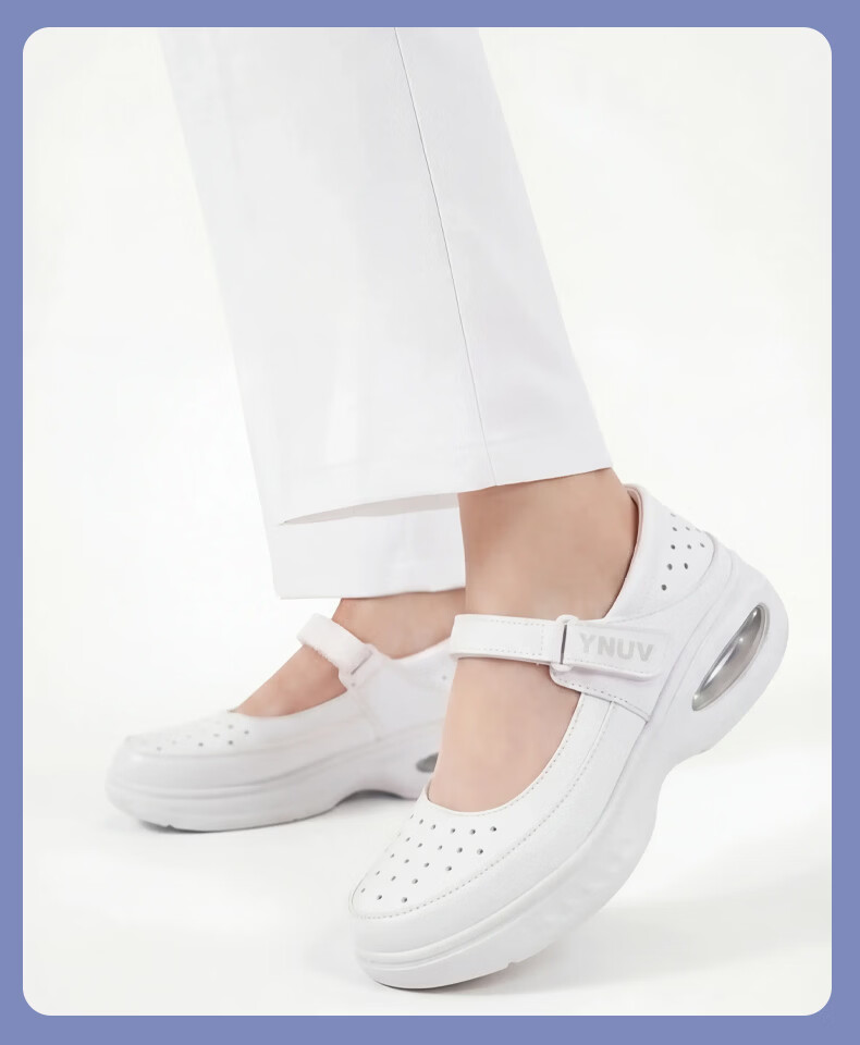 YNUV护士鞋女工作不累脚透气防滑防臭足弓支撑真皮夏季医护人员工作鞋 白色 夏季凉鞋打孔 41 (255mm)