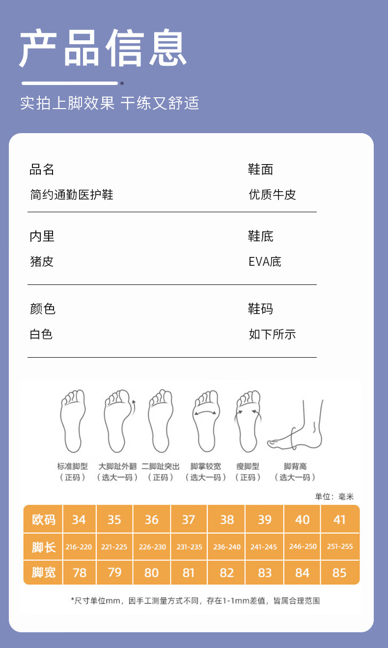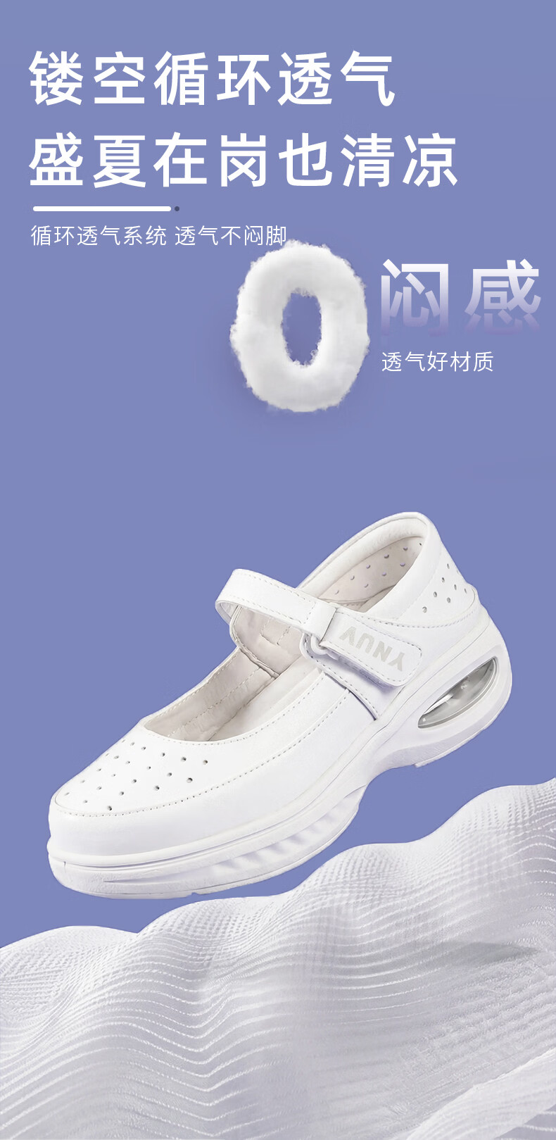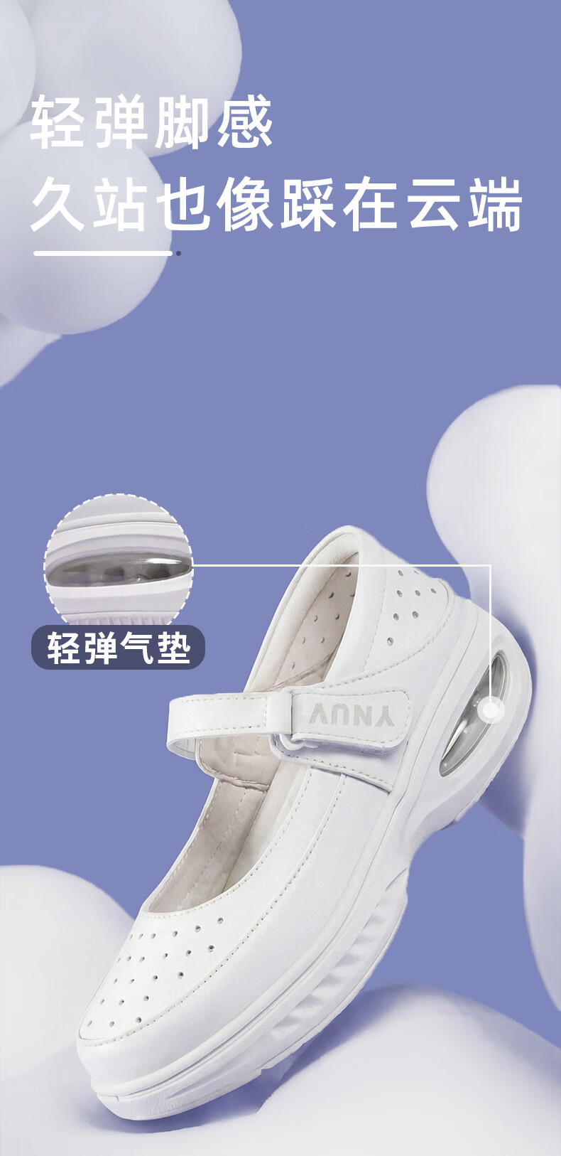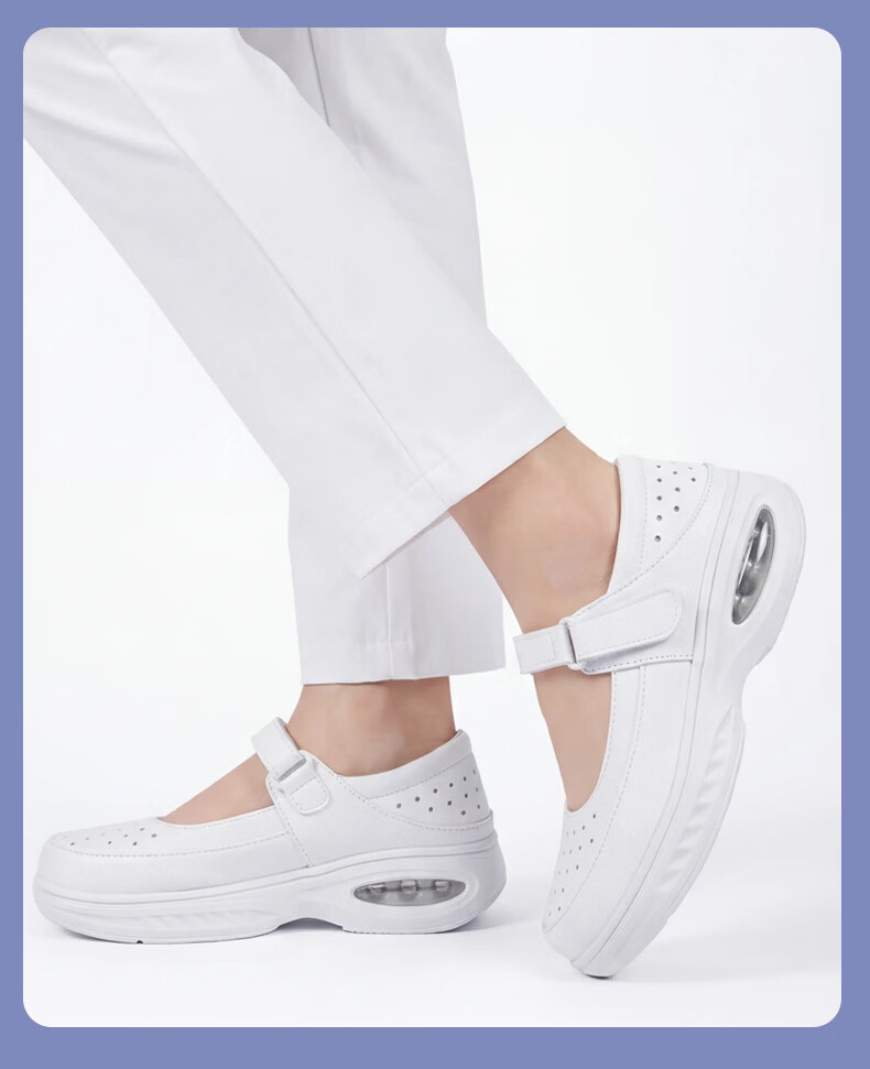 YNUV护士鞋女工作不累脚透气防滑防臭足弓支撑真皮夏季医护人员工作鞋 白色 夏季凉鞋打孔 41 (255mm)