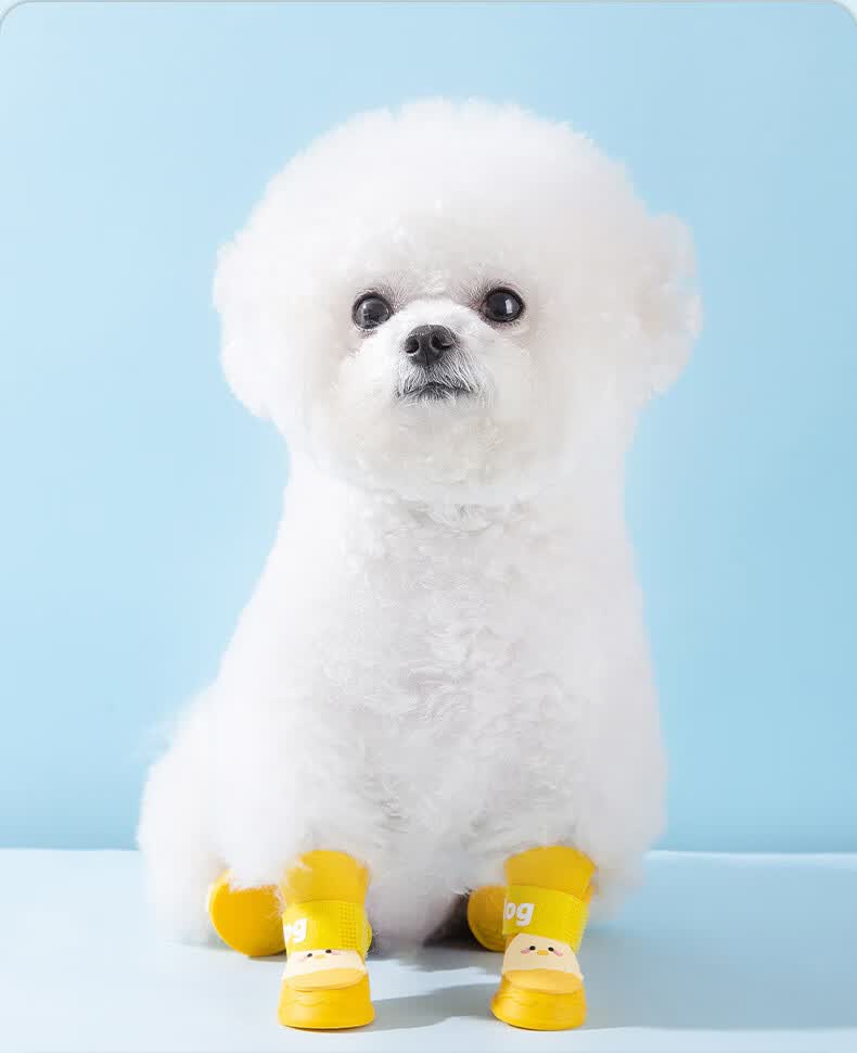拉维佩特(LOVINGPET)防水狗狗鞋子小型犬狗狗雨鞋硅胶比熊鞋子卡通小狗鞋子宠物鞋 邦迪蓝 L(建议体重8-15斤)