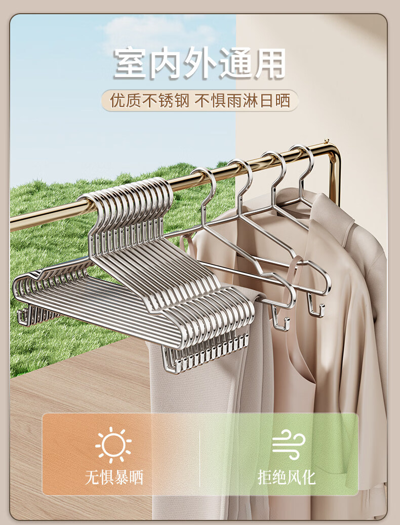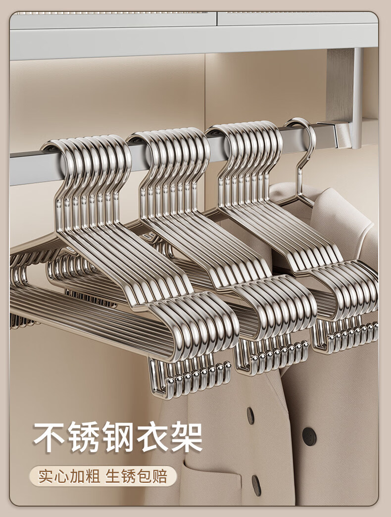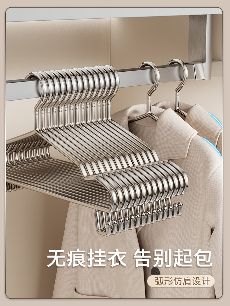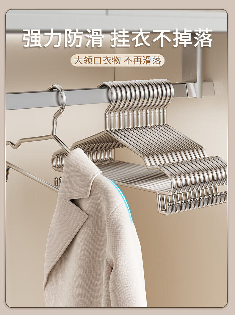 洁百纳不锈钢衣架家用无痕挂衣架子晾衣撑加粗加厚衣撑子晒衣挂衣服挂钩 45cm成人通用款带钩【特粗款】 50个装