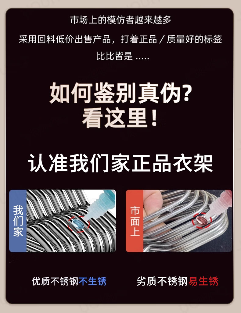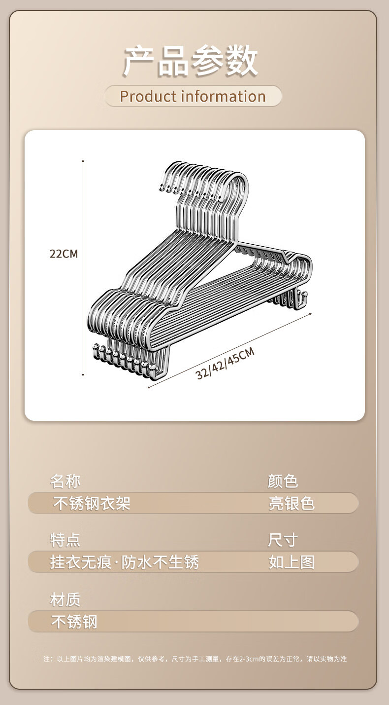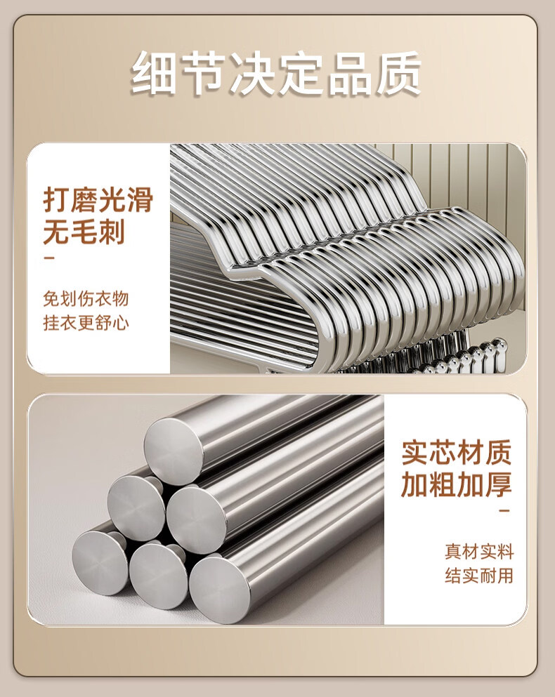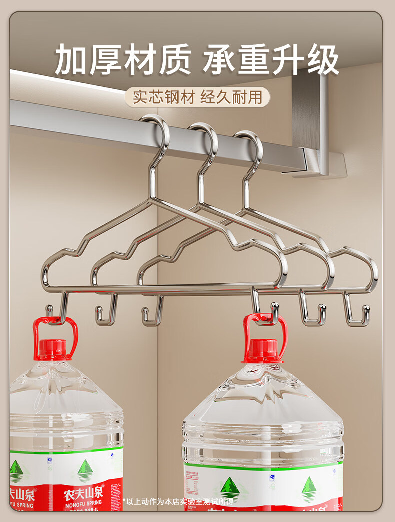洁百纳不锈钢衣架家用无痕挂衣架子晾衣撑加粗加厚衣撑子晒衣挂衣服挂钩 45cm成人通用款带钩【特粗款】 50个装