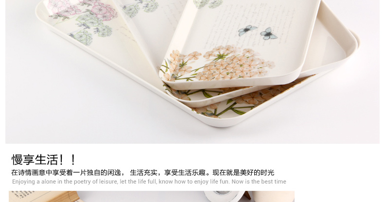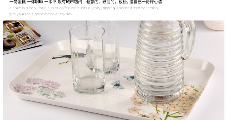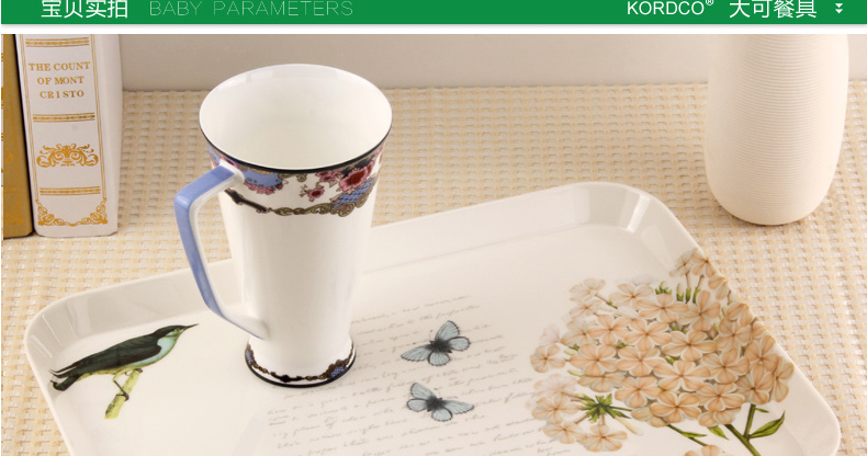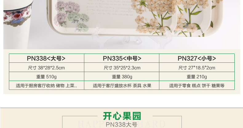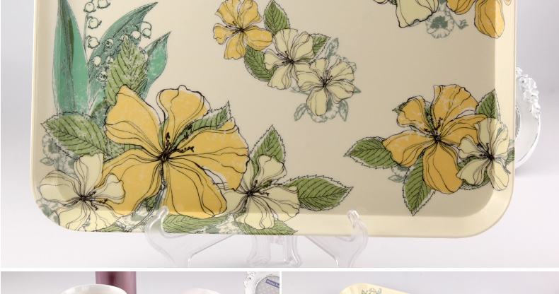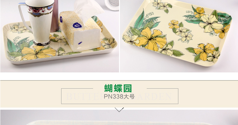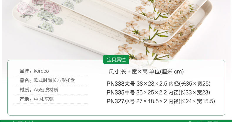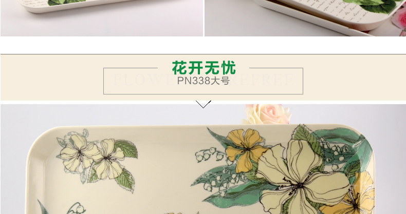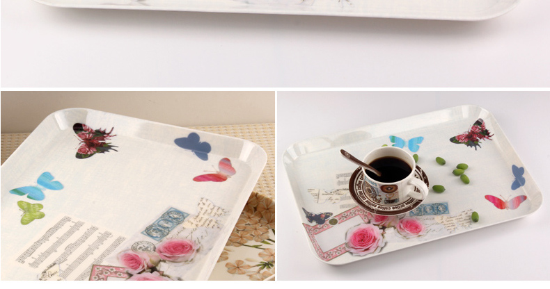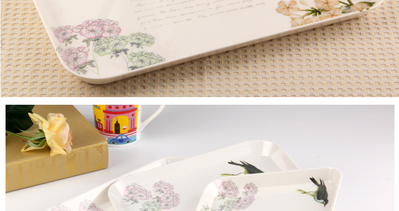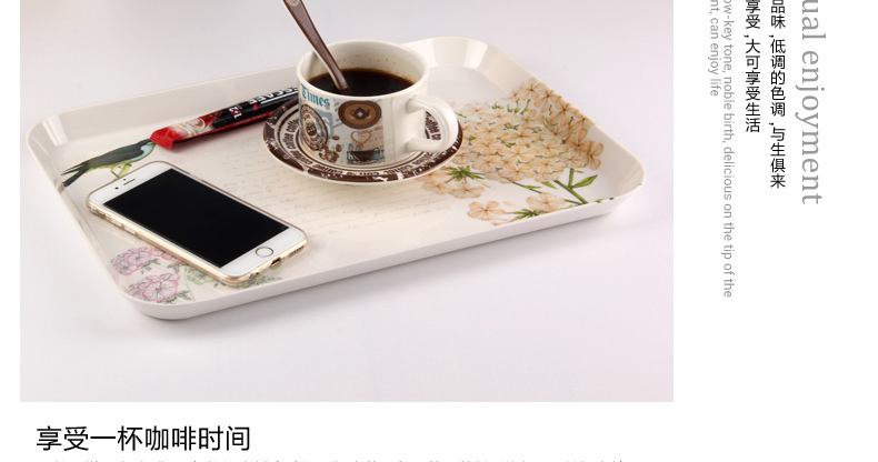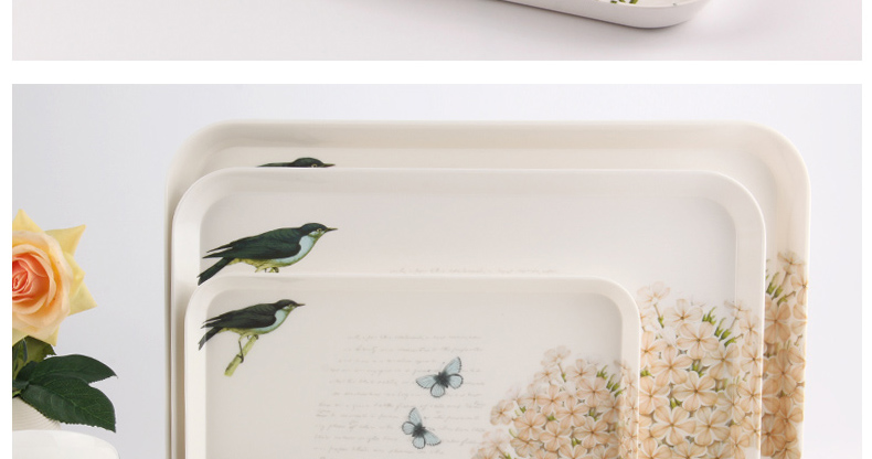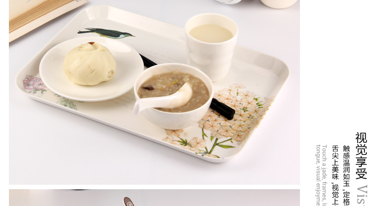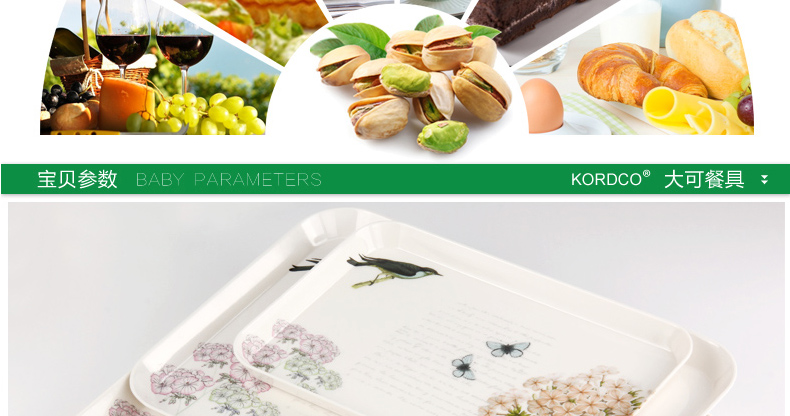 KORDCO 密胺托盘长方形创意水果盘欧式家用茶盘放水杯茶杯的托盘蛋糕盘 小鸟花色 大号 38*28cm