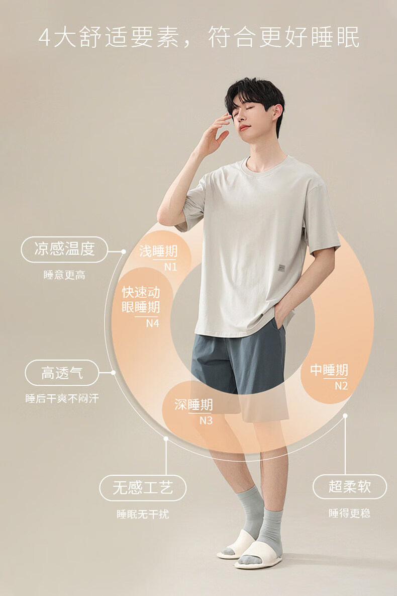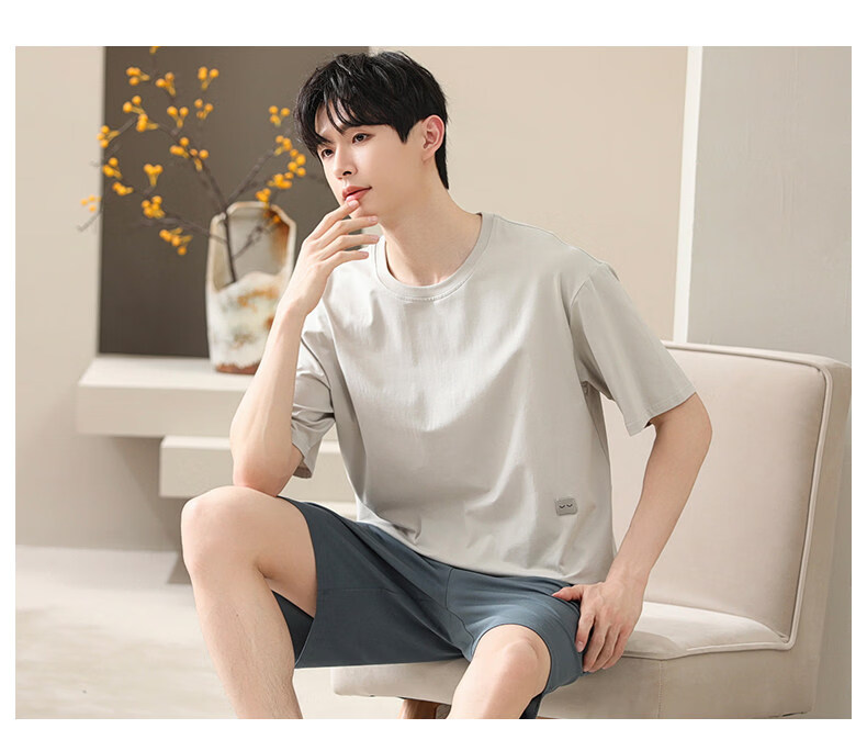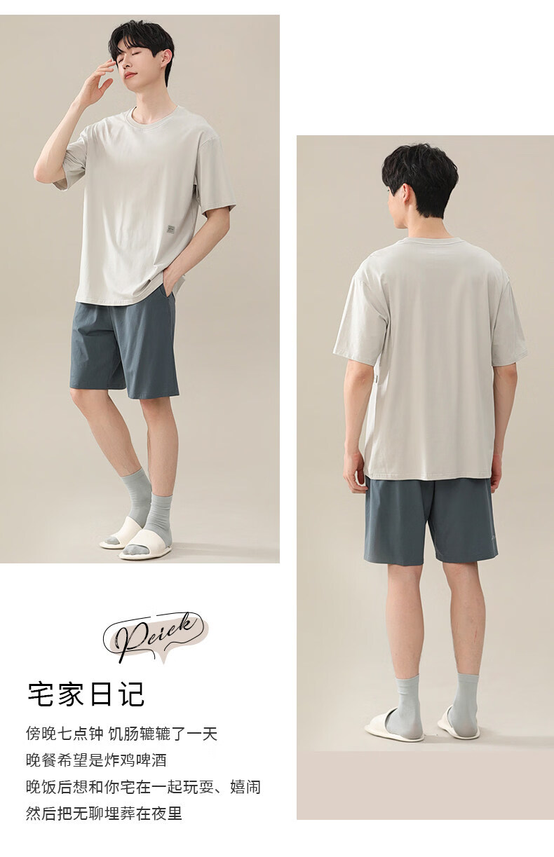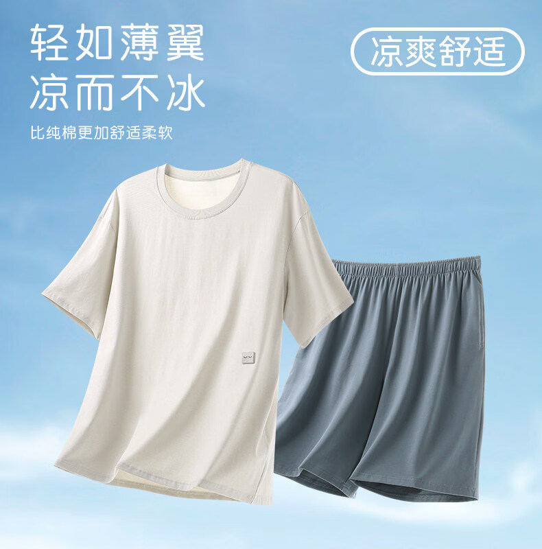 猫人睡衣男款新款夏季薄款冰丝青少年短袖简单家居服套装男士 6008【裸睡无感 亲肤凉感】 XL 【适合140-150斤】