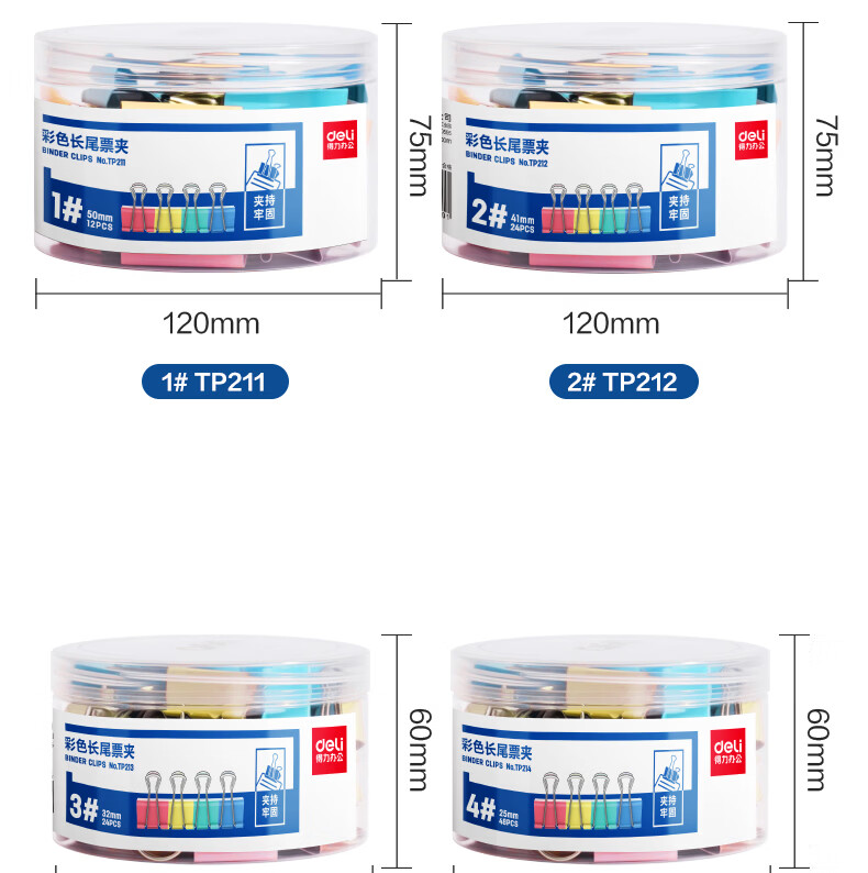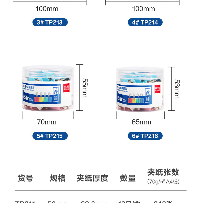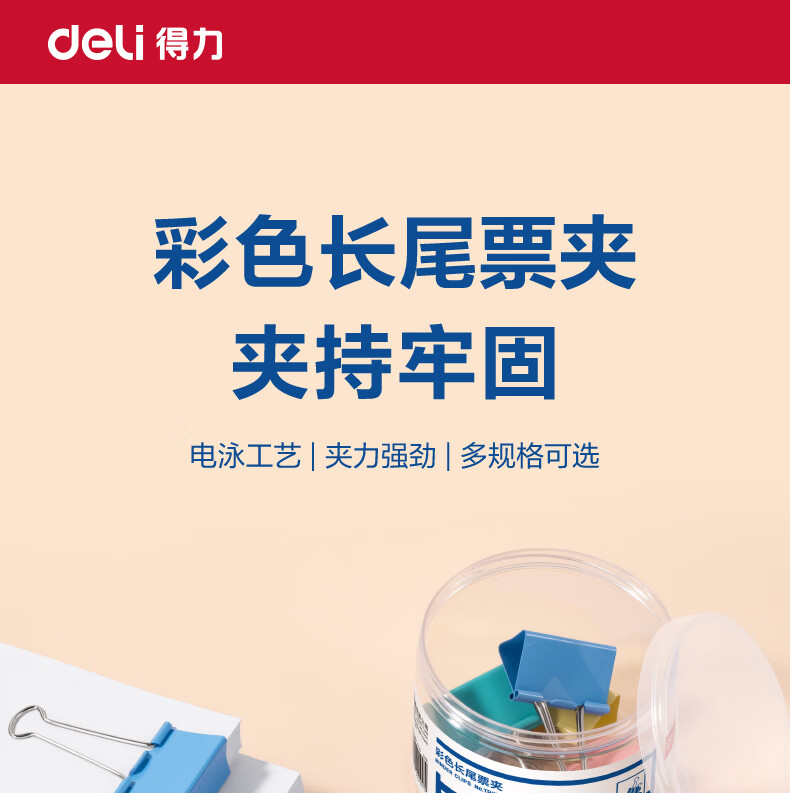 得力(deli)票夹50mm12只彩色长尾票夹燕尾夹大号书夹办公用品资料夹凭证夹票据夹试卷夹小号科目夹TP211