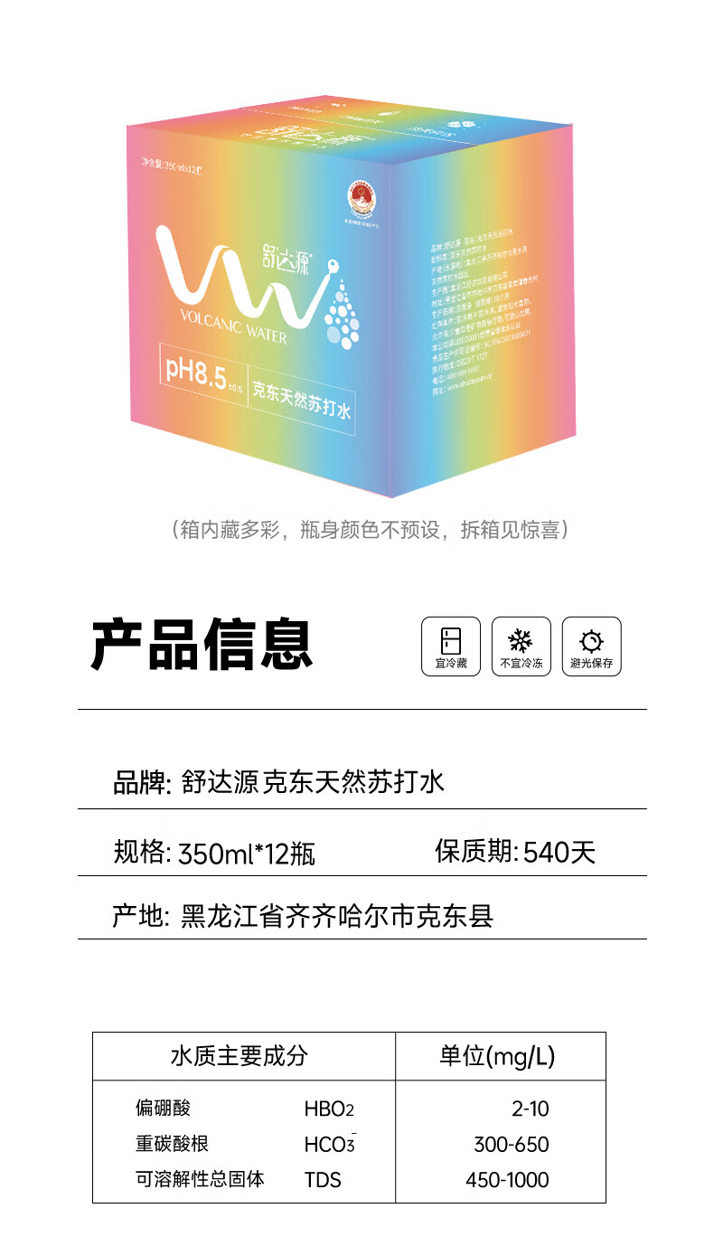 舒达源克东天然苏打水|弱碱性水|高端小瓶饮用水|350ML*12瓶整箱 多彩款(颜色随机)