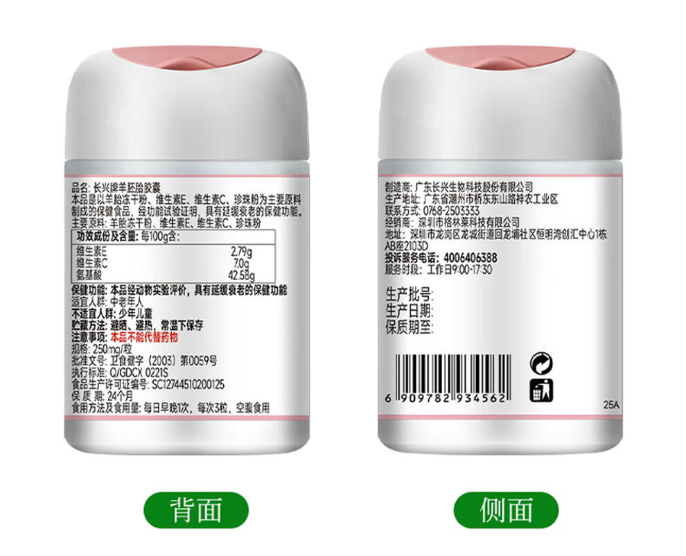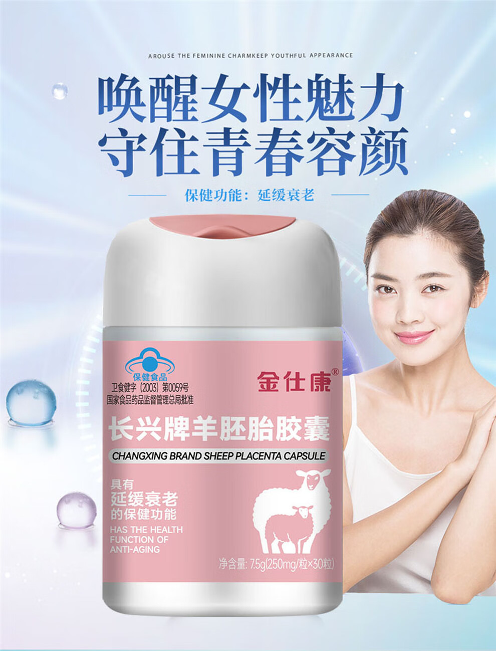 金仕康长兴牌羊胚胎胶囊30粒中老年延缓衰老含羊胎维生素e维生素c 6瓶金仕康羊胚胎胶囊30粒