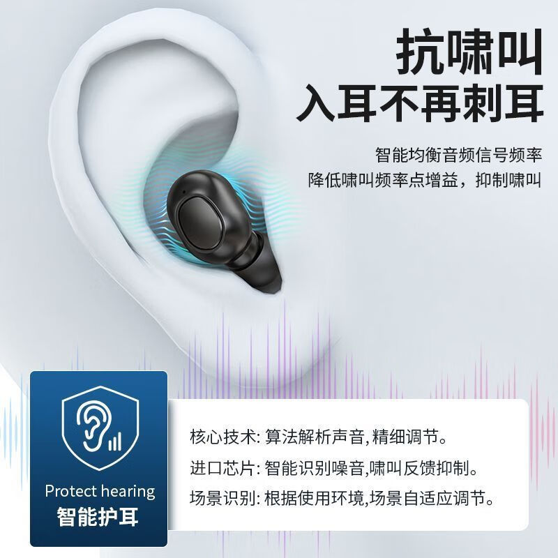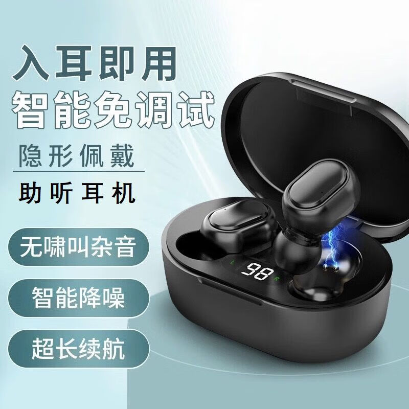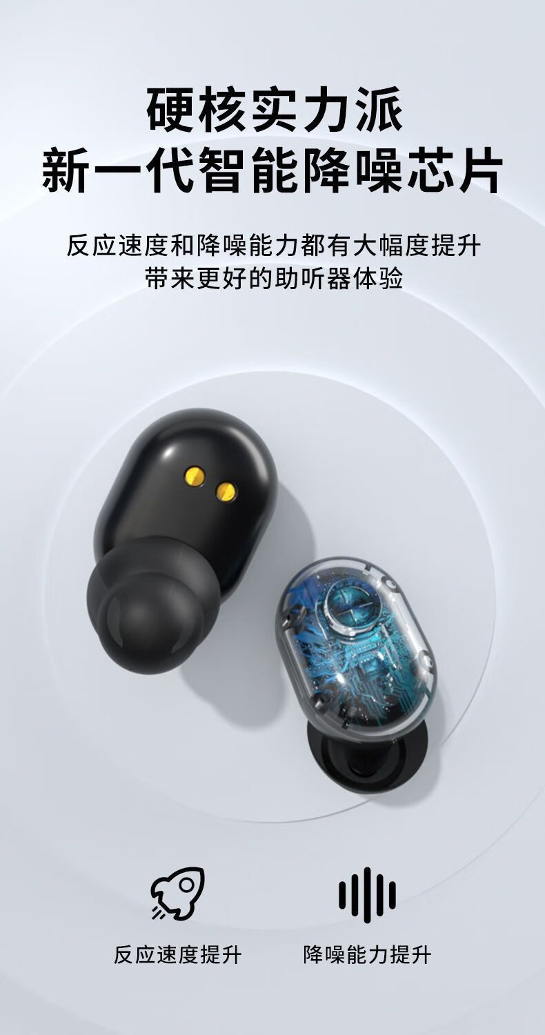 福和顺助听器助听耳机老人辅听耳机双耳智能降噪耳聋耳背声音放大器器械 透肤黑 双耳通用五档音量 智能降噪 不分左右