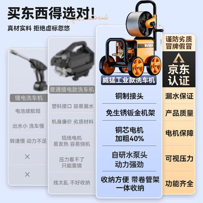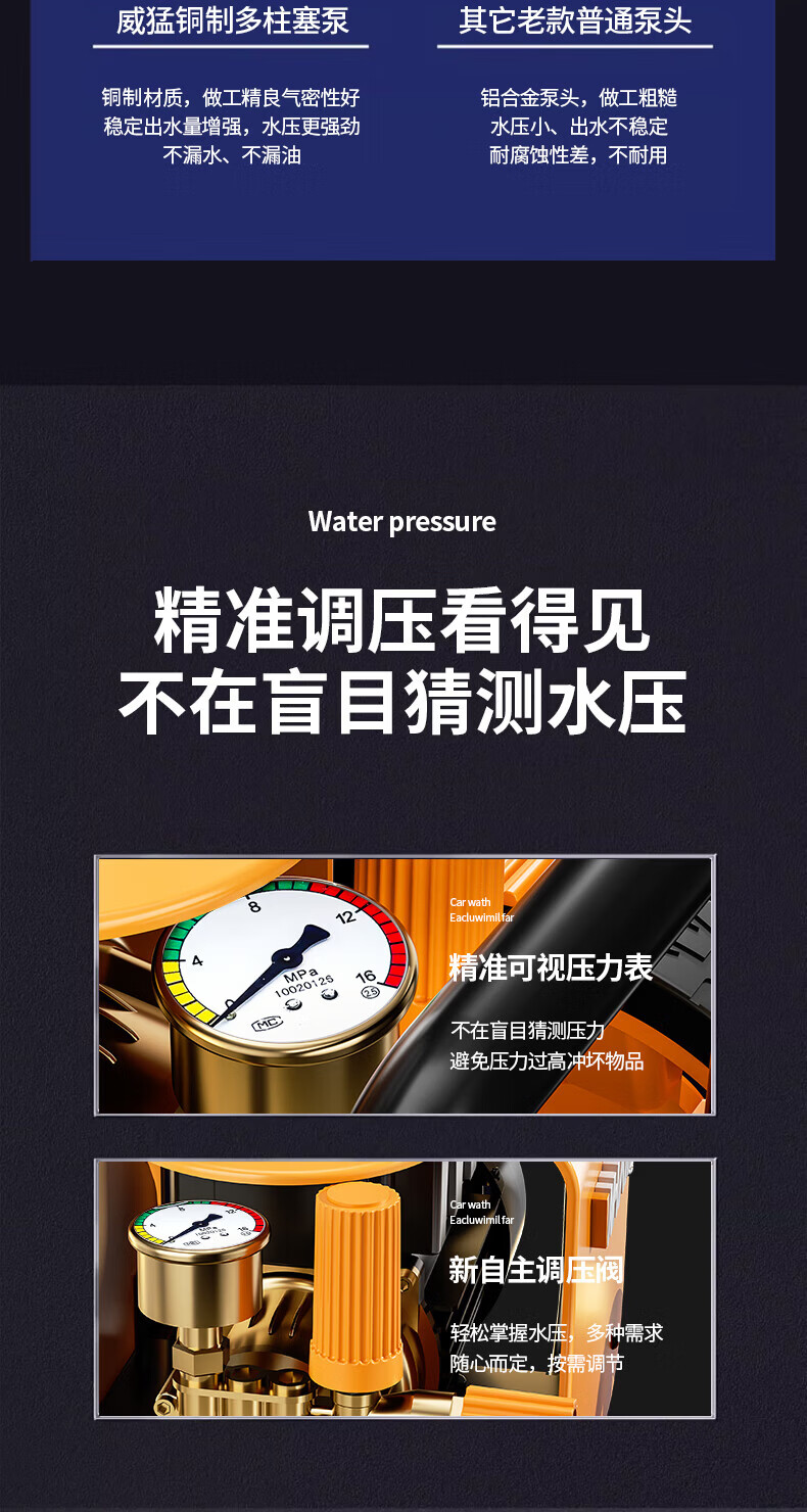 威猛高压洗车机清洗机商用家用洗车水枪商用220v刷车泵大功率神器 4200W 调压商家用(纯铜接头)20米管长杆枪