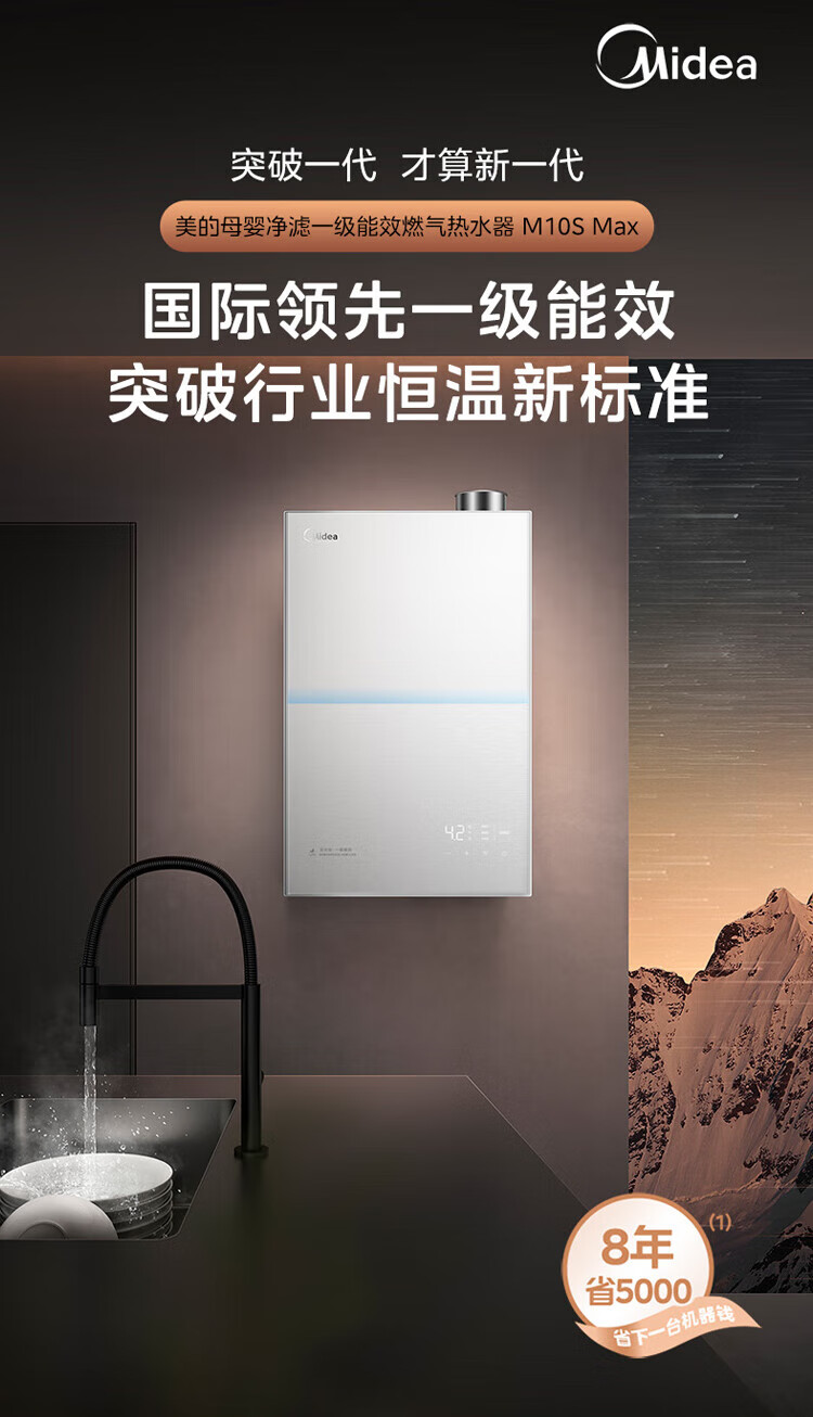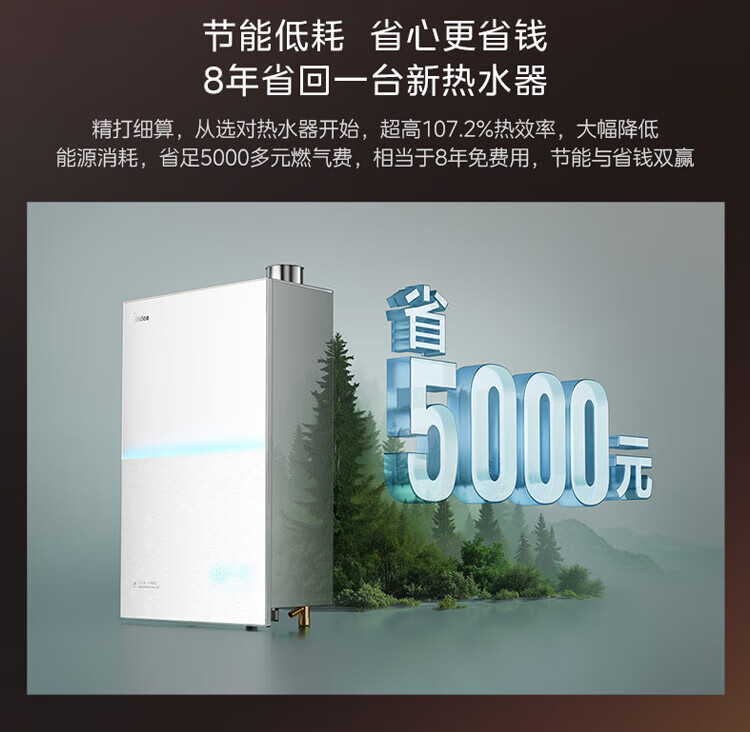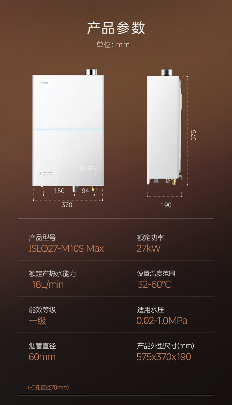 美的【小西梅M10S Max增压】16升燃气热水器天然气 一级能效无冷凝管 无冷感7A一级恒温 大水量静音