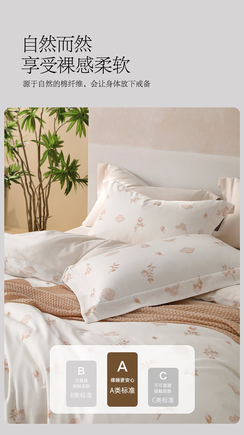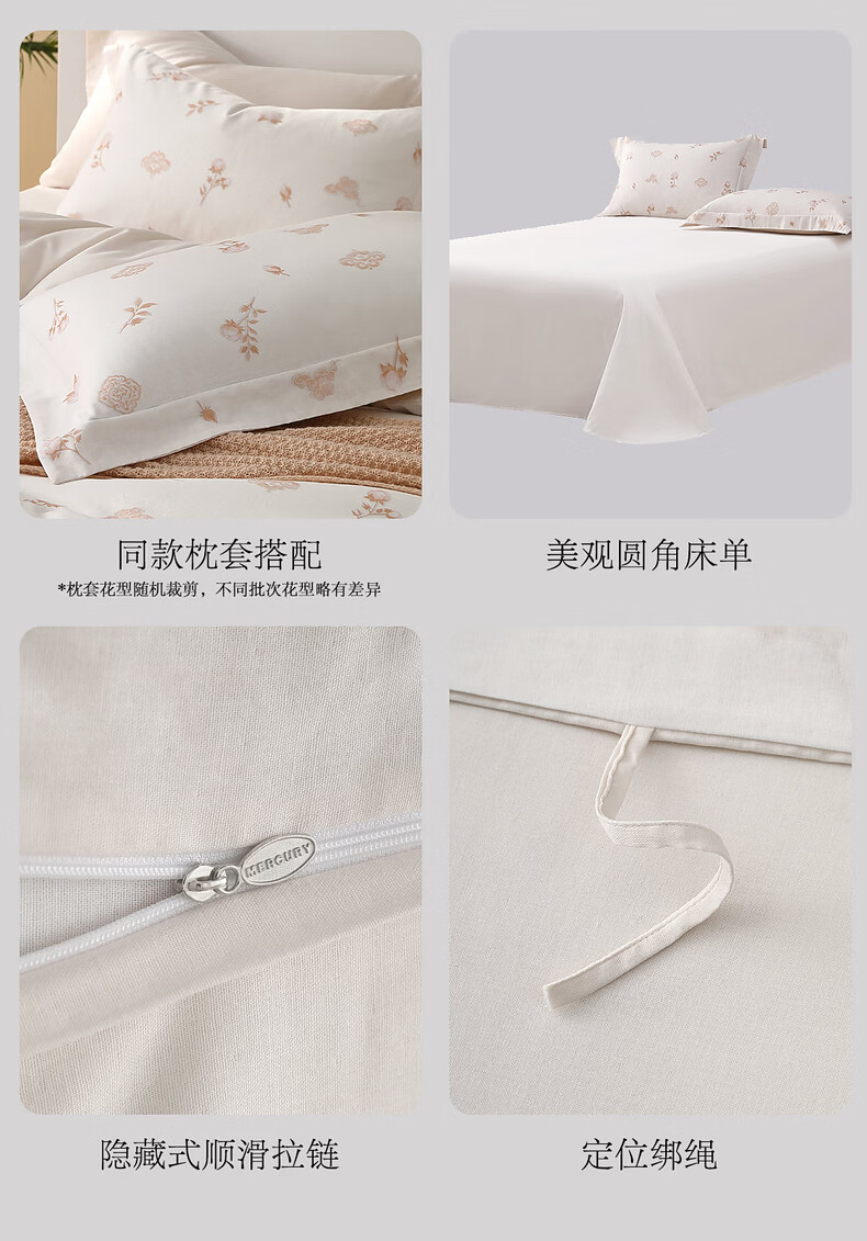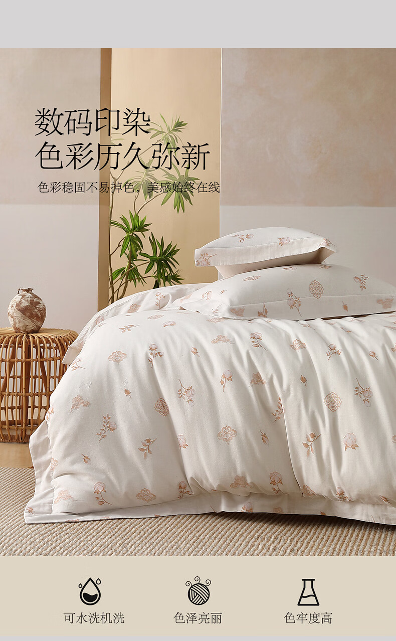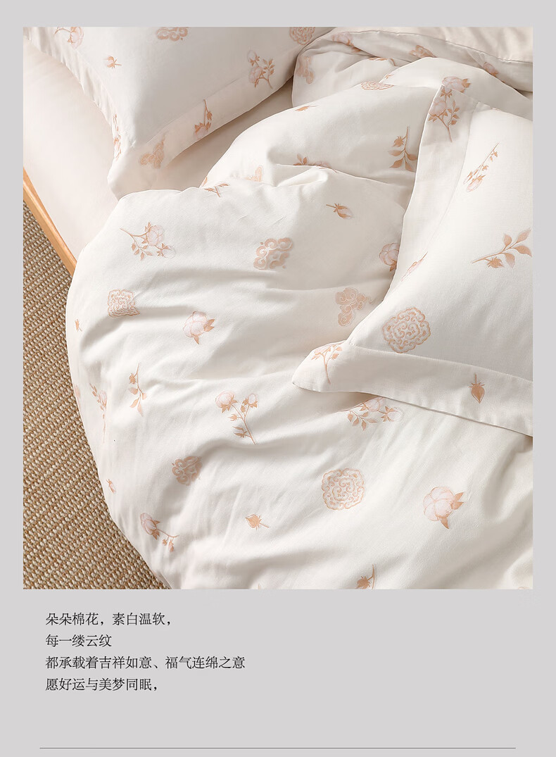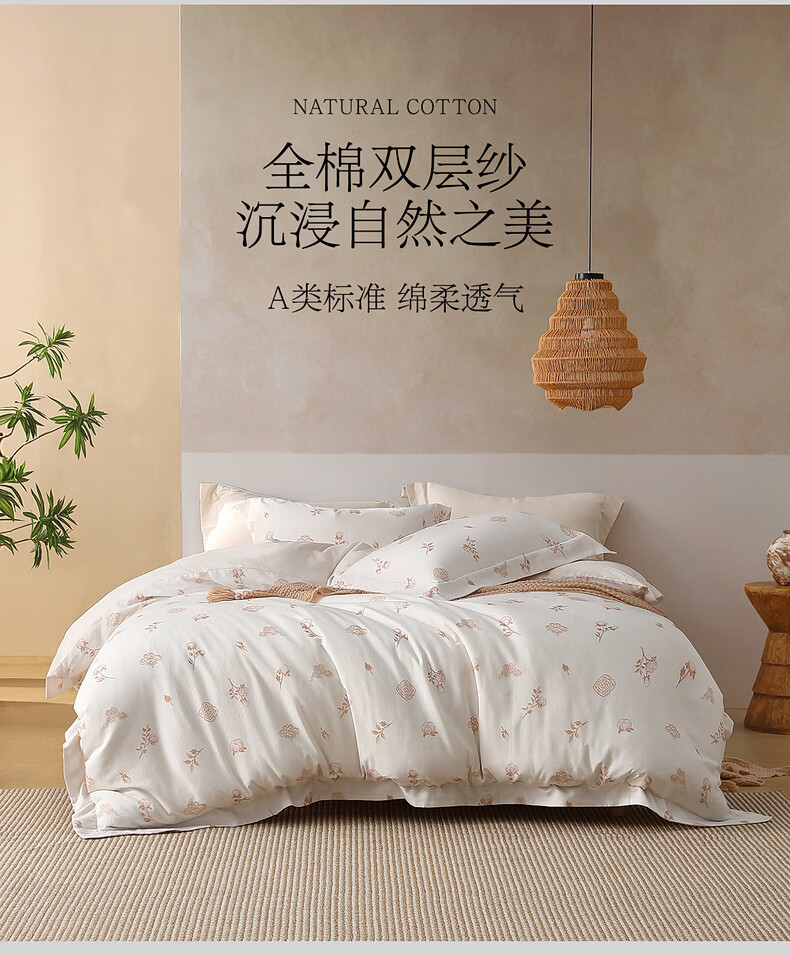 水星家纺四件套床上用品纯棉100%全棉A类床单被套双层纱亲肤透气26年新款 自然永恒·瑾绵 床单款 (被套150*210cm)