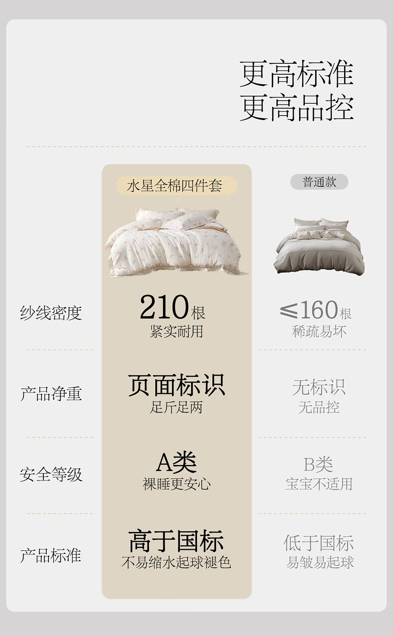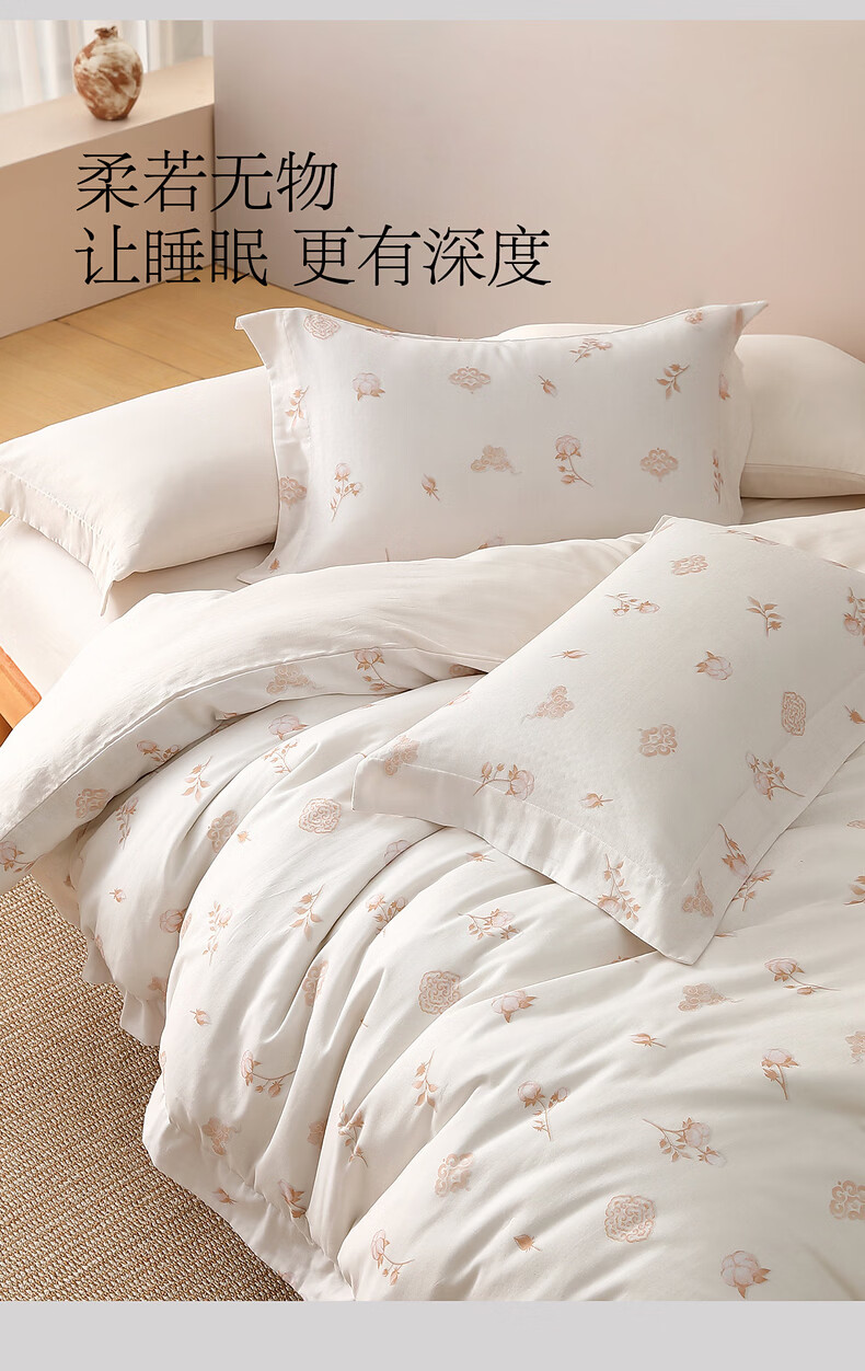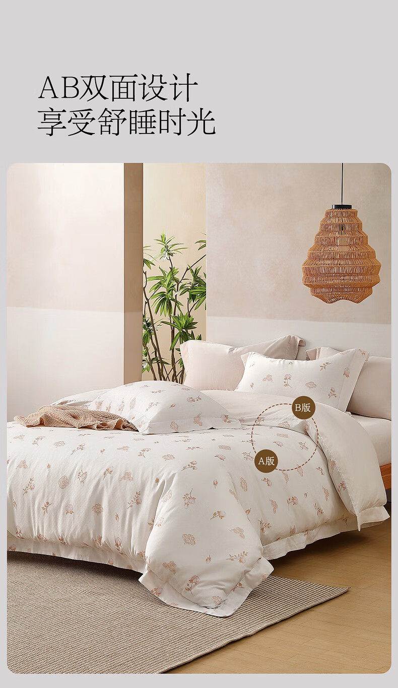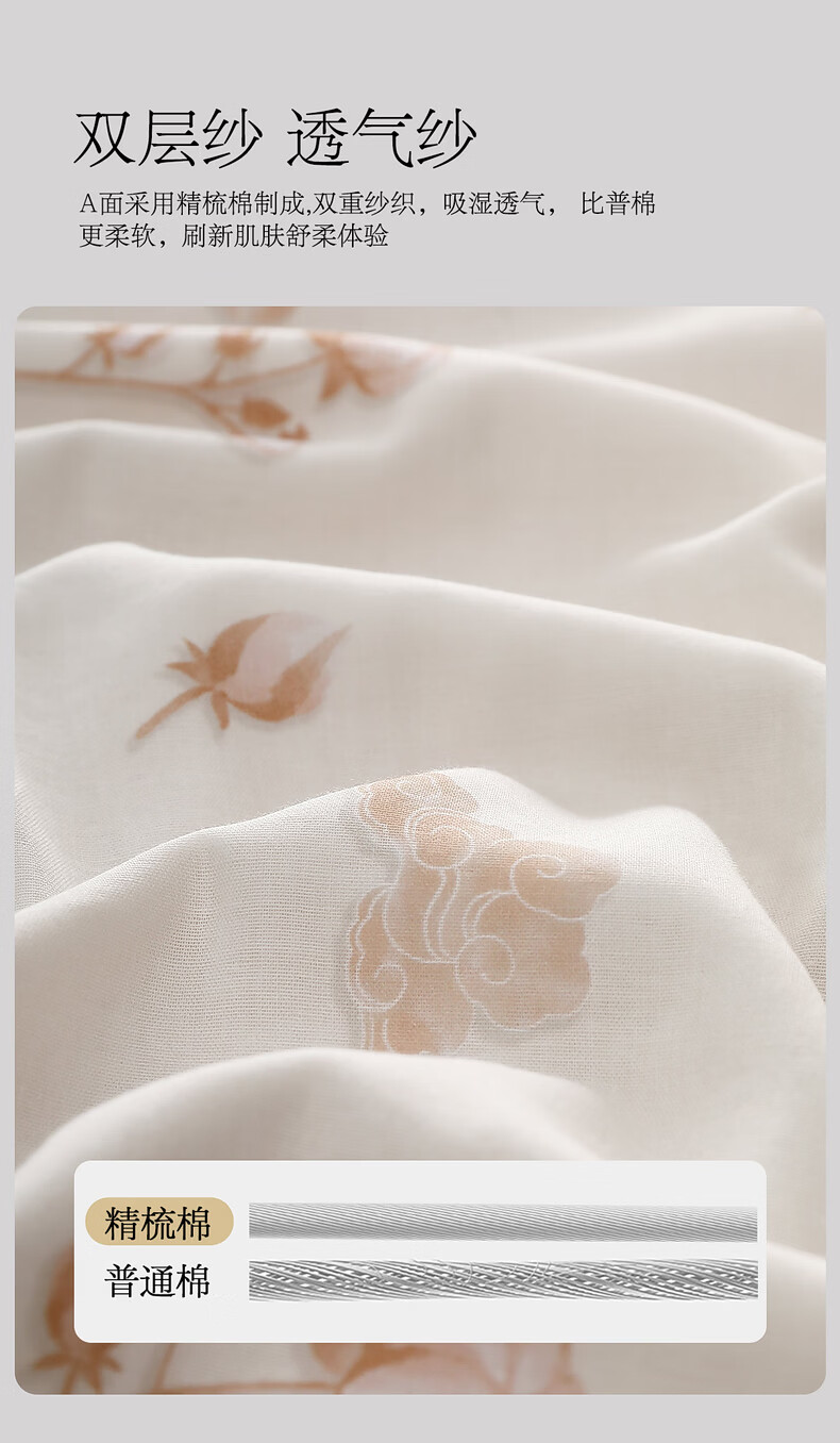 水星家纺四件套床上用品纯棉100%全棉A类床单被套双层纱亲肤透气26年新款 自然永恒·瑾绵 床单款 (被套150*210cm)