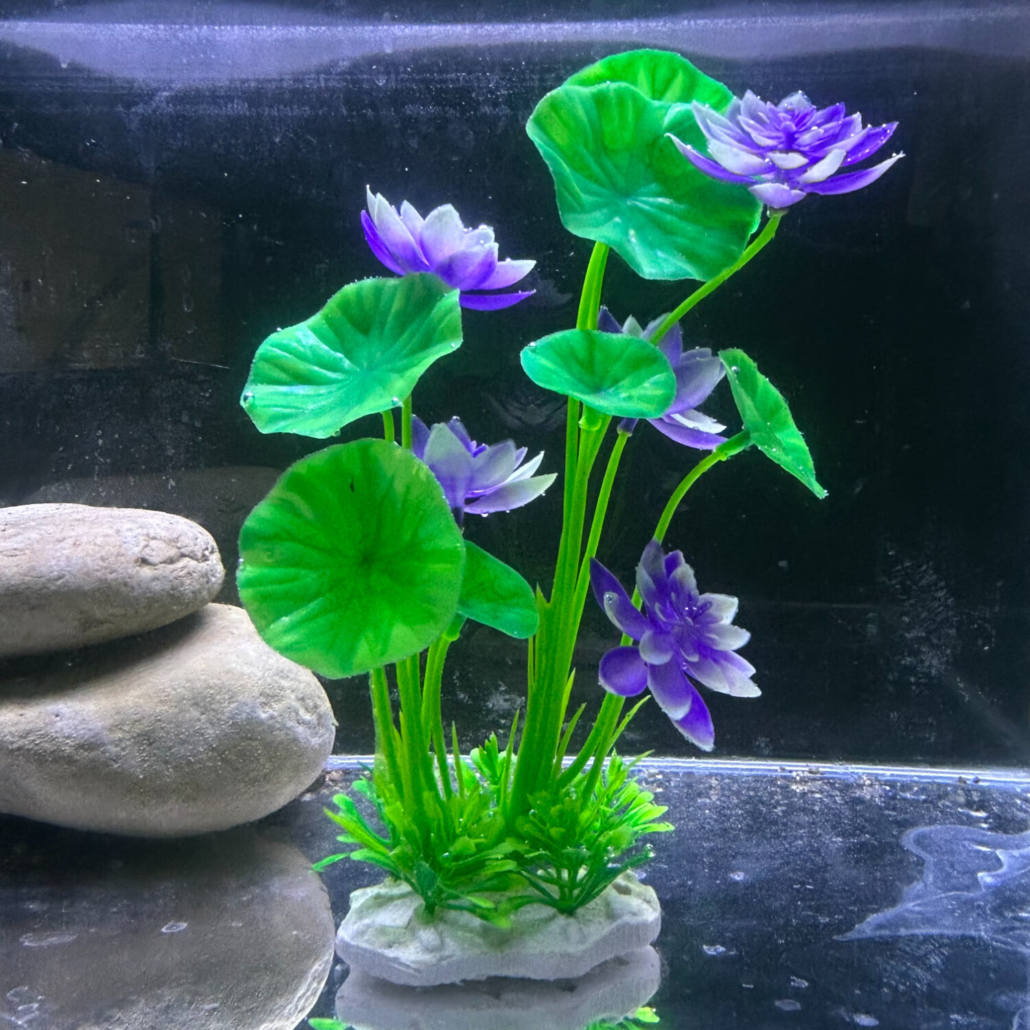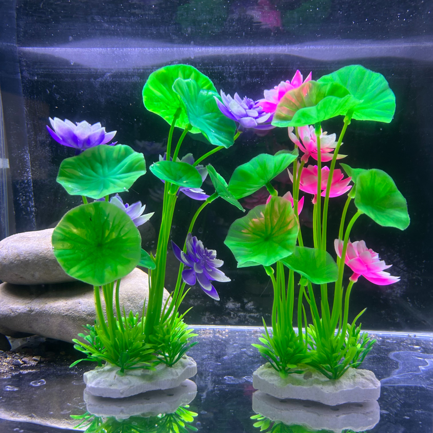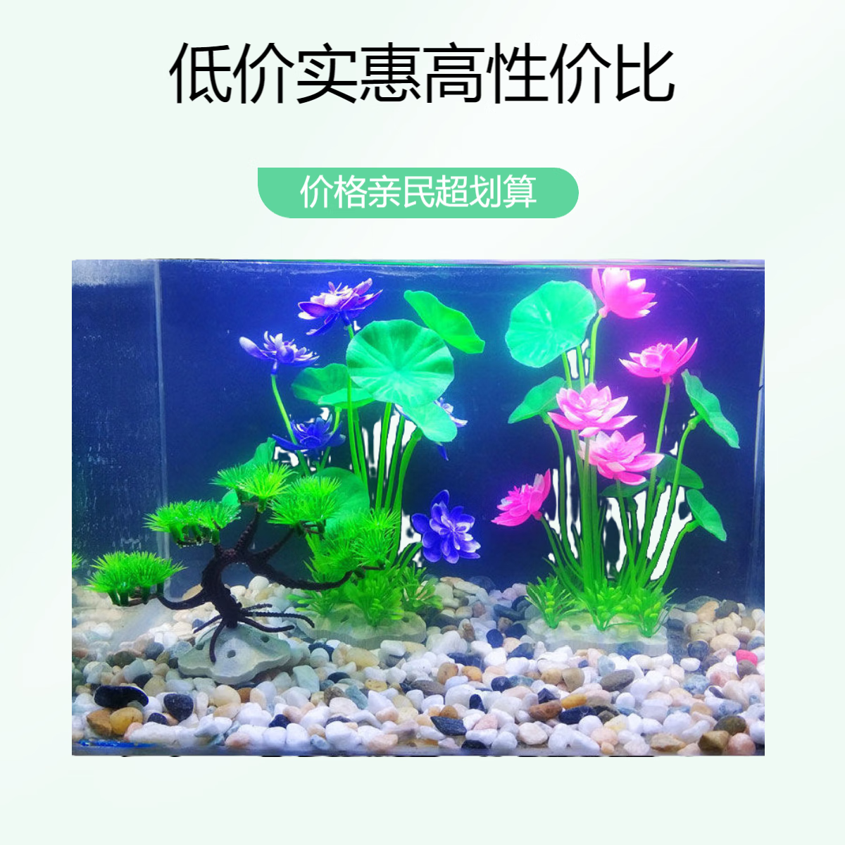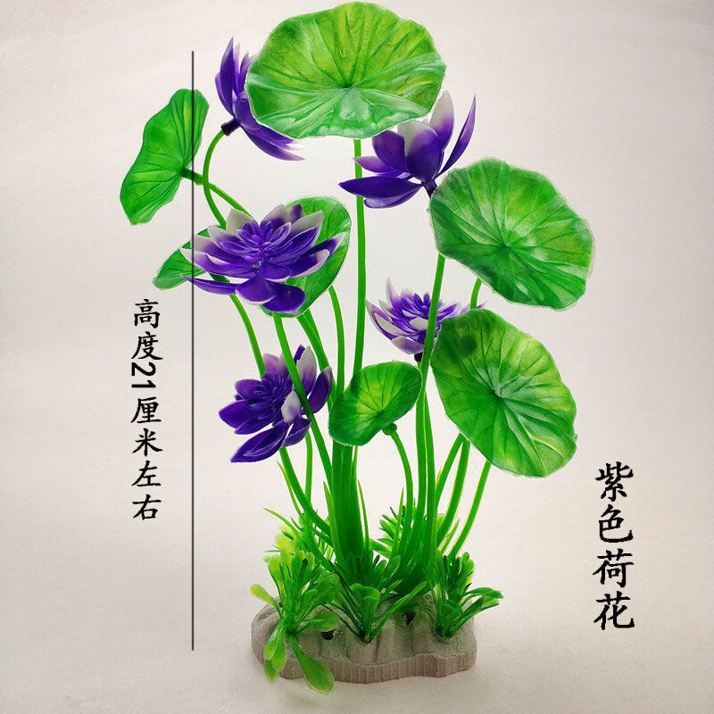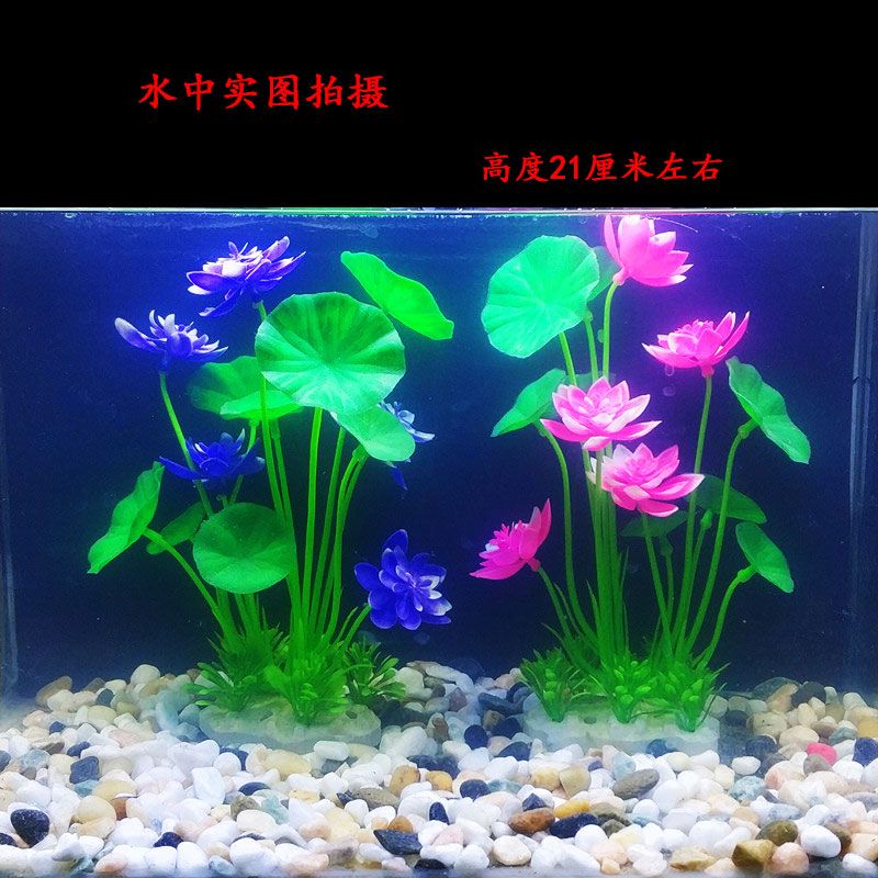 水自在鱼缸造景仿真荷花草假花假草鱼缸装饰仿真水草套餐鱼缸假植物组合 蓝色荷花+粉色荷花