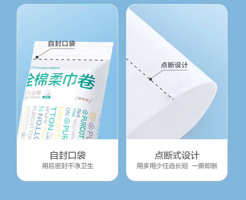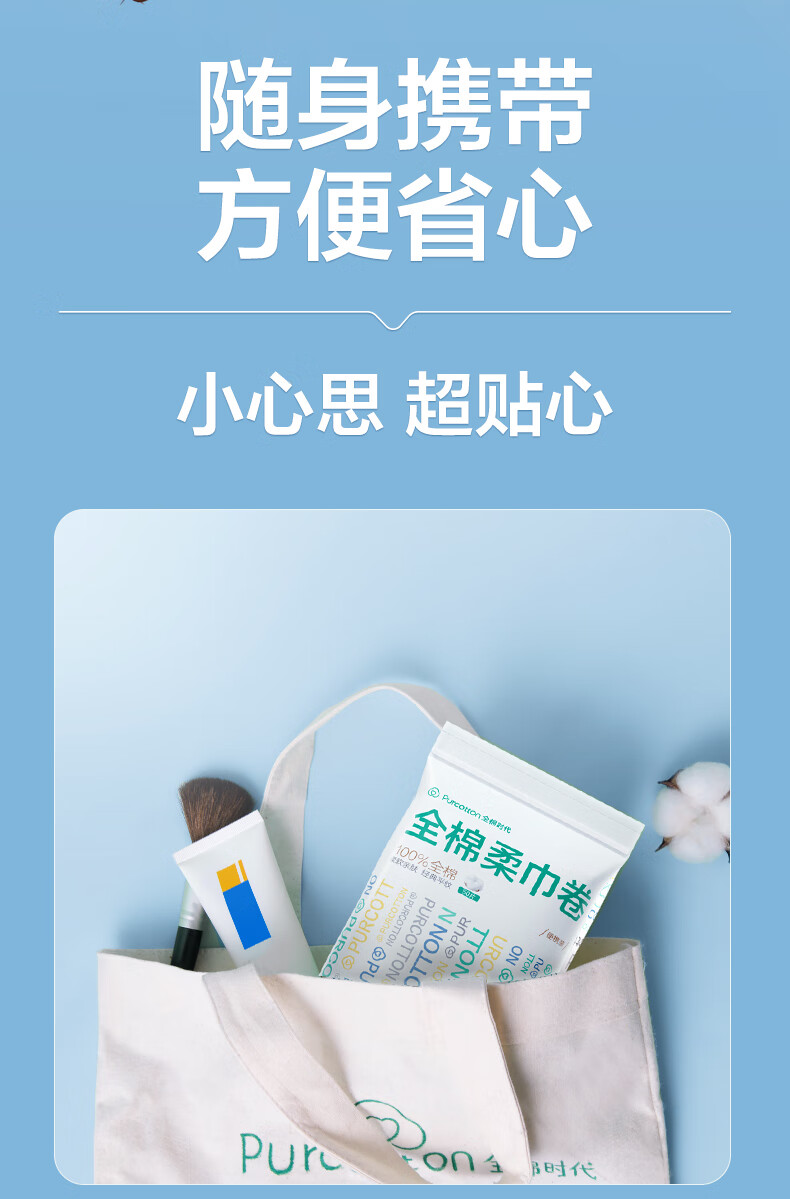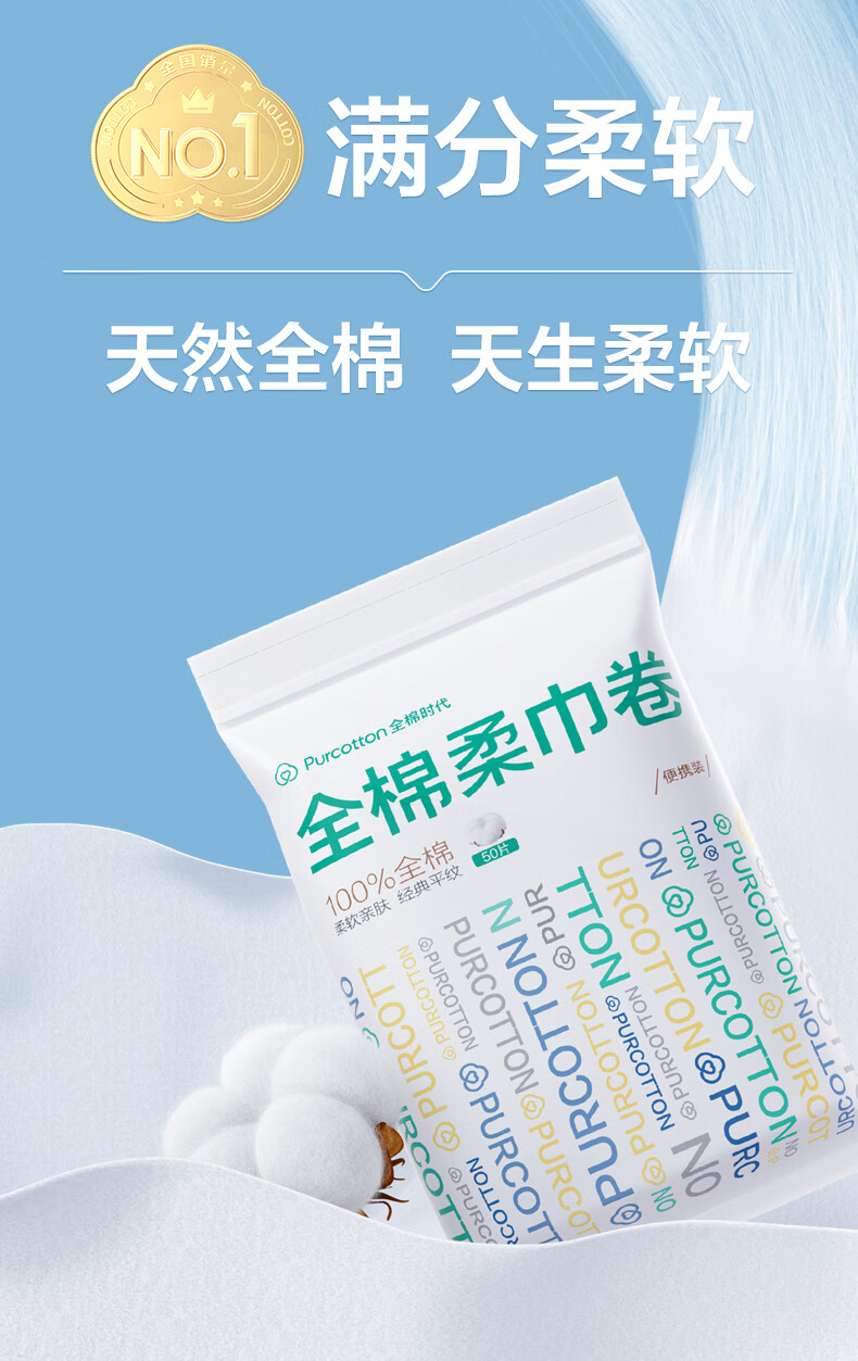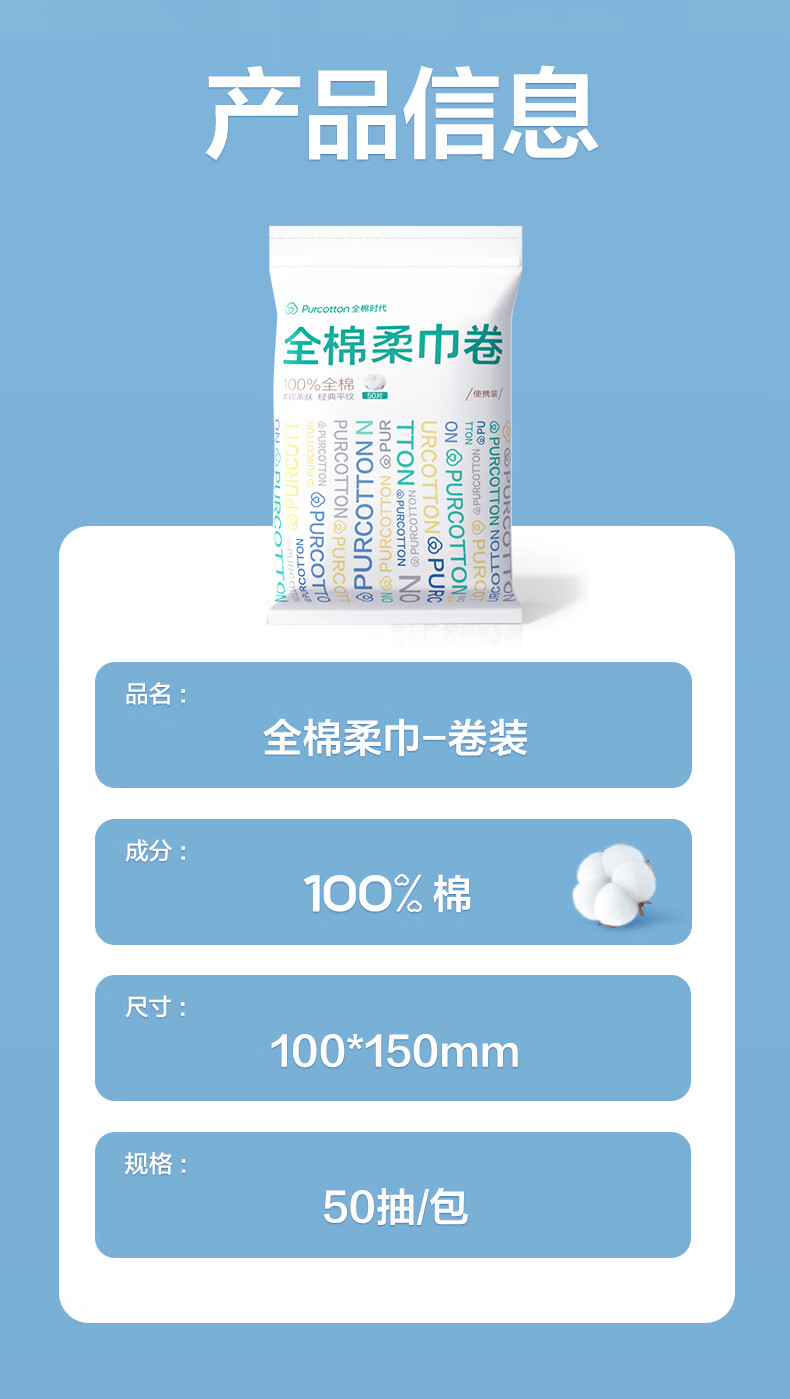 全棉时代【孙颖莎同款】洗脸巾卷 50节*3卷出行一次性100%棉柔毛巾10*15CM