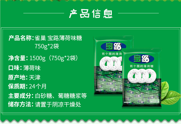 雀巢(Nestle)宝路薄荷糖750g*2袋 清新口气糖 酒店前台餐厅招待糖接待糖