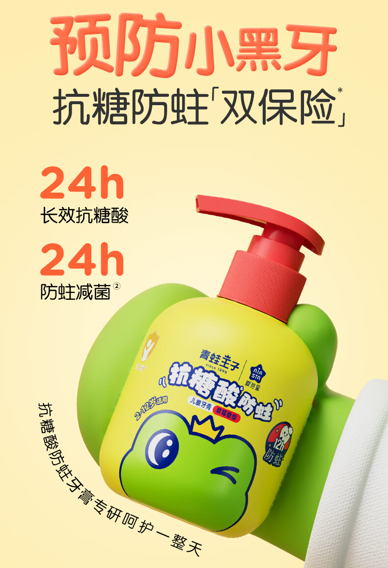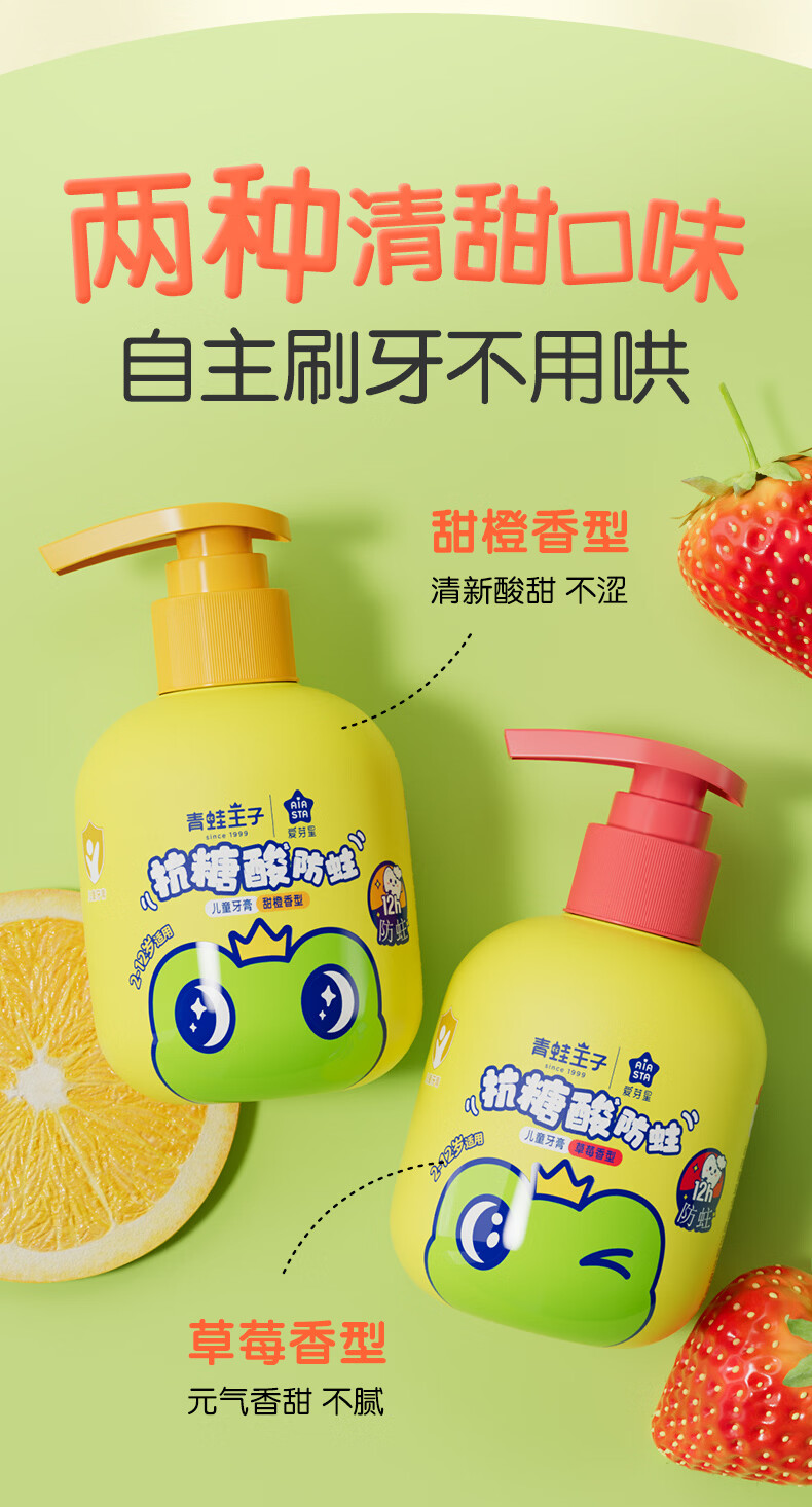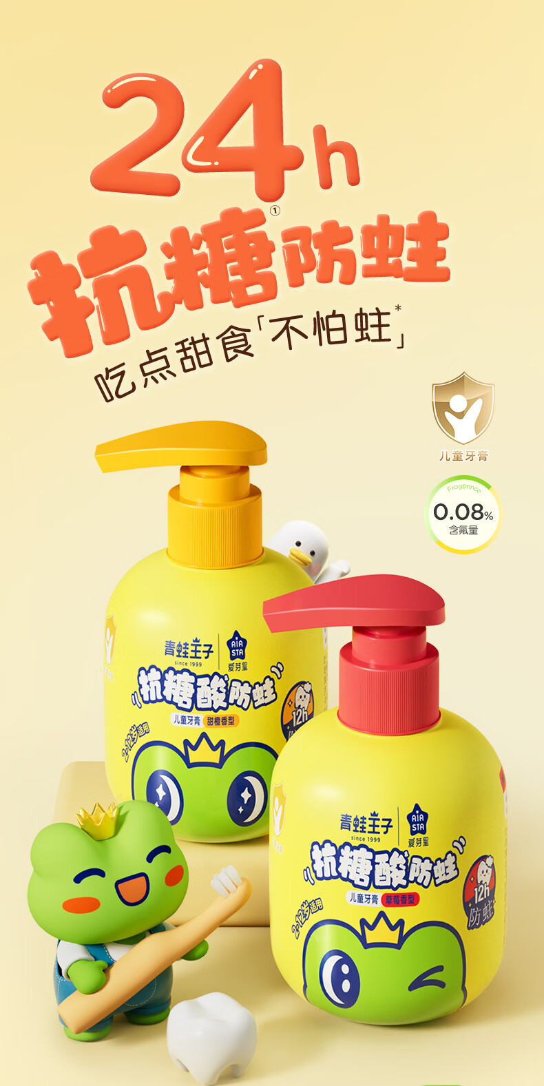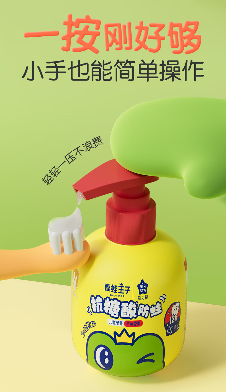 青蛙王子(FROGPRINCE)抗糖酸儿童牙膏 宝宝学生青少年按压牙膏3-12岁24h防蛀护齿防龋齿 (拍1赠3)抗糖酸牙膏150g*2瓶