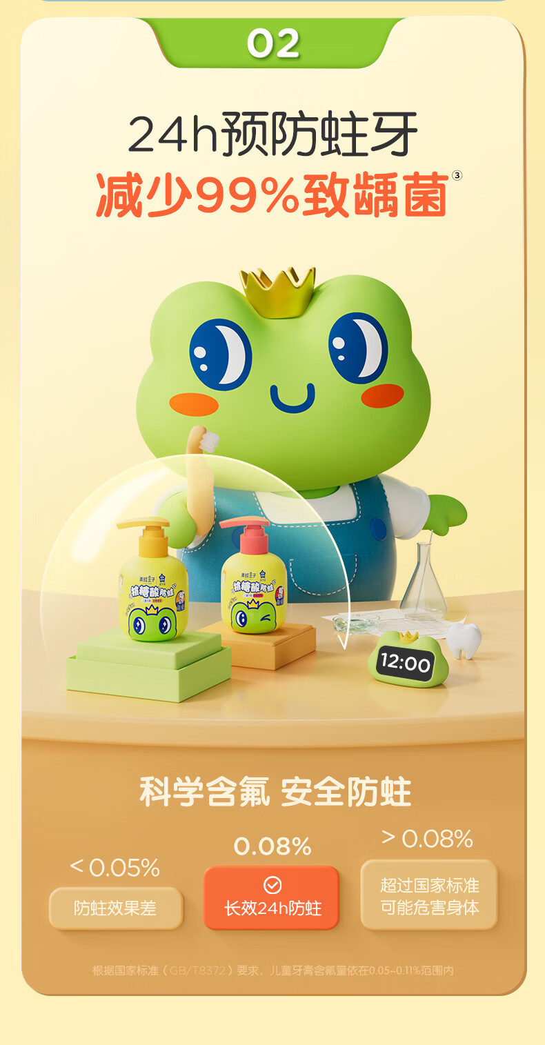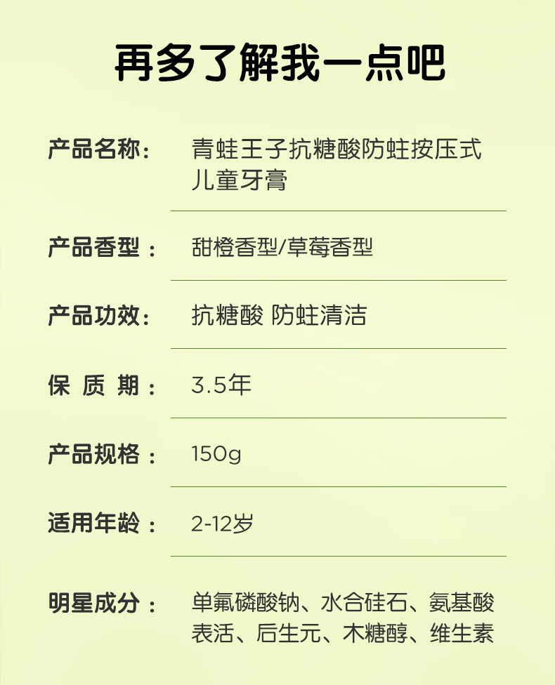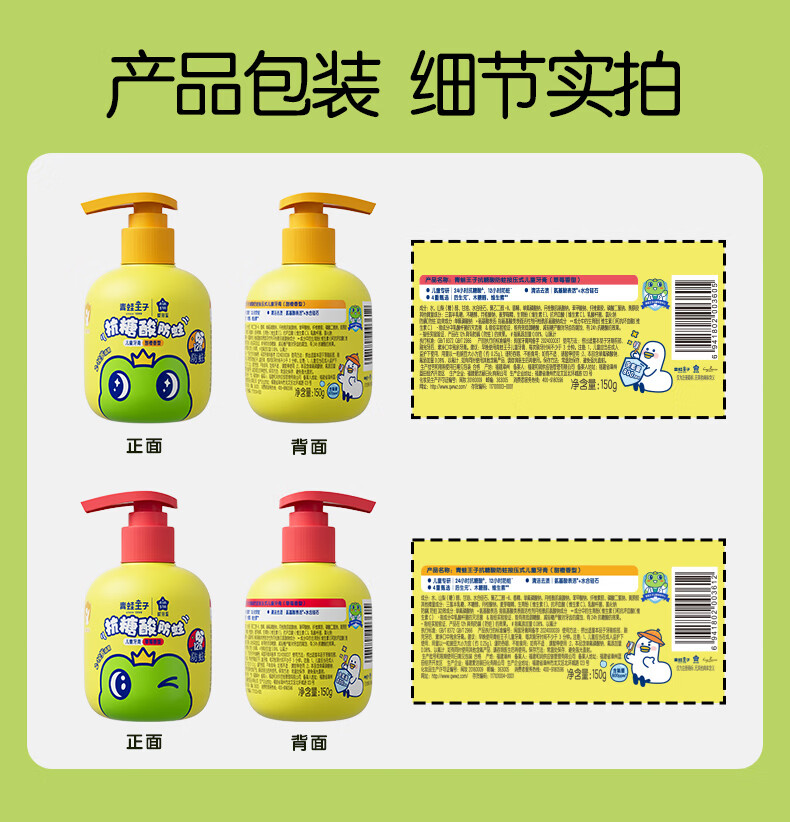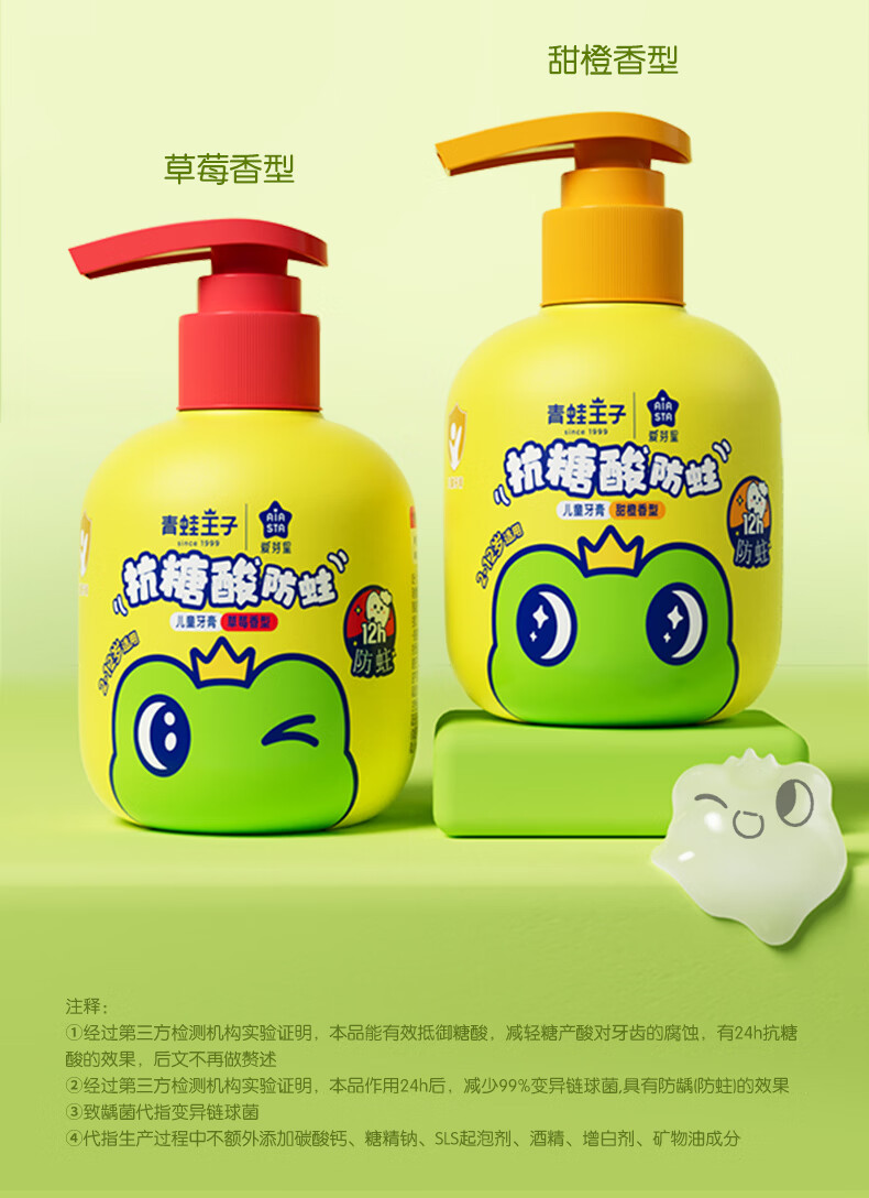 青蛙王子(FROGPRINCE)抗糖酸儿童牙膏 宝宝学生青少年按压牙膏3-12岁24h防蛀护齿防龋齿 (拍1赠3)抗糖酸牙膏150g*2瓶