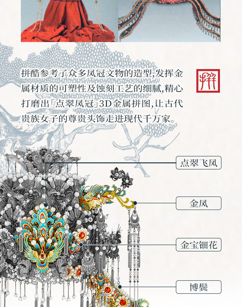 拼酷(piececool)点翠凤冠 十里红妆3d立体拼图金属模型diy生日情人节礼物送女生