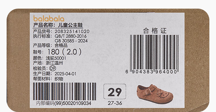 巴拉巴拉童鞋女童公主鞋复古勃肯鞋2025春秋鞋子【三丽鸥IP】208325141020
