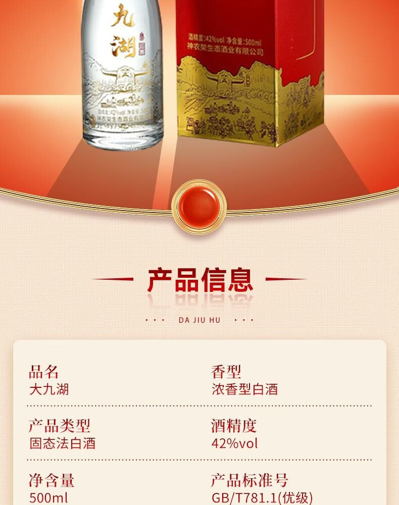 神农架大九湖浓香型白酒42度500ml酒纯粮酒高粱酒礼盒装 买箱装送酒具 42度 500mL 6瓶 (整箱) 送6杯1壶酒具套装