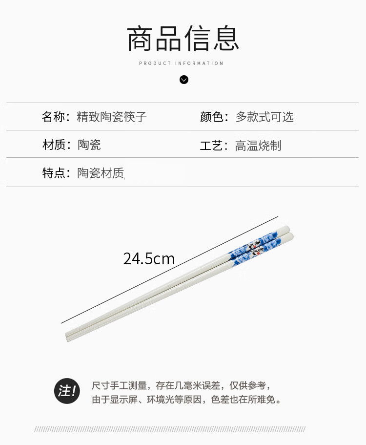 DEATKN陶瓷筷子2025新款防摔陶瓷景德镇家用食品级耐高温不发霉滑快抗菌 5双【尝鲜试用】美满金福 5双