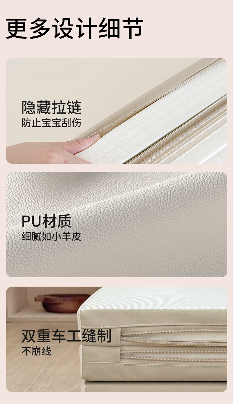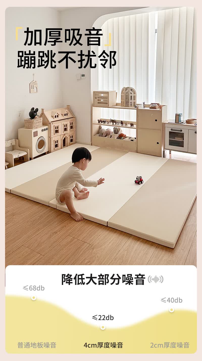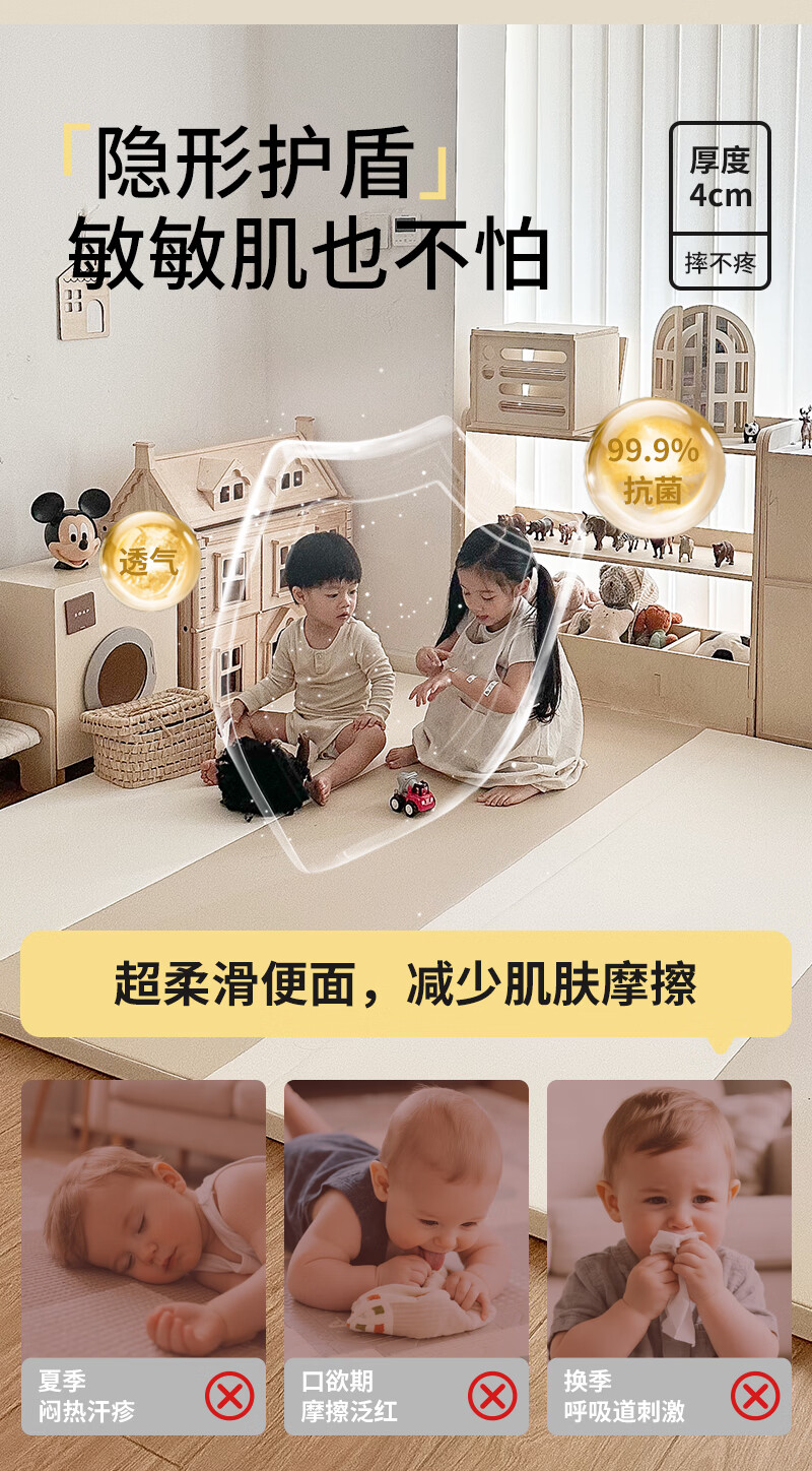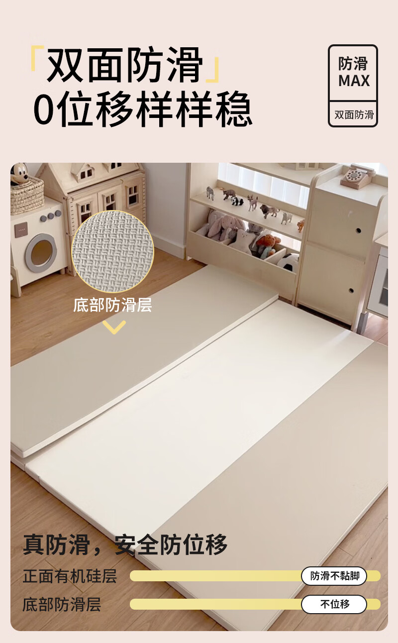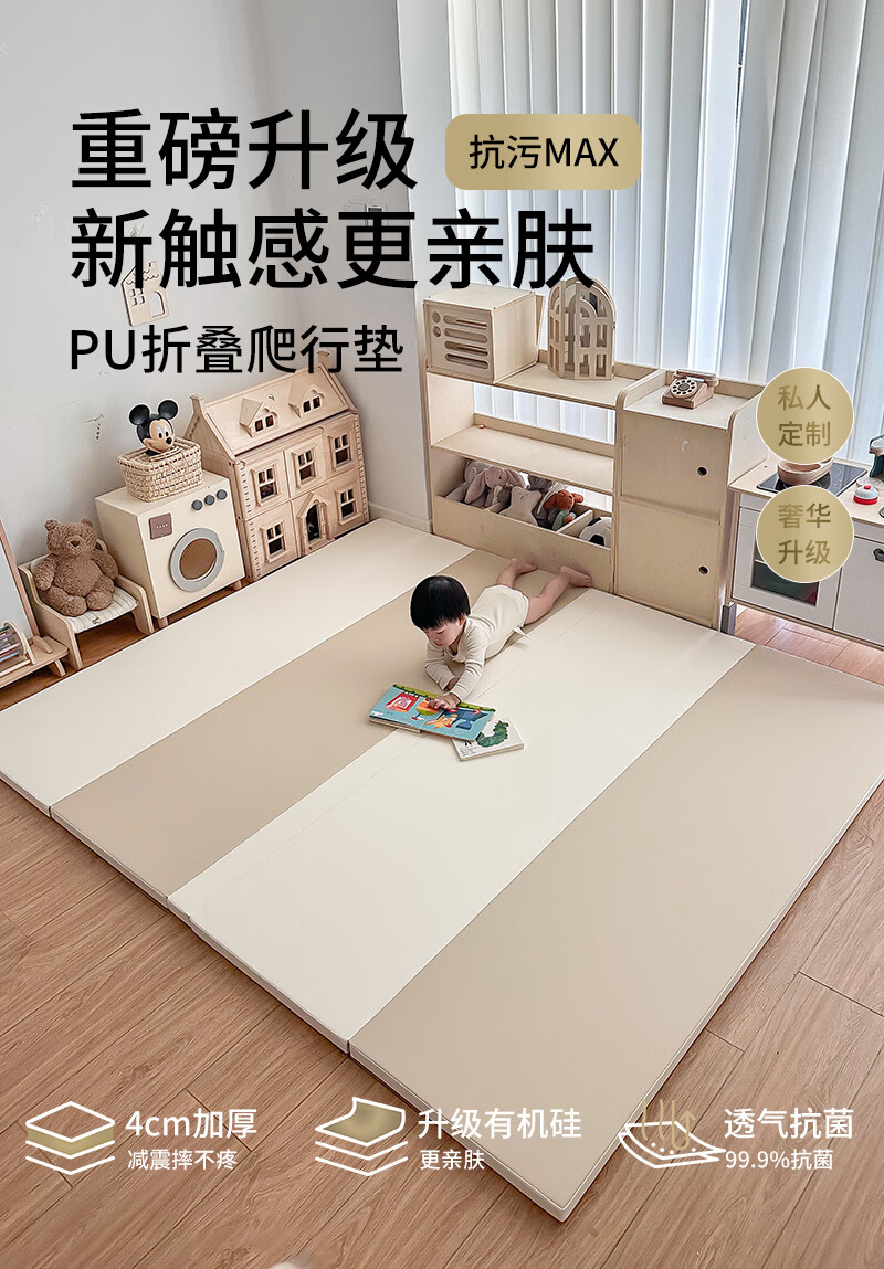 幼乐康宝宝爬行垫加厚IXPE室内客厅婴儿爬爬垫儿童游戏防摔地垫可折叠 升级防滑款 0缝抑菌PU+透气孔【XPE内胆】经典灰 180*120*4CM厚(±1cm)【99抗菌 安心啃咬】