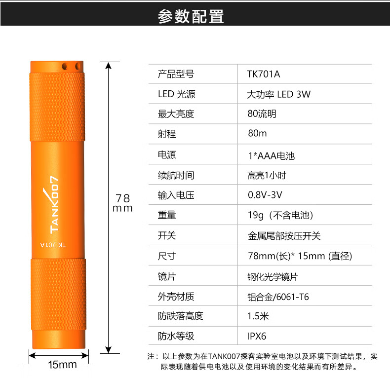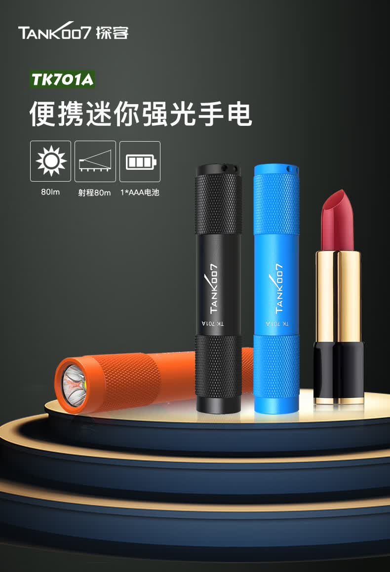 探客 探客迷你便携手电筒80lm应急灯进口灯珠强光聚光超亮防水TK701A TK701A 经典蓝色+1 节 AAA电池