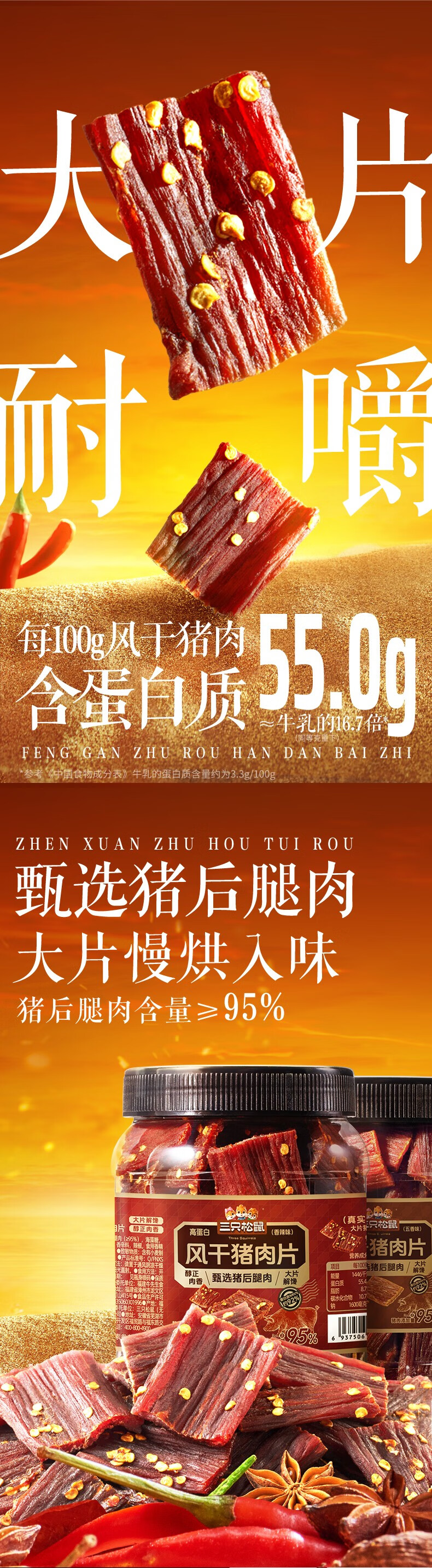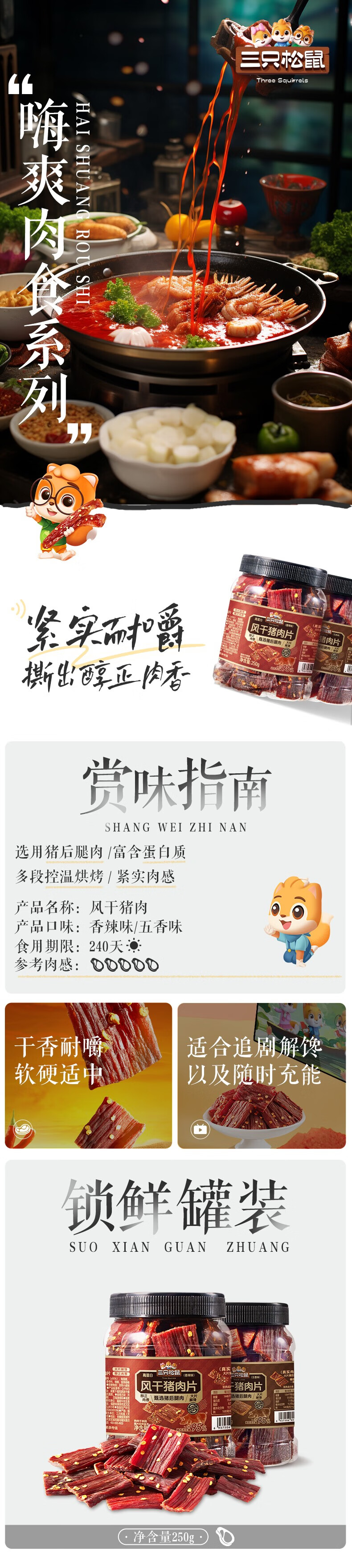 三只松鼠风干猪肉片250g香辣味 休闲零食肉脯健康罐装小吃耐嚼充饥高蛋白
