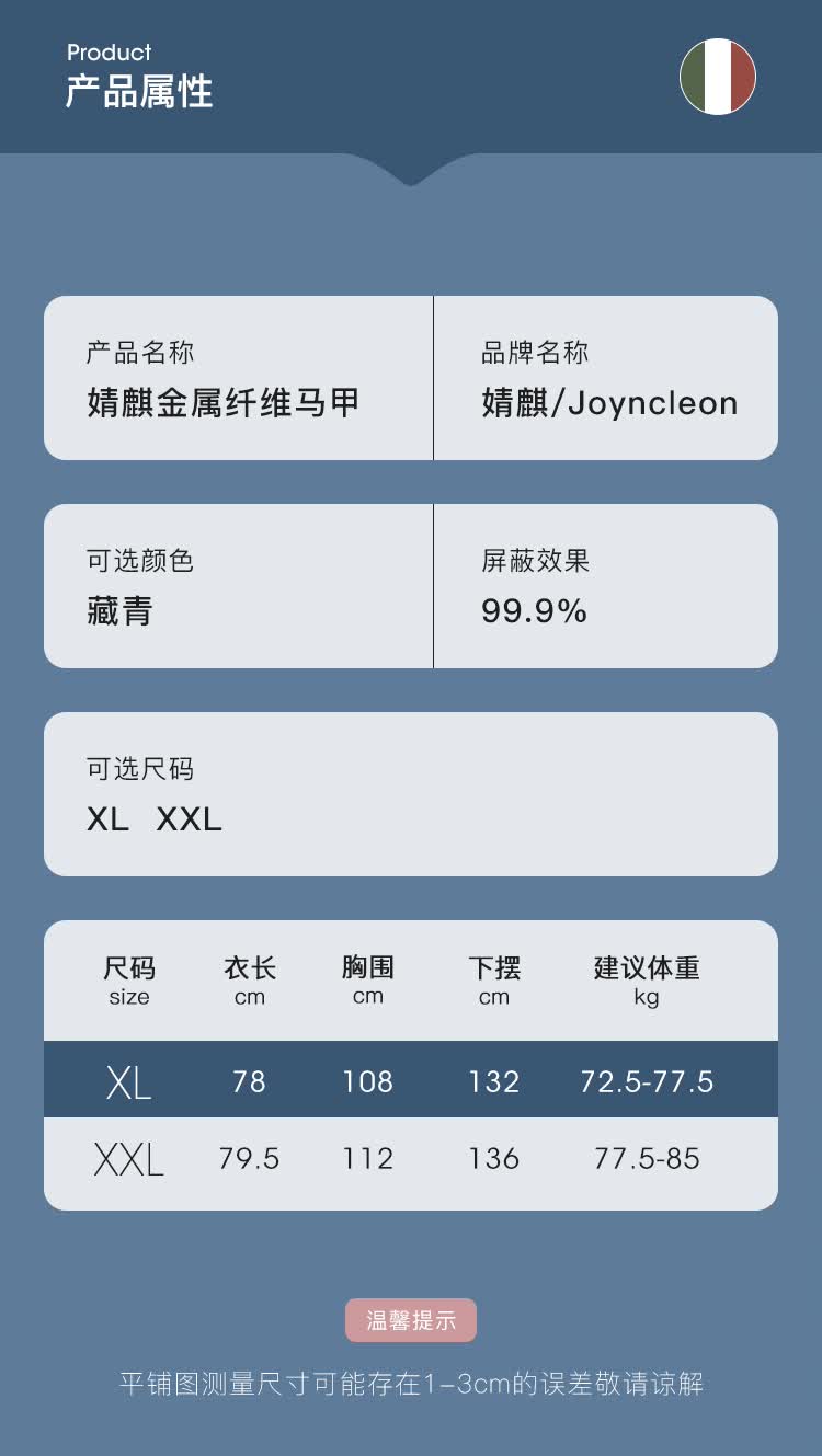 婧麒(JOYNCLEON)防辐射服孕妇装马甲大码防辐射衣服外穿防护服藏青色XL码 jc8303
