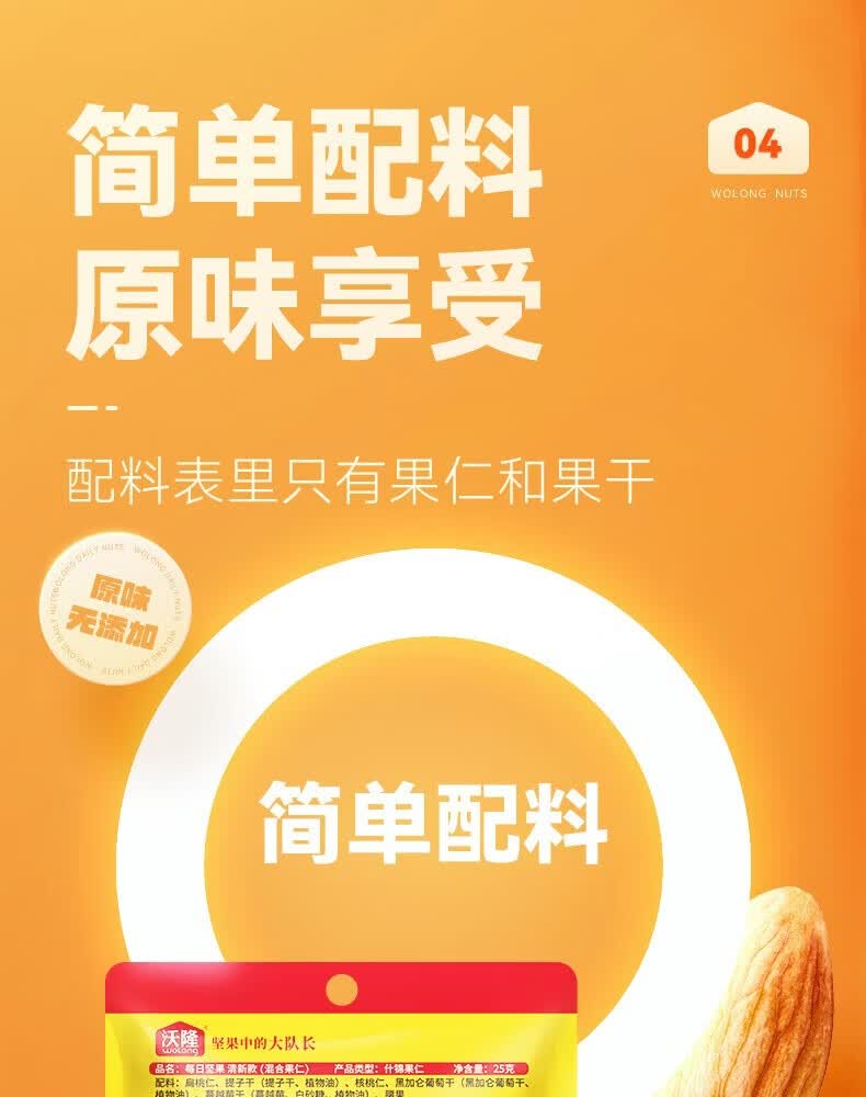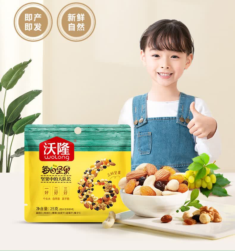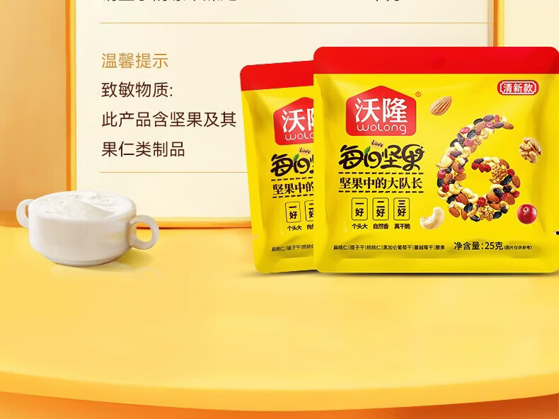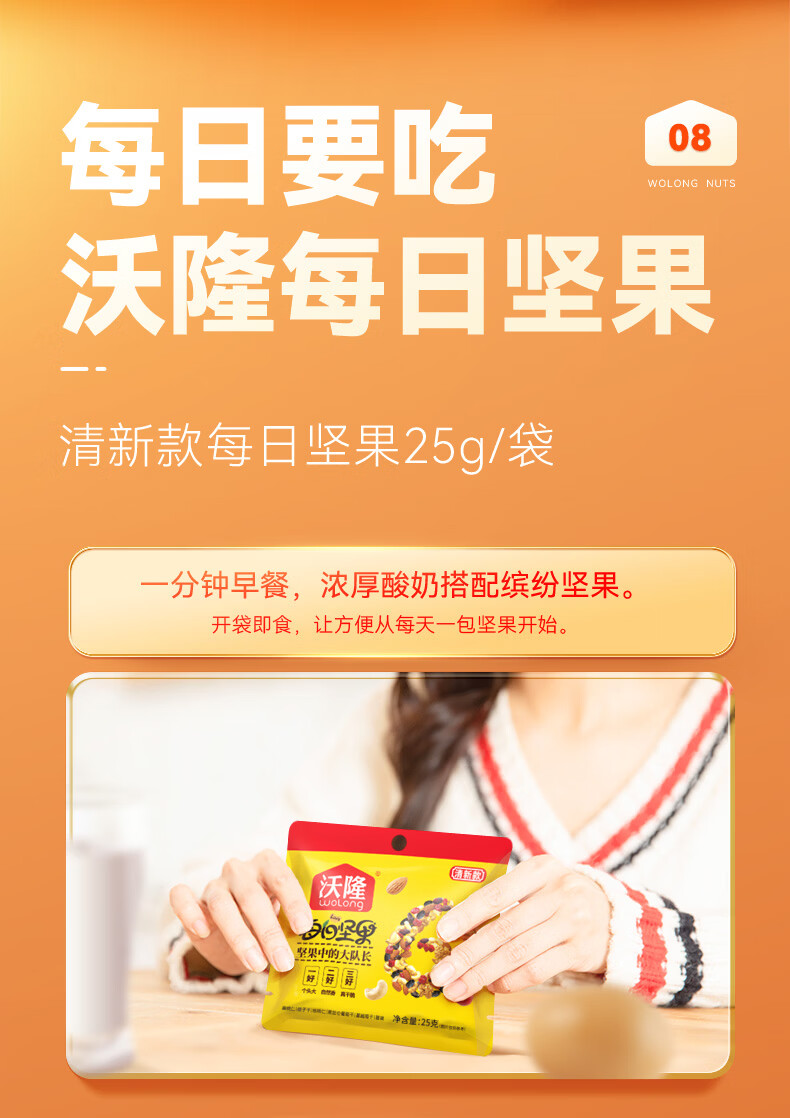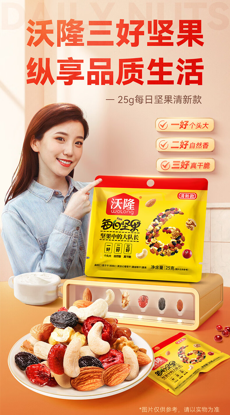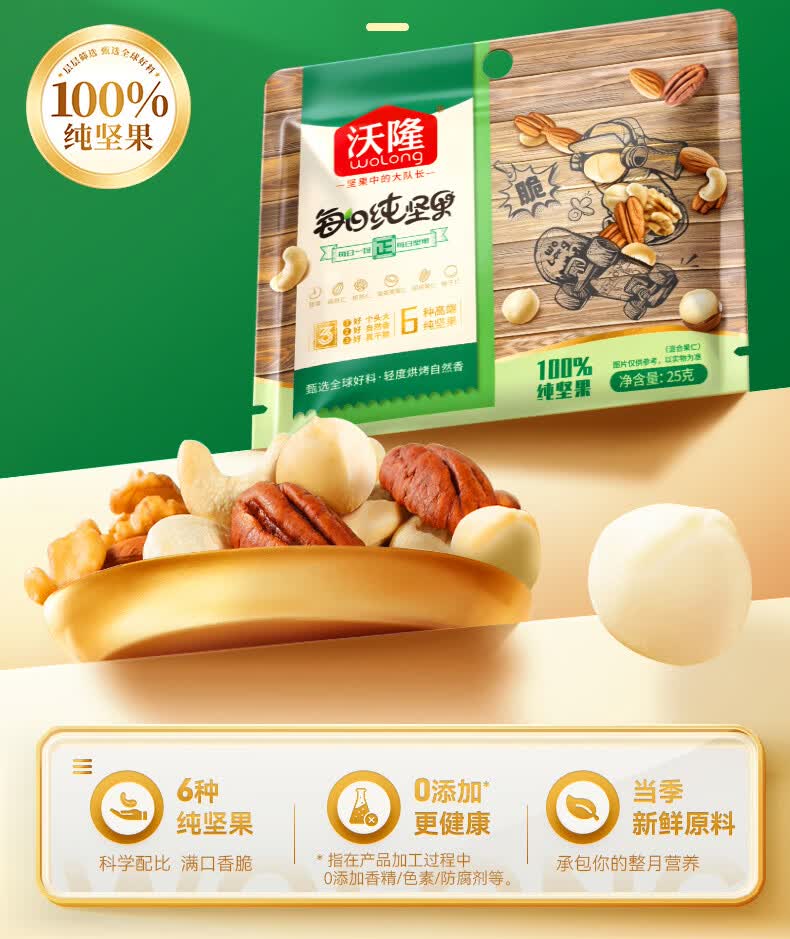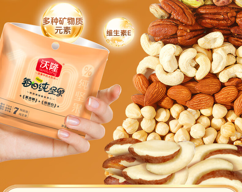 沃隆每日坚果休闲零食坚果炒货混合坚果果仁办公室零食大礼包散袋 (临期)【含鲍鱼果仁】沃隆每日纯坚果25g*20袋
