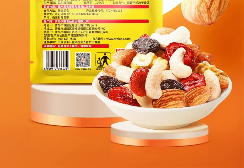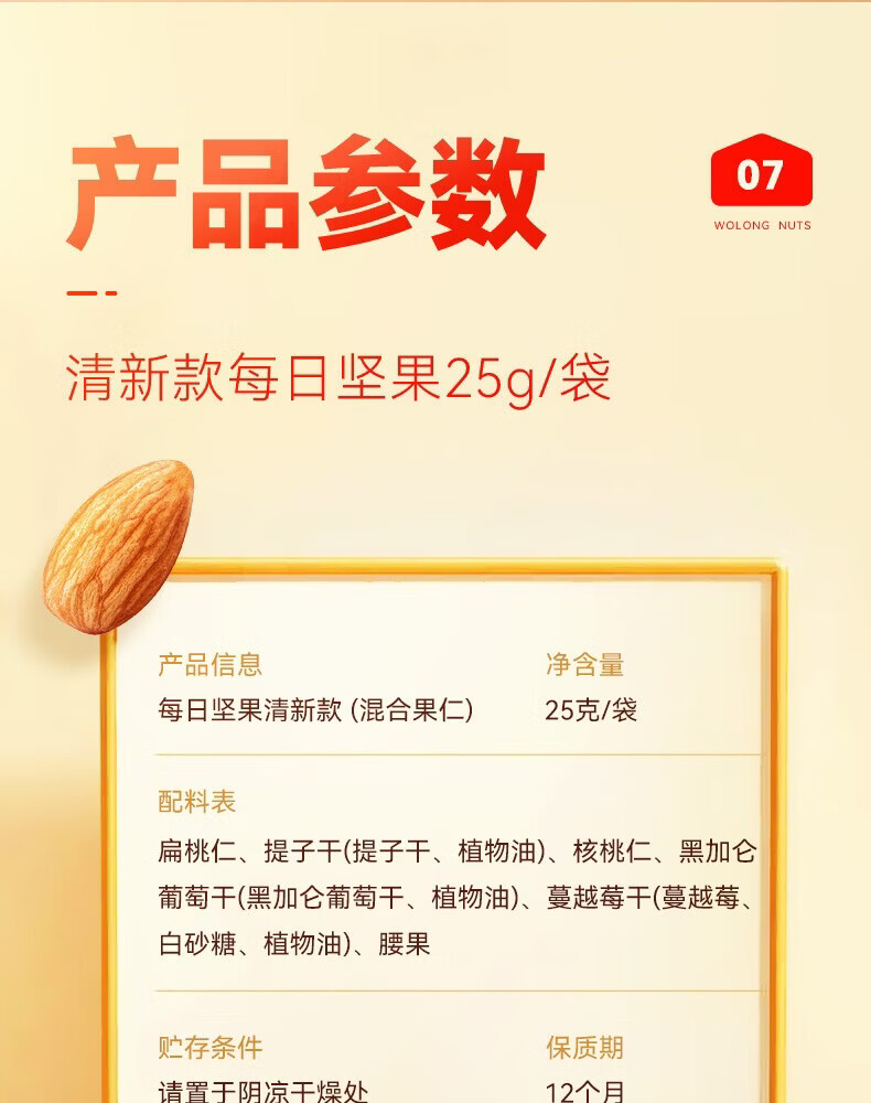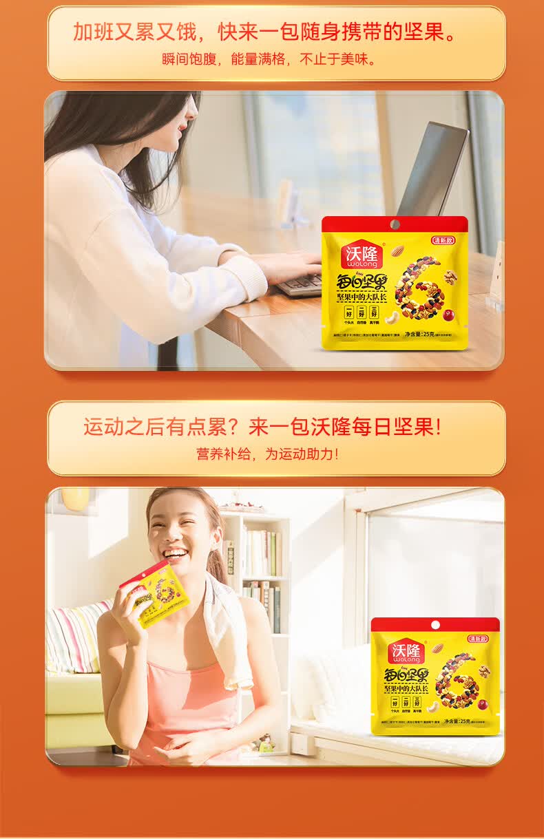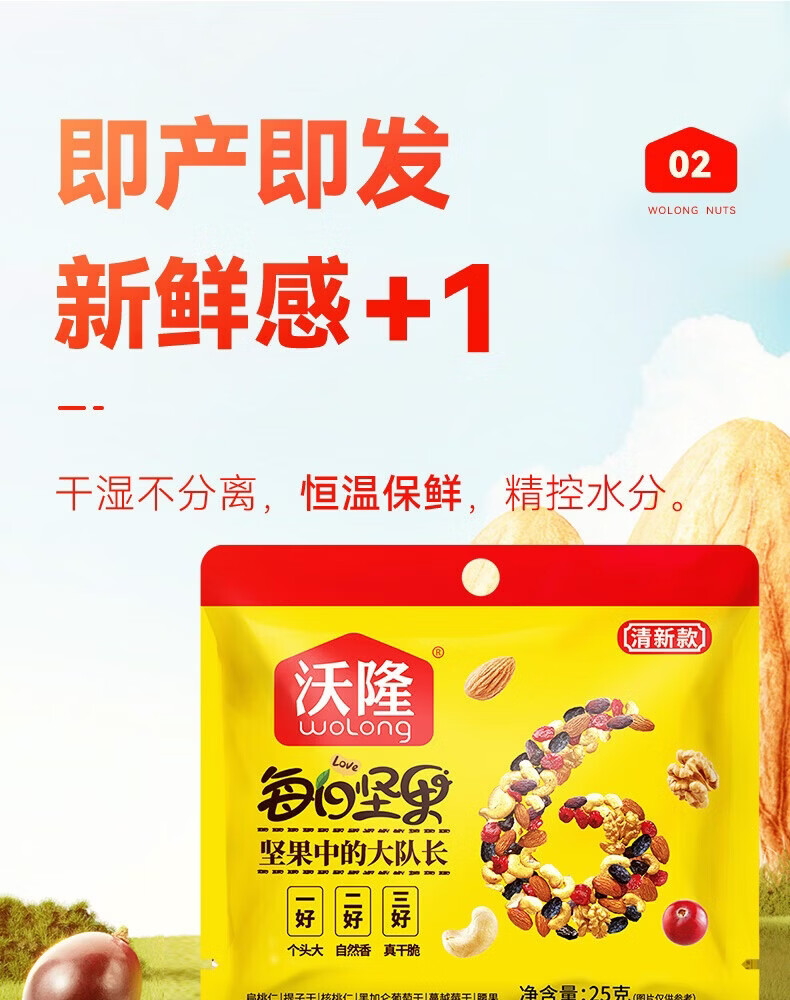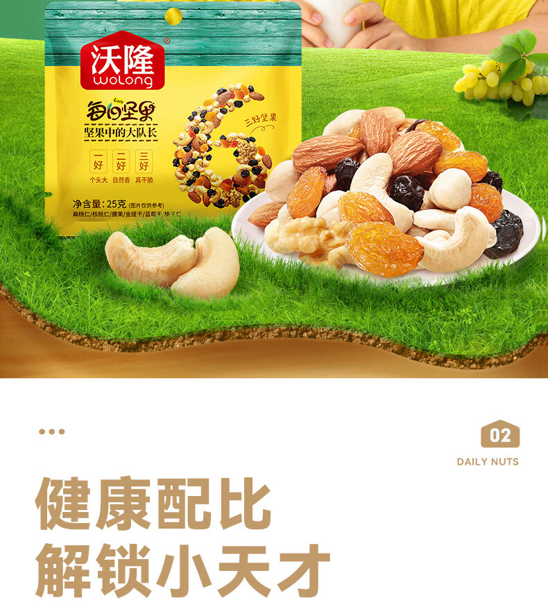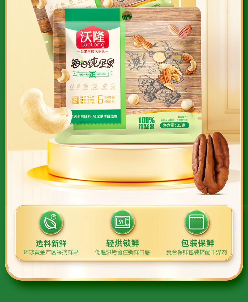 沃隆每日坚果休闲零食坚果炒货混合坚果果仁办公室零食大礼包散袋 (临期)【含鲍鱼果仁】沃隆每日纯坚果25g*20袋