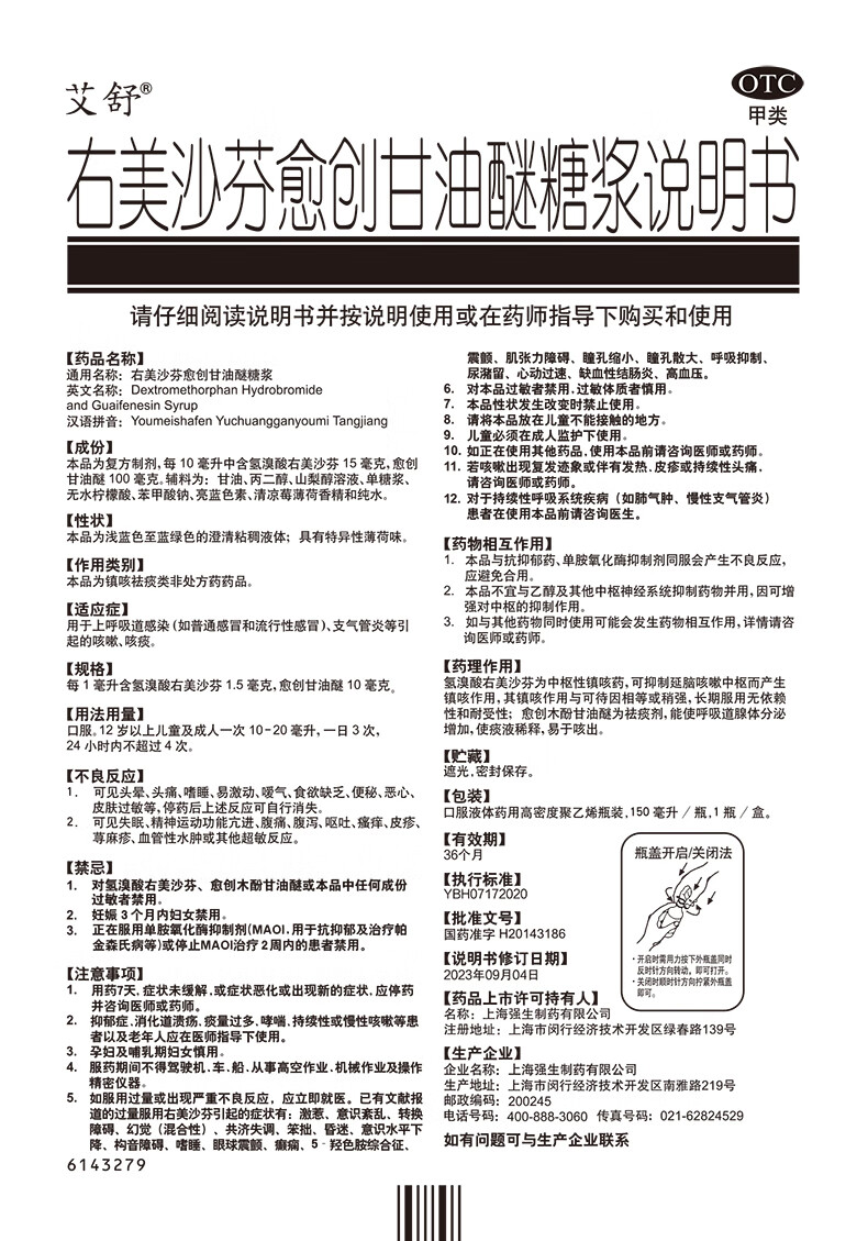 艾舒右美沙芬愈创甘油醚糖浆150ml止咳糖浆止咳化痰清肺消炎祛痰支气管炎甲流成人儿童流感感冒咳嗽用药