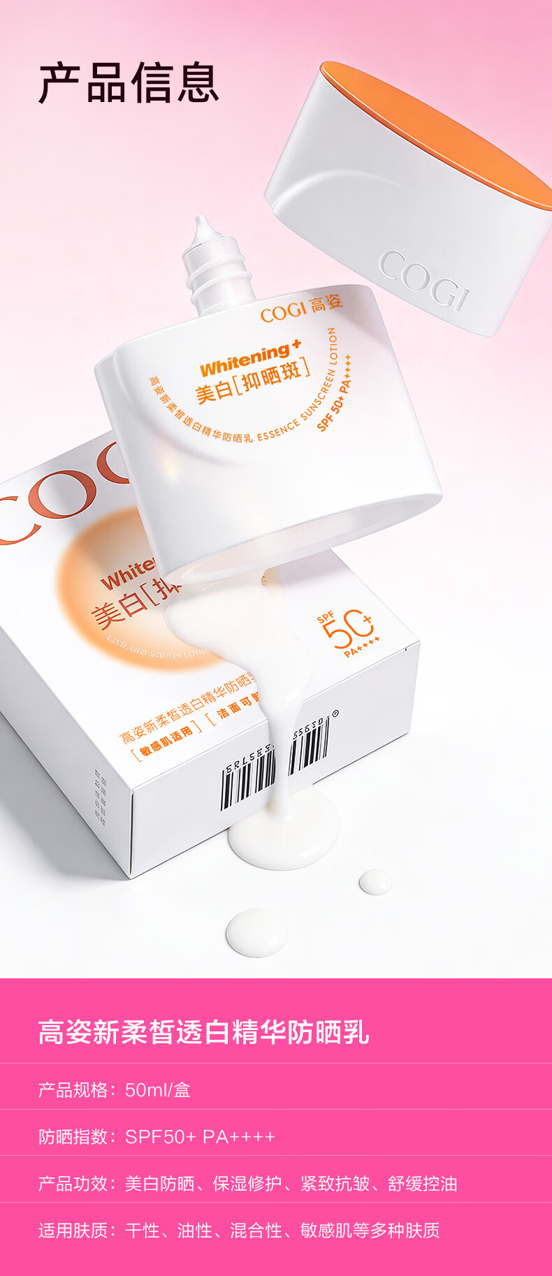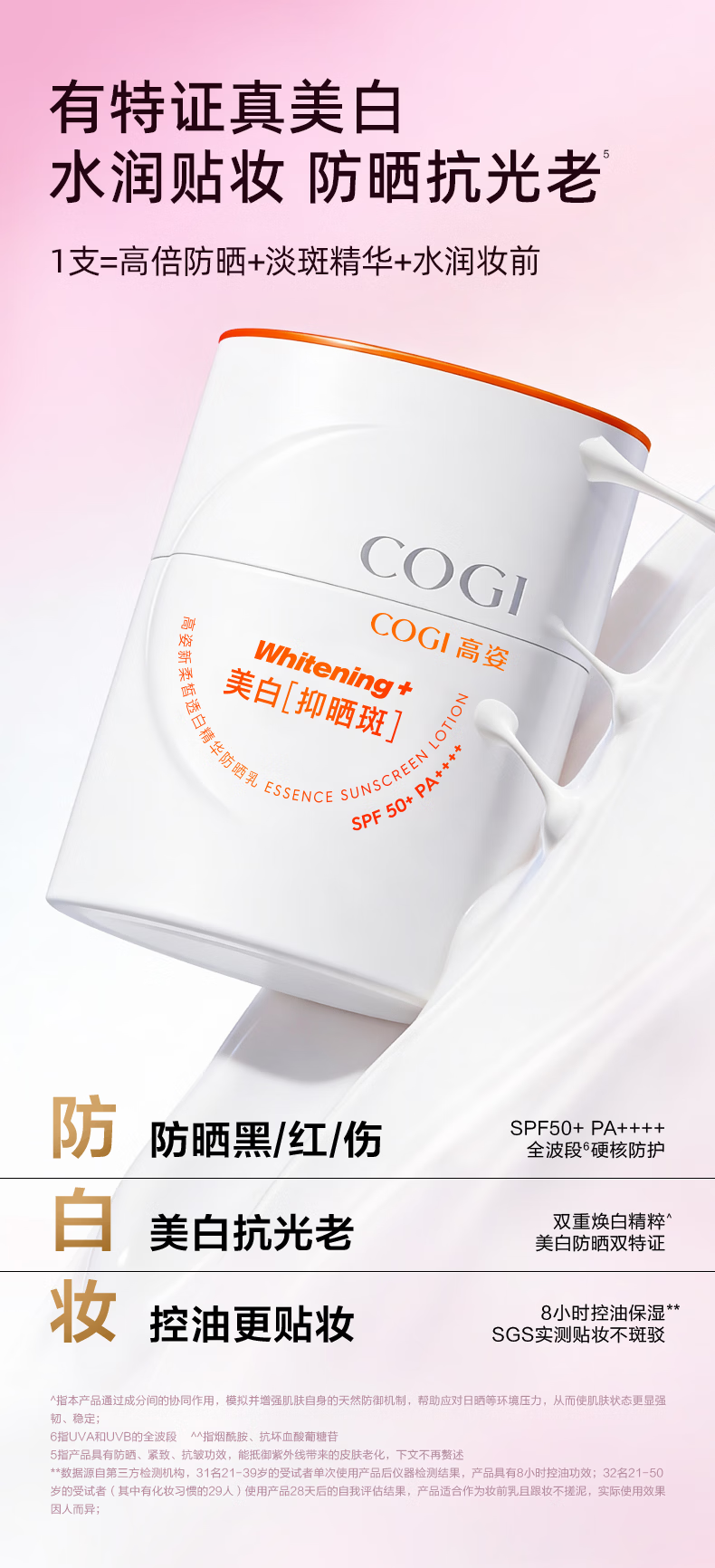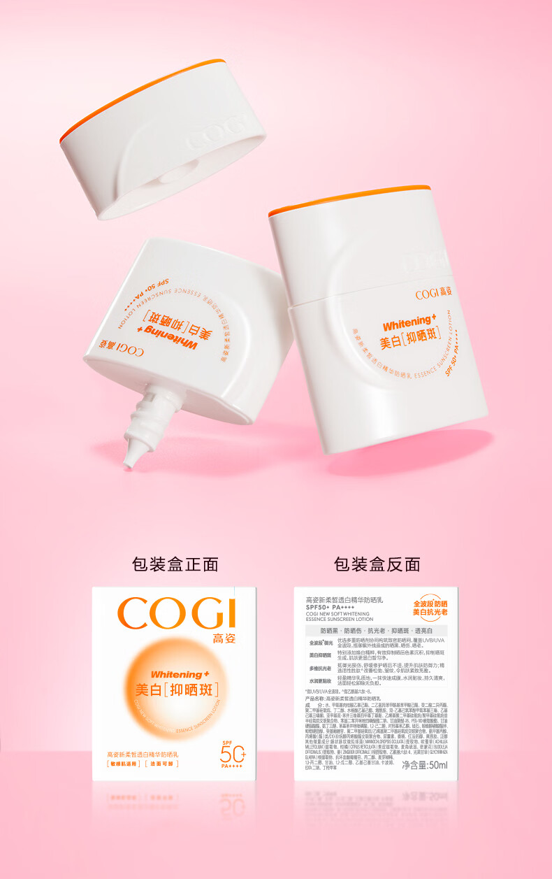 高姿御光盾防晒霜50ml美白隔离养肤防晒乳清爽不油腻