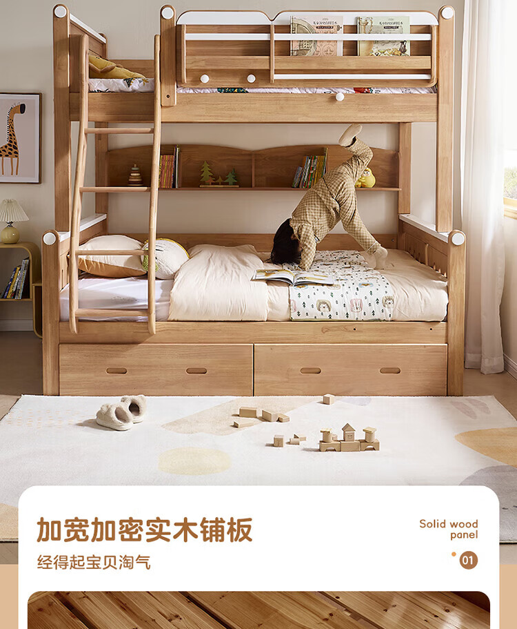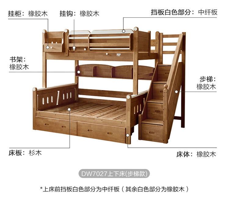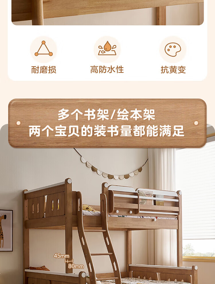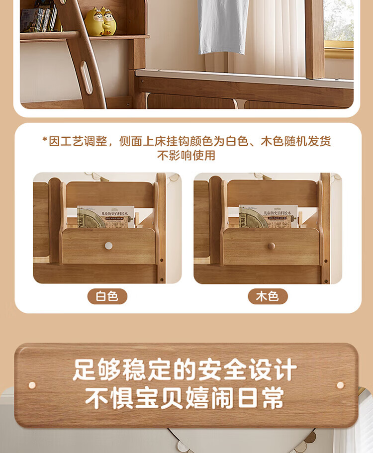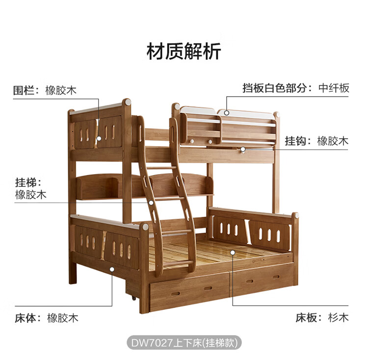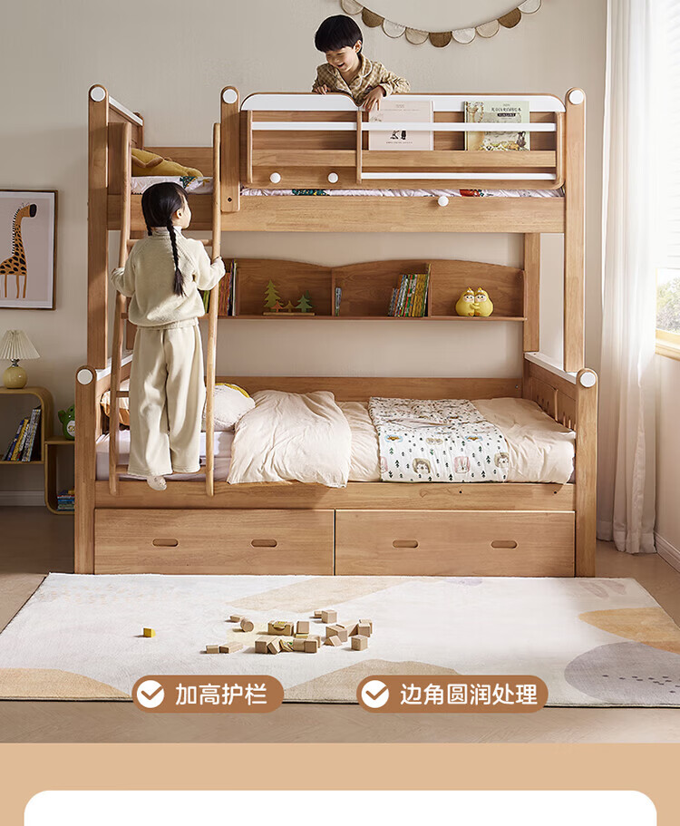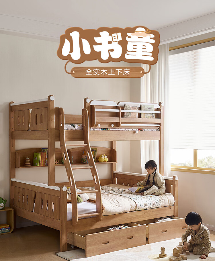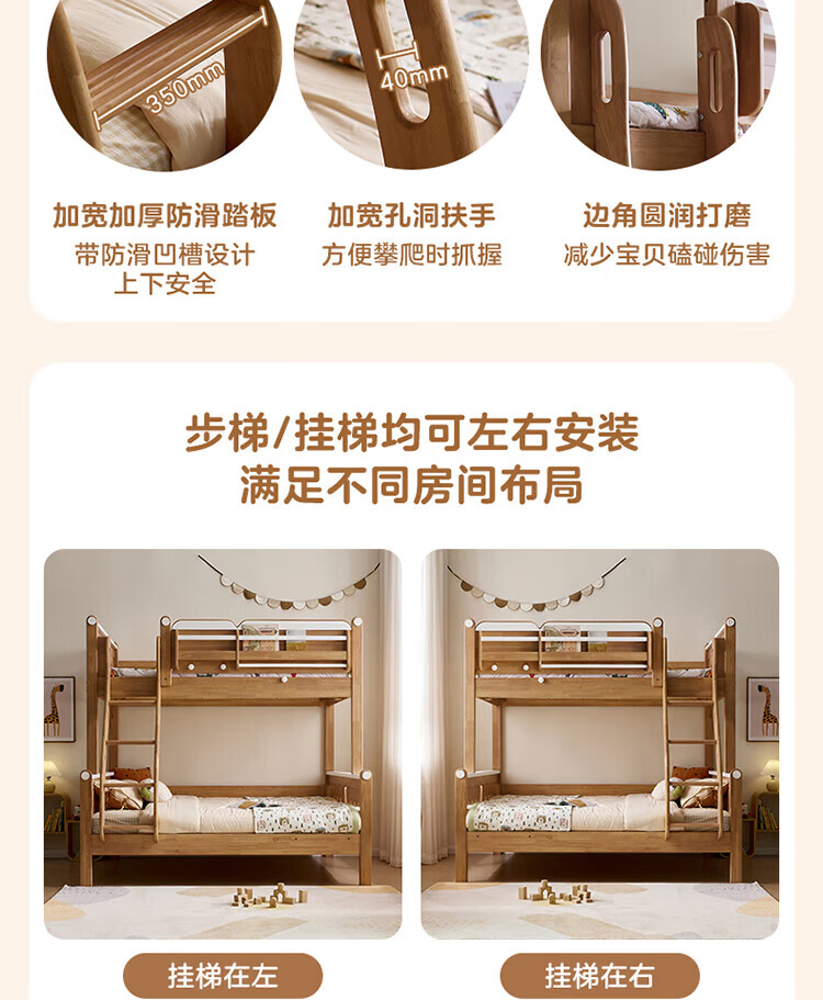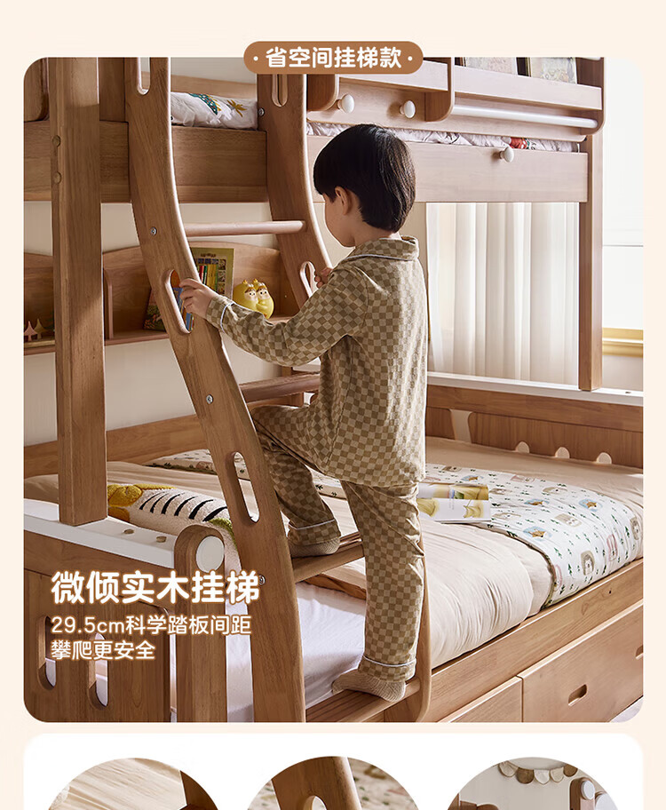 全友家居多功能实木儿童上下床青少年家用卧室双层高低子母收纳床家具 挂梯|1.5米上下床