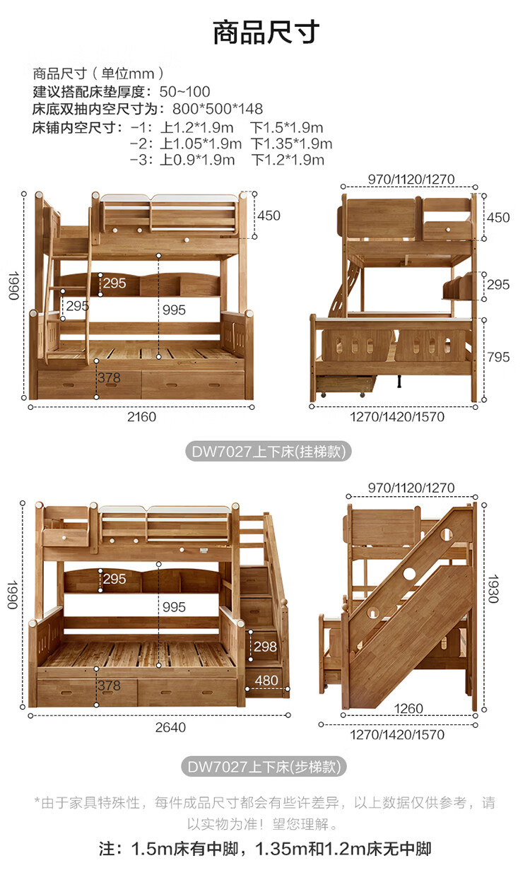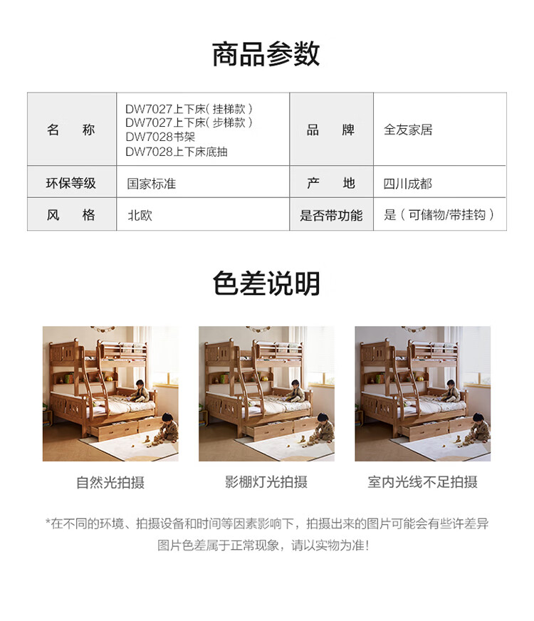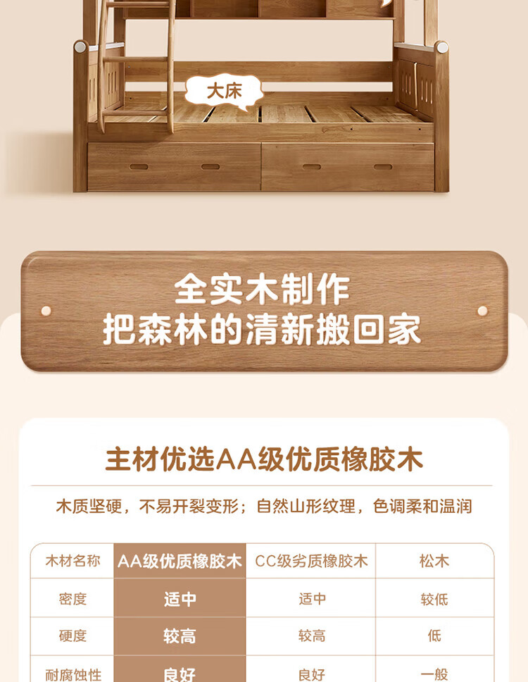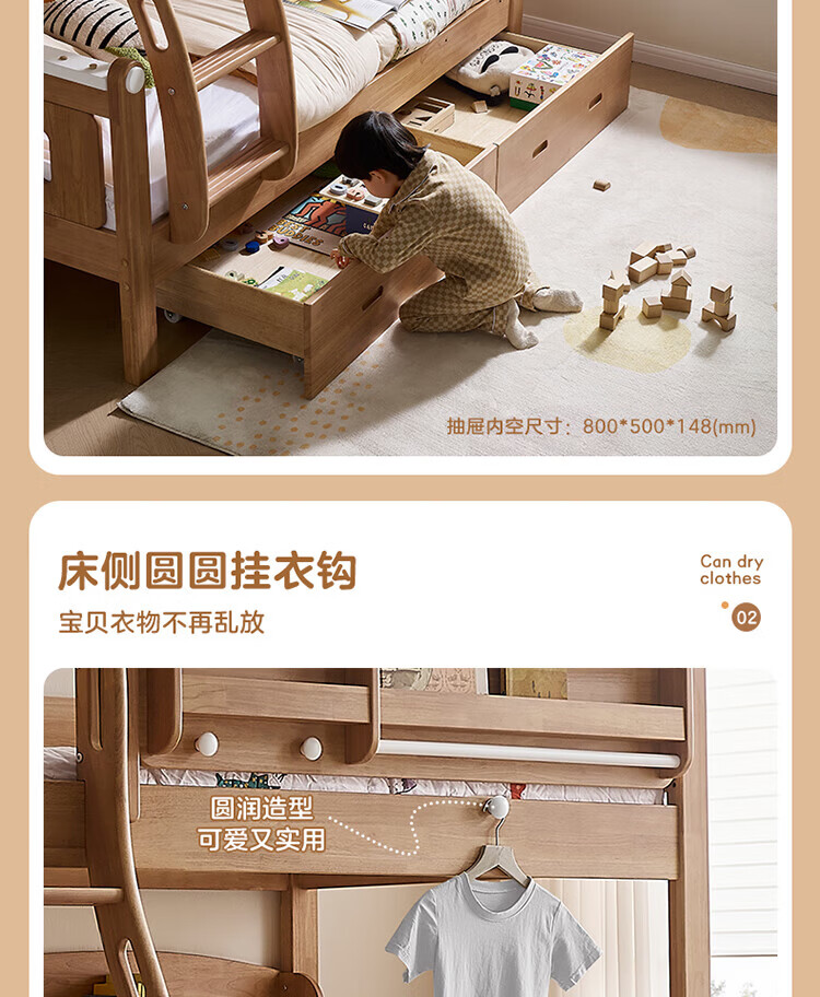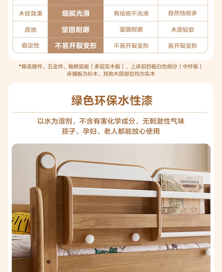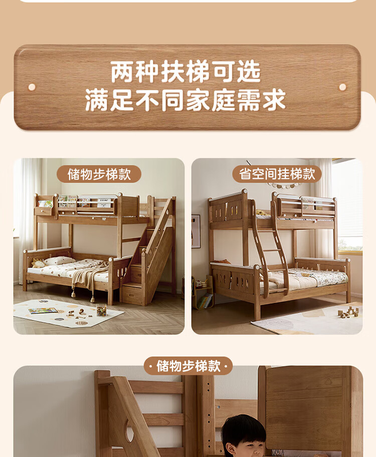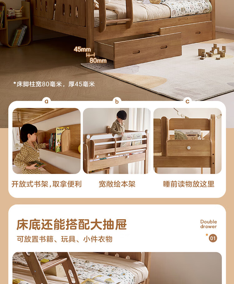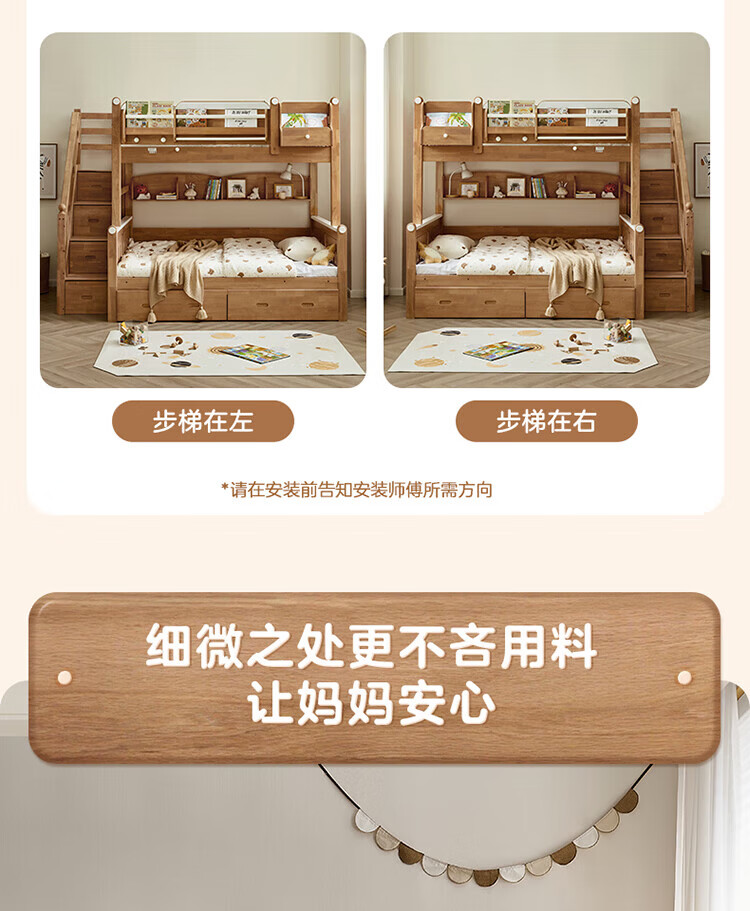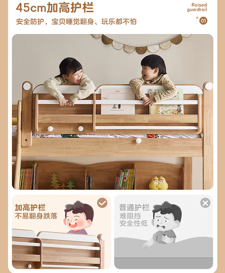 全友家居多功能实木儿童上下床青少年家用卧室双层高低子母收纳床家具 挂梯|1.5米上下床